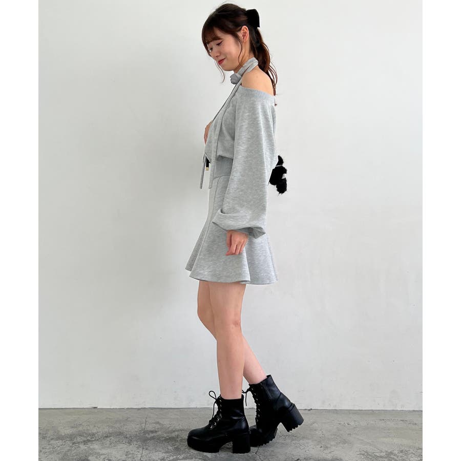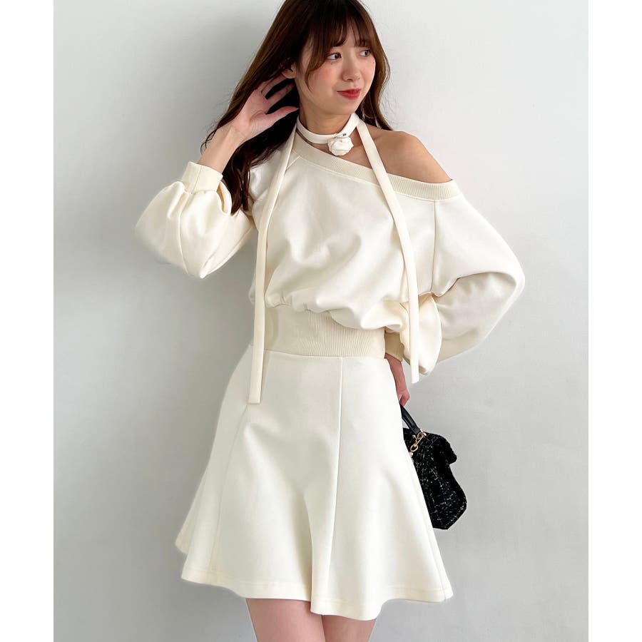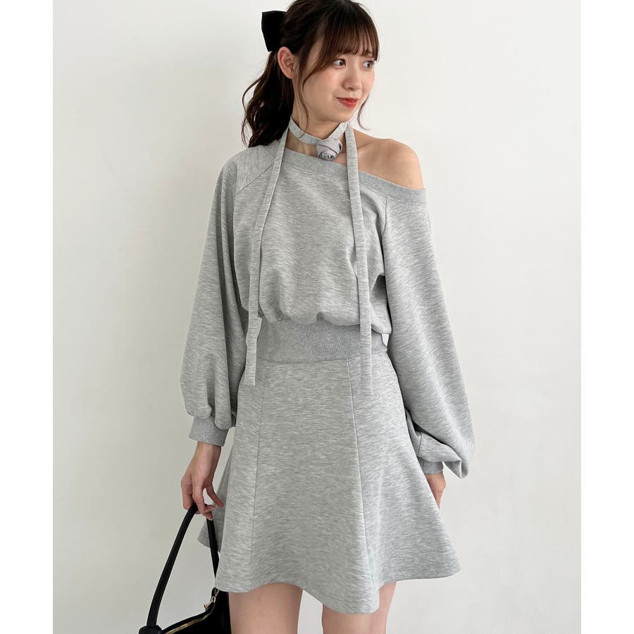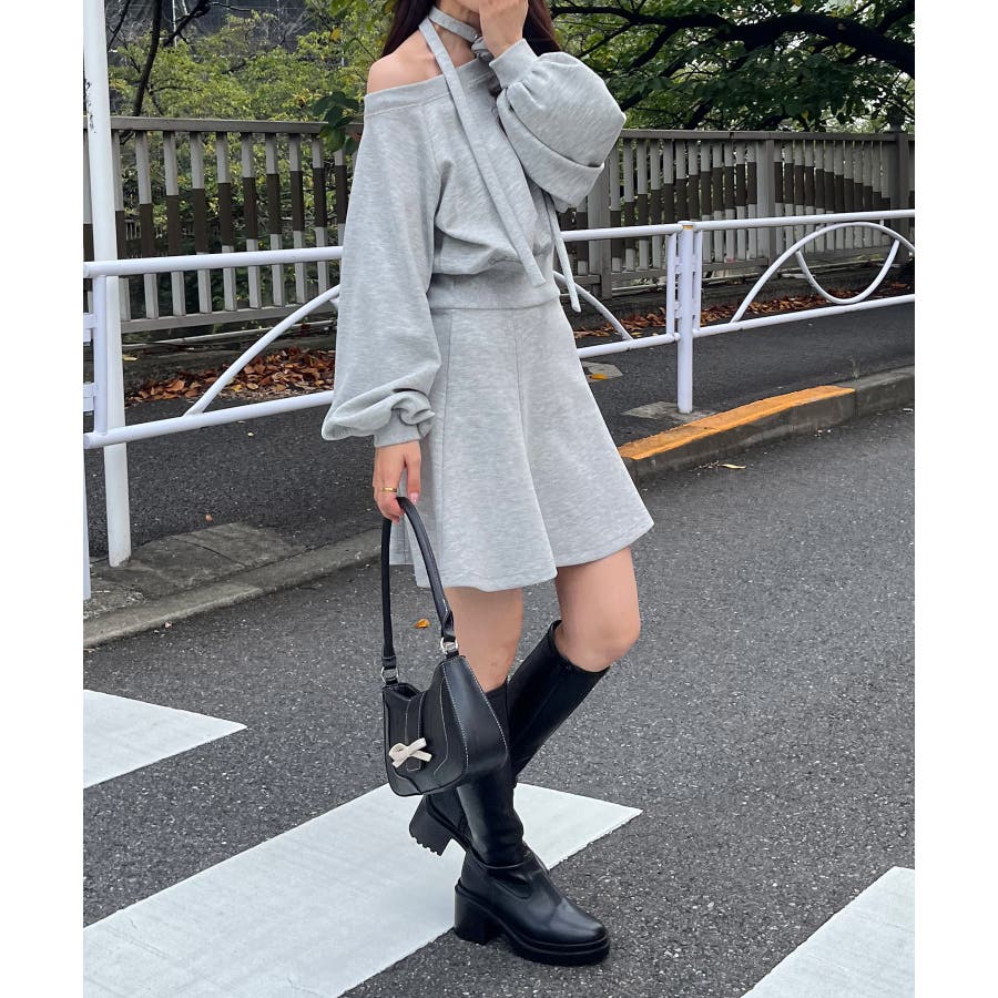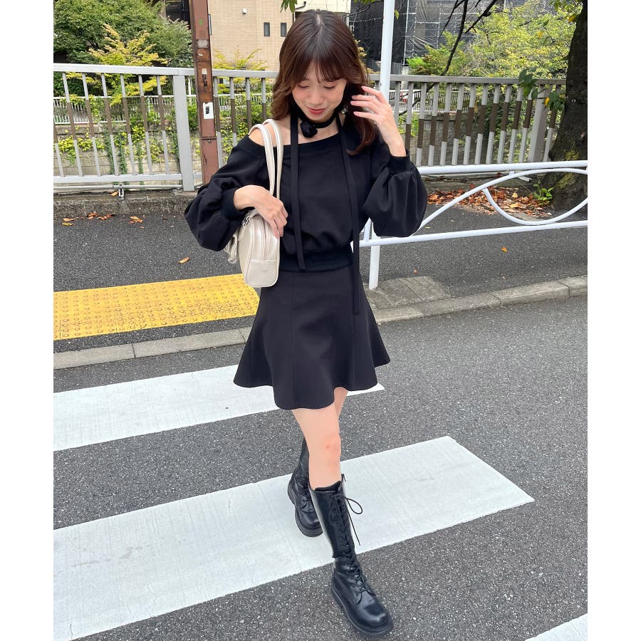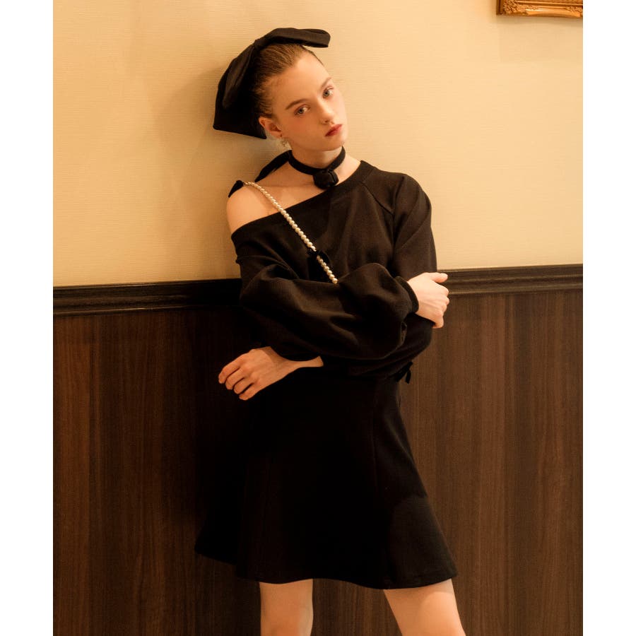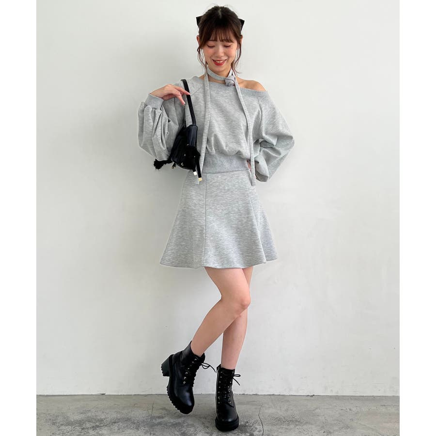 フラワーチョーカー付きスウェットワンピ