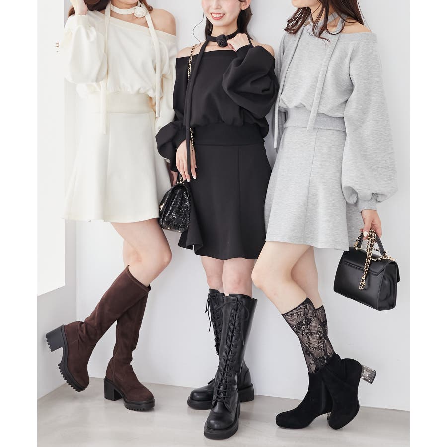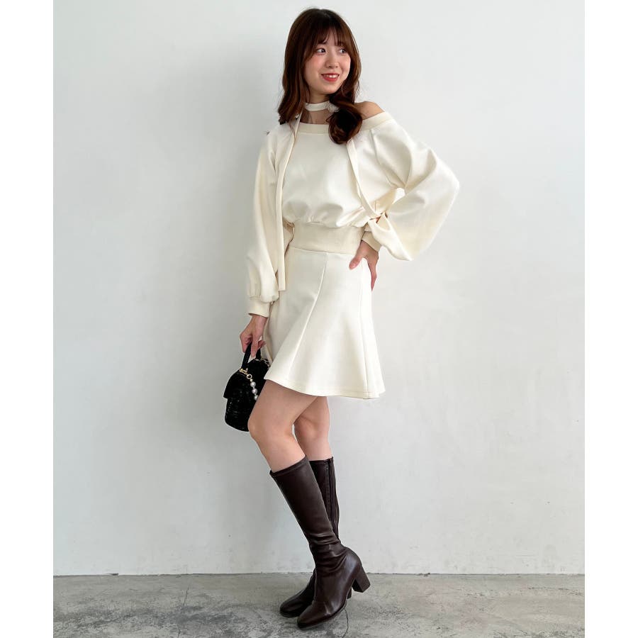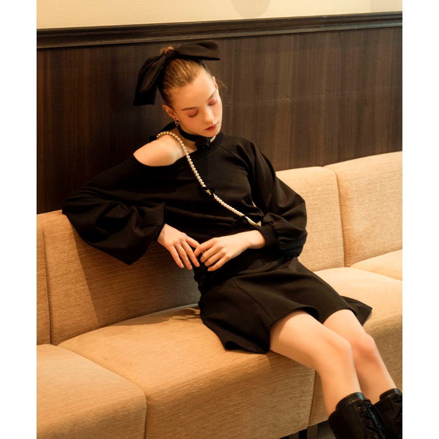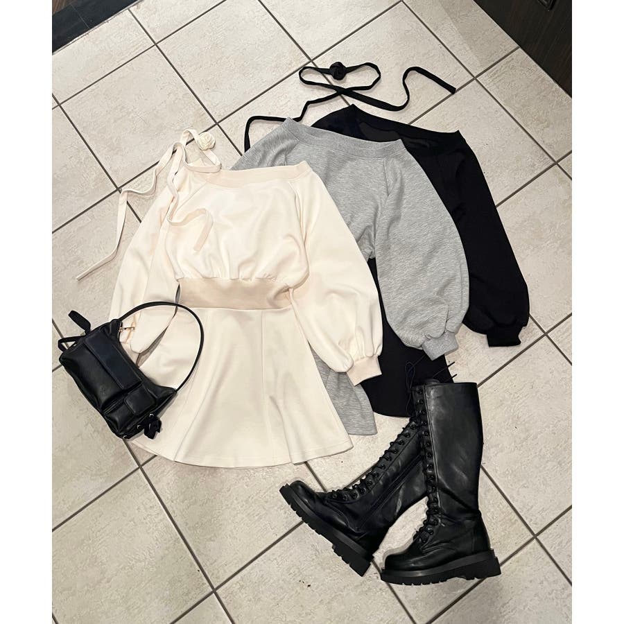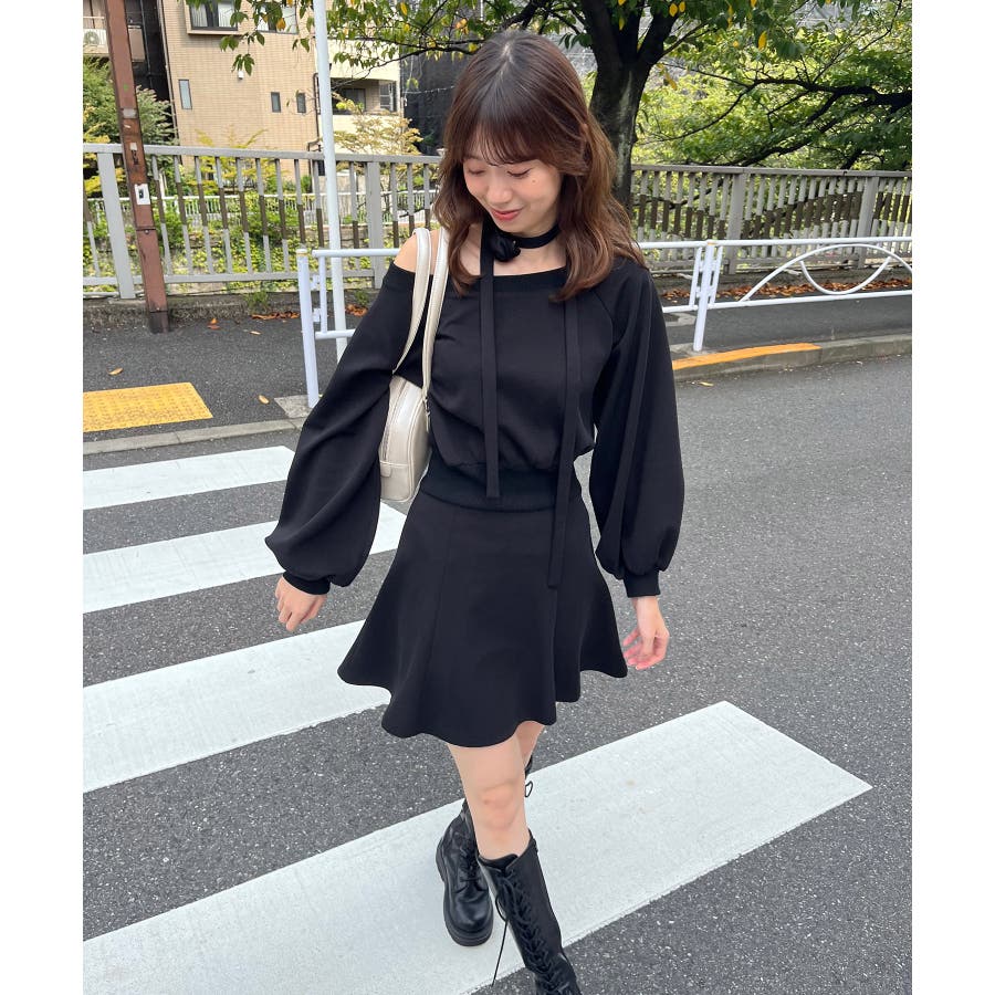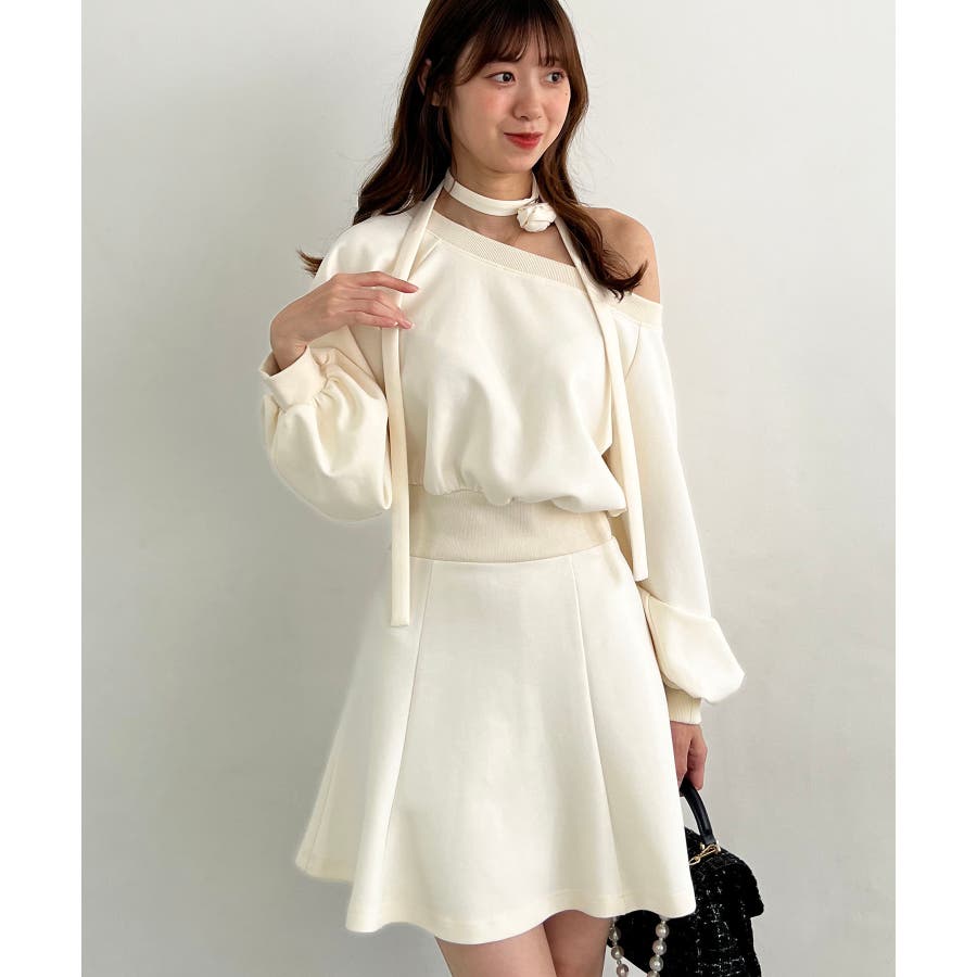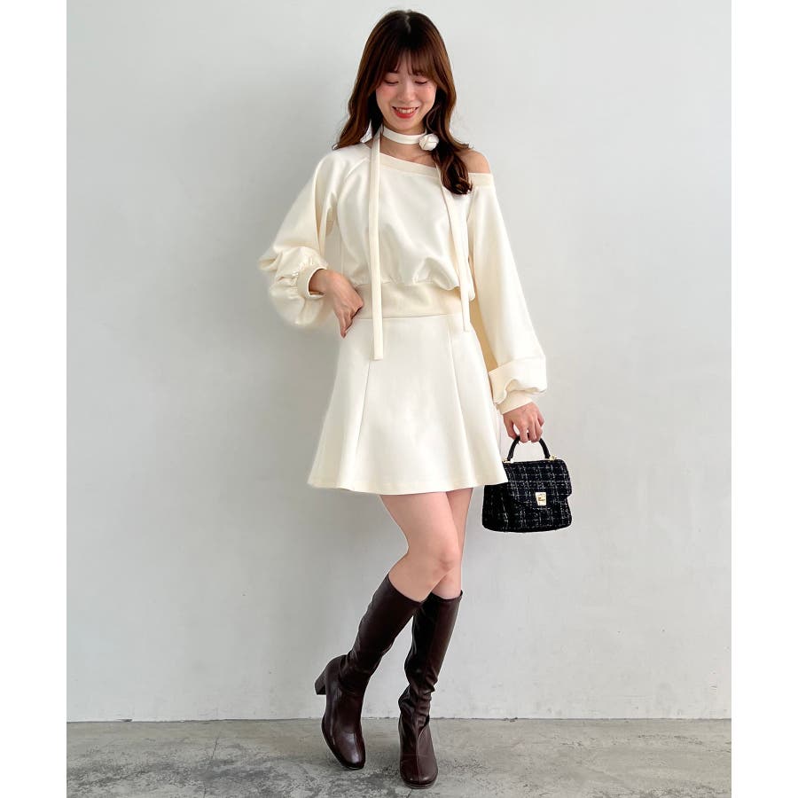 フラワーチョーカー付きスウェットワンピ
