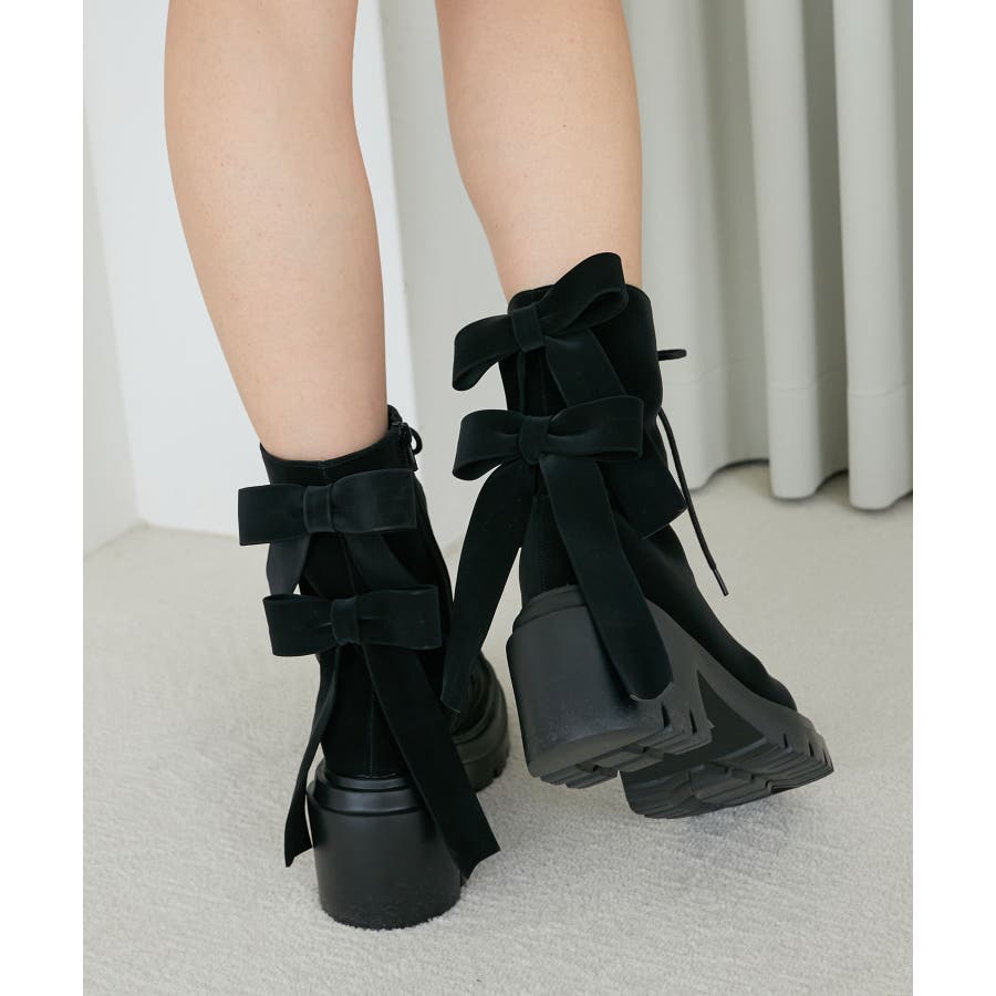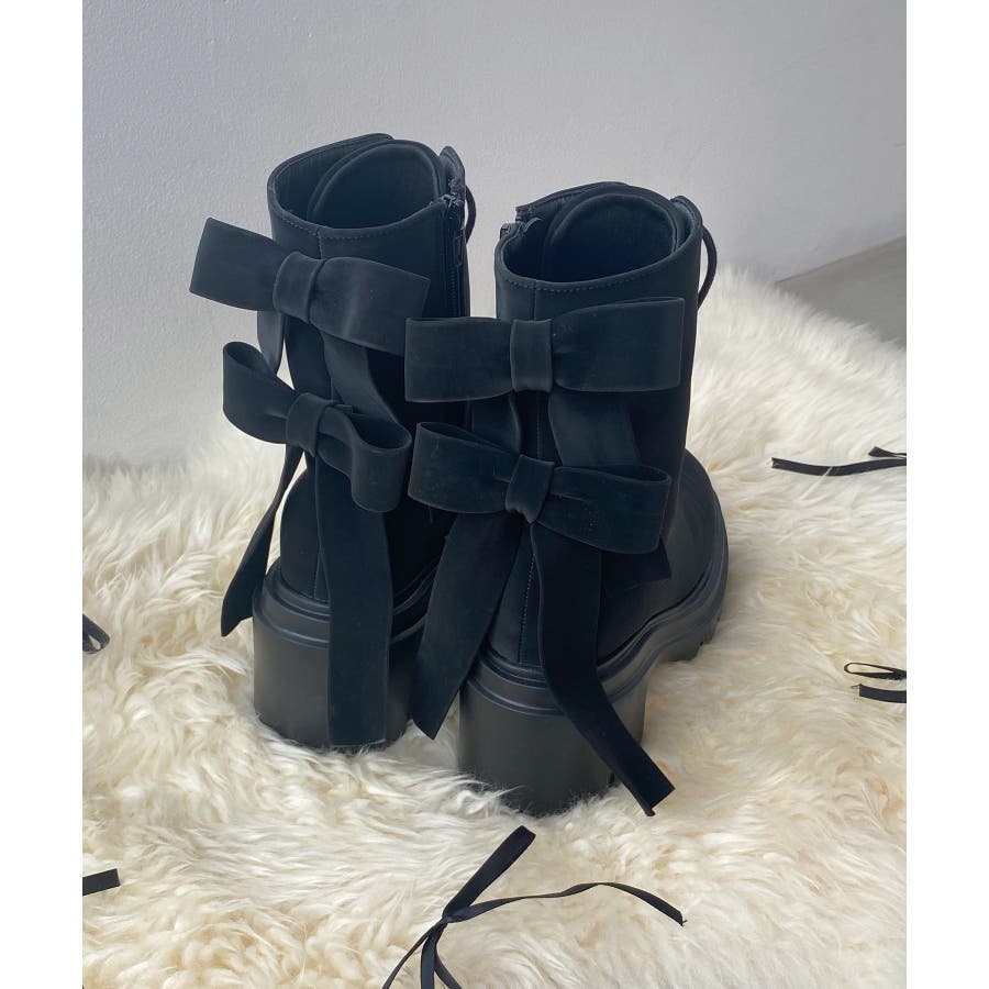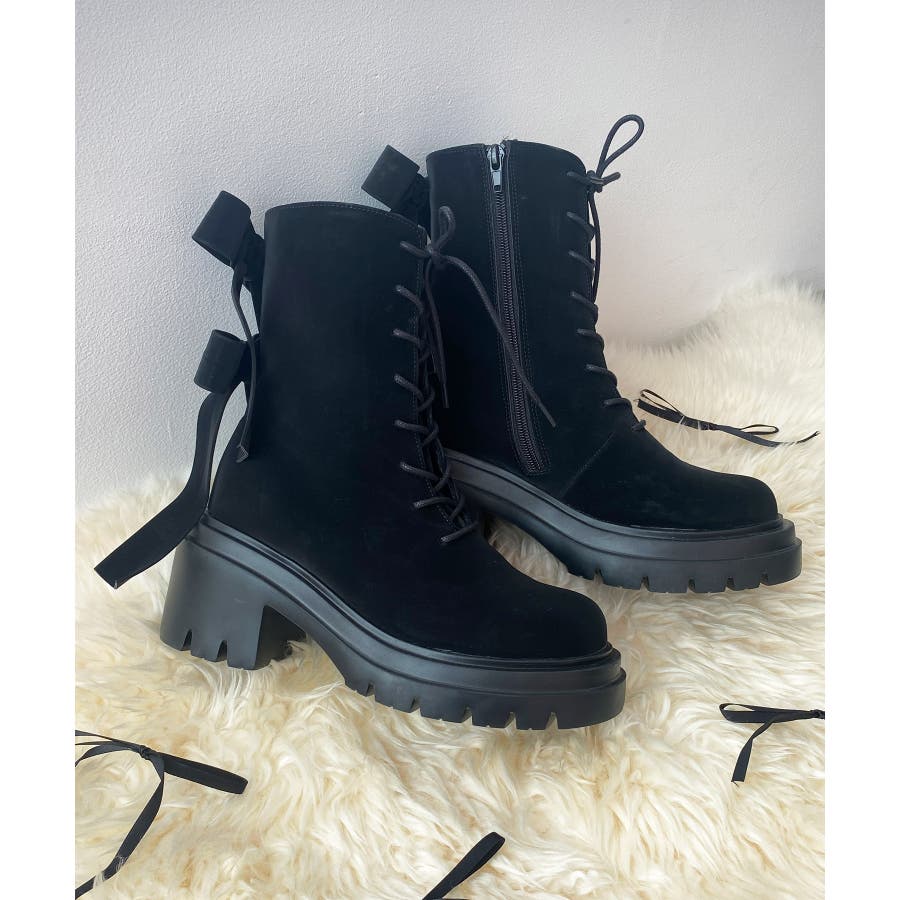 ダブルリボンレースアップブーツ