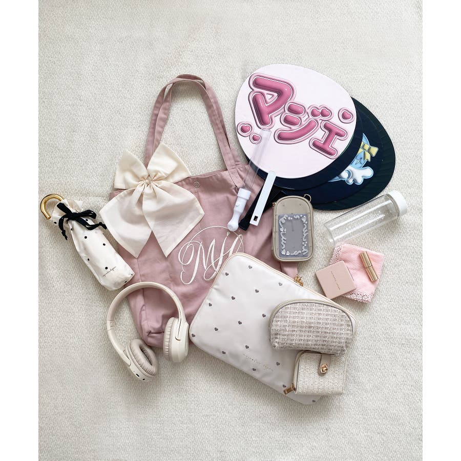 ライブに行くために購入しましたが、うちわも入り、ペンライトも余裕だったのでかなり入りそうで満足です。リボンがワンポイントになっていて可愛いです。