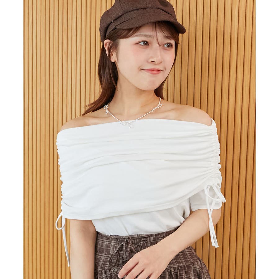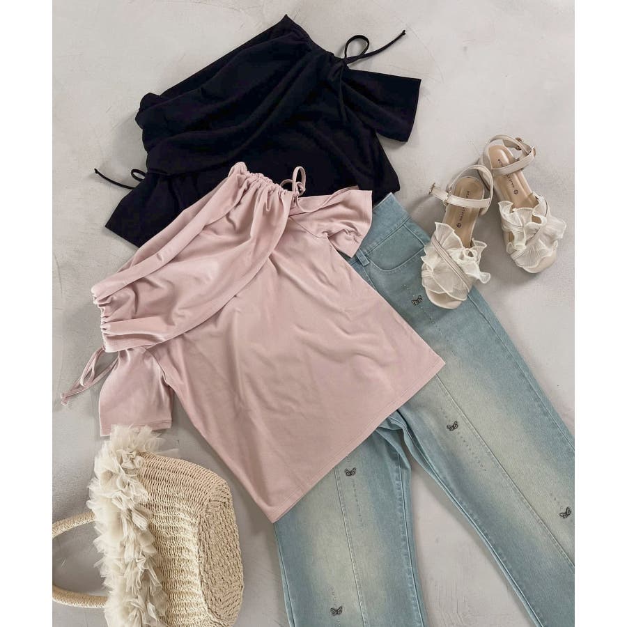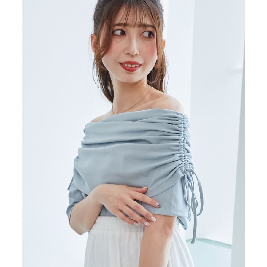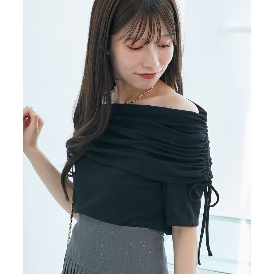 サイドドロストオフショルカットトップス