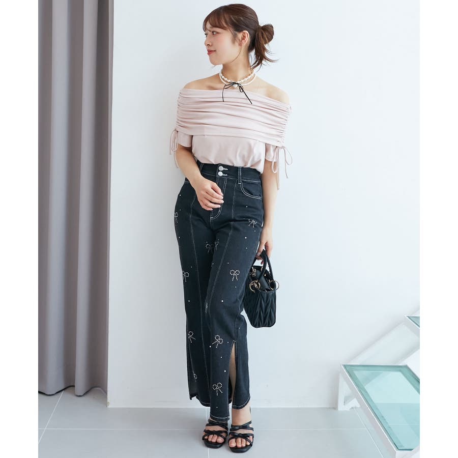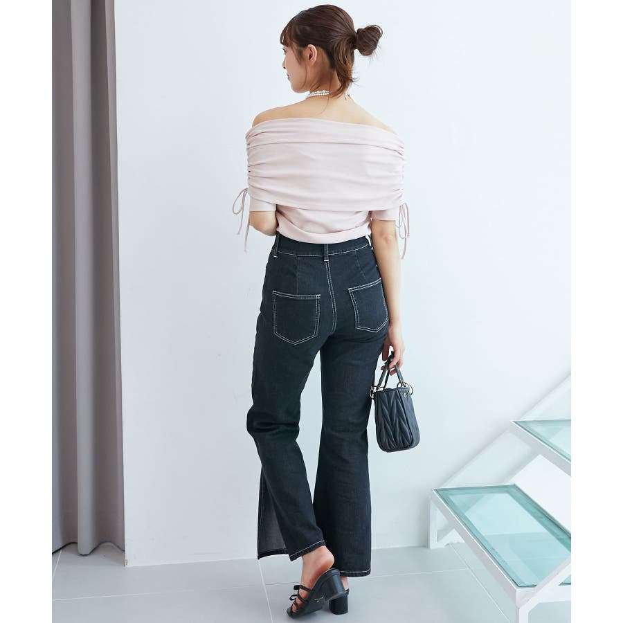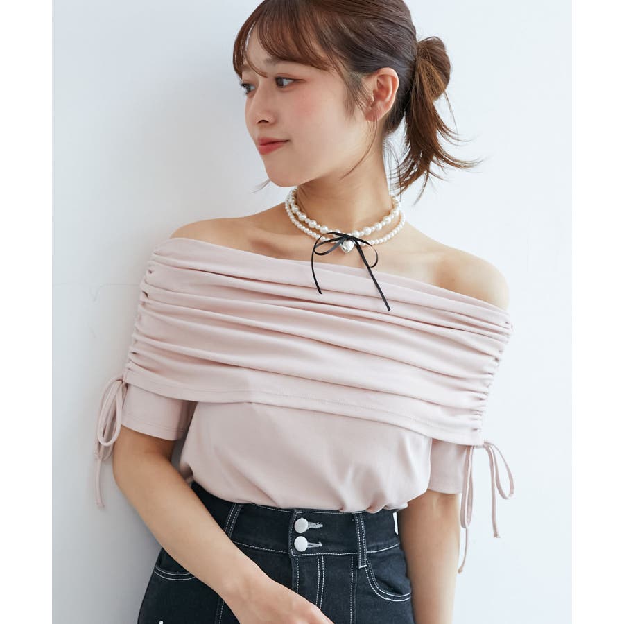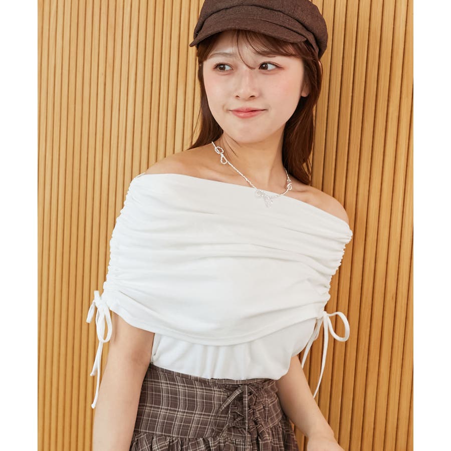 サイドドロストオフショルカットトップス