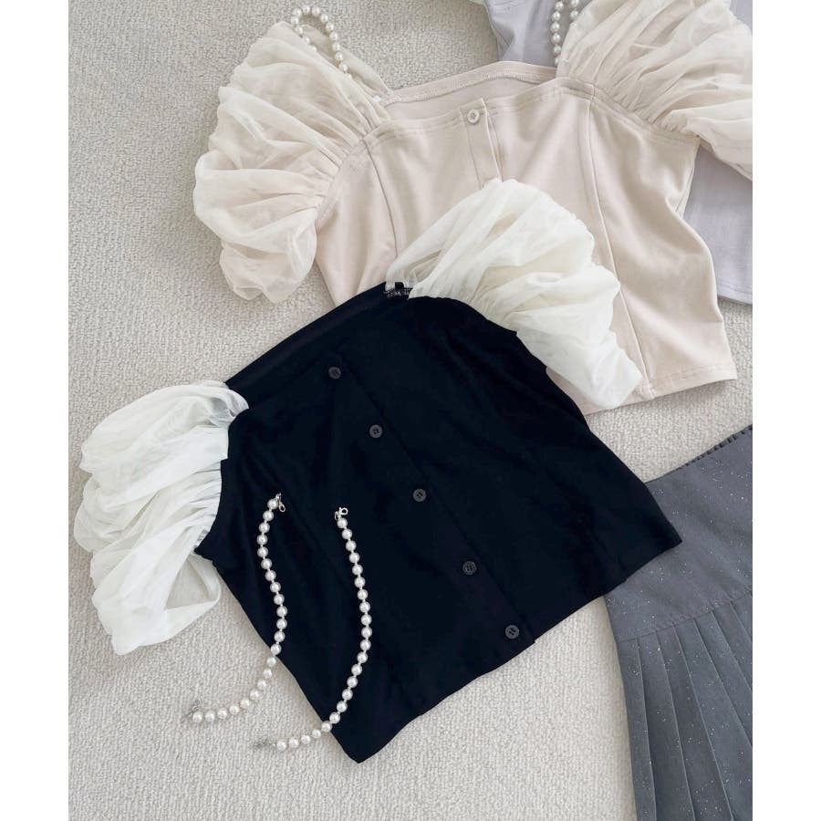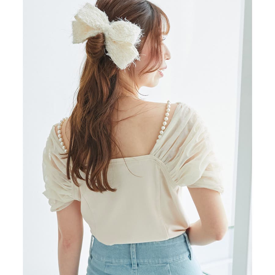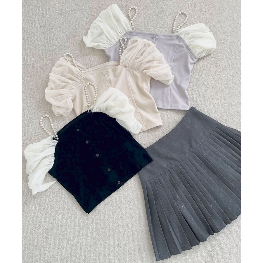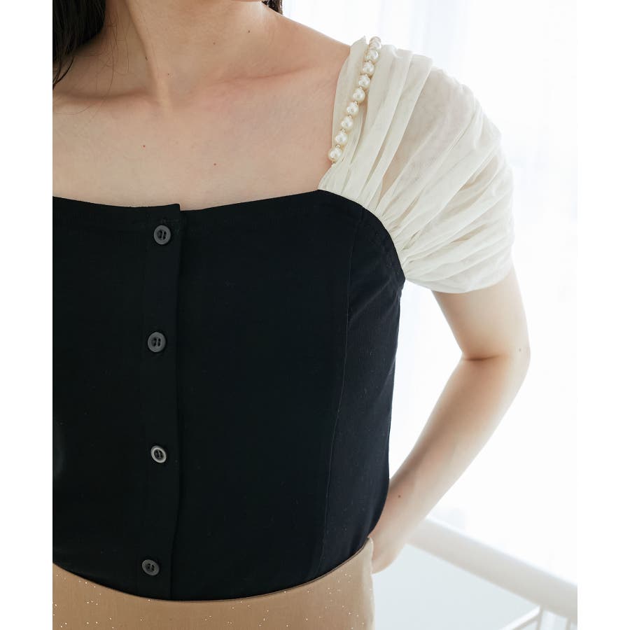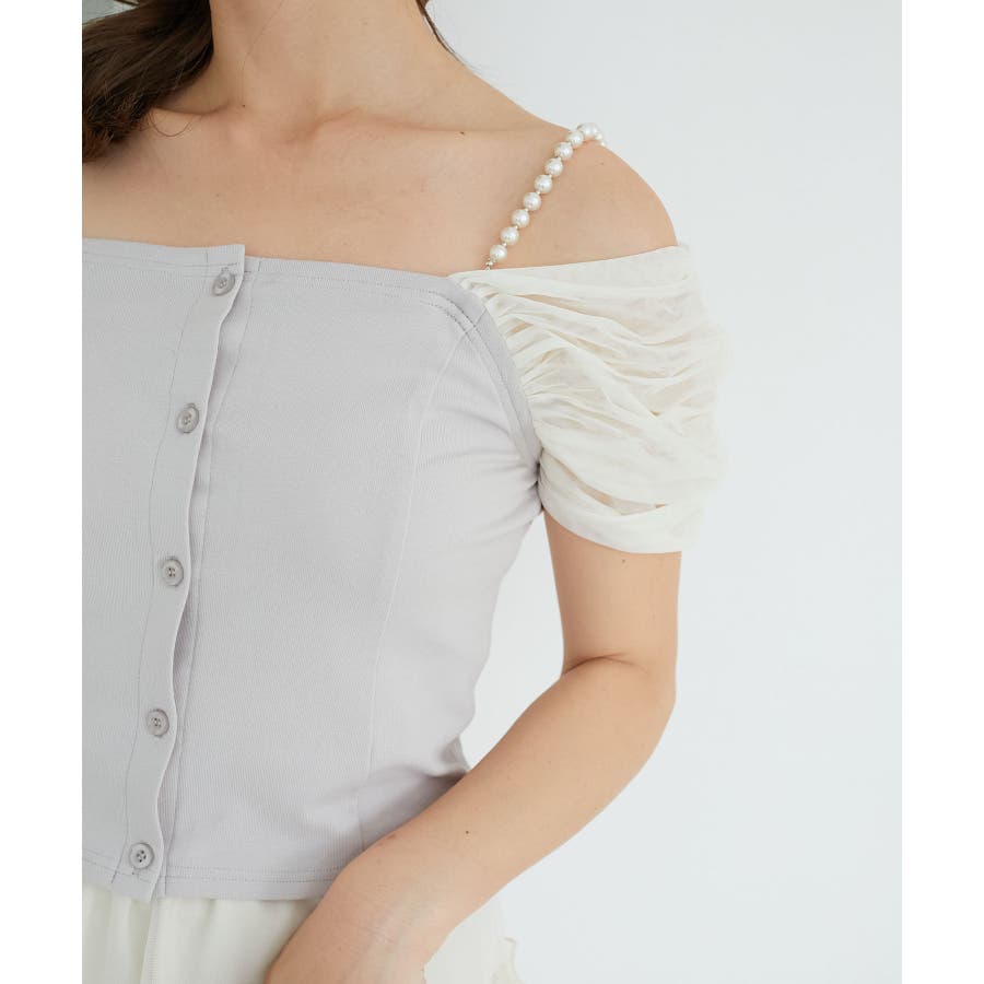 パールチェーン異素材トップス