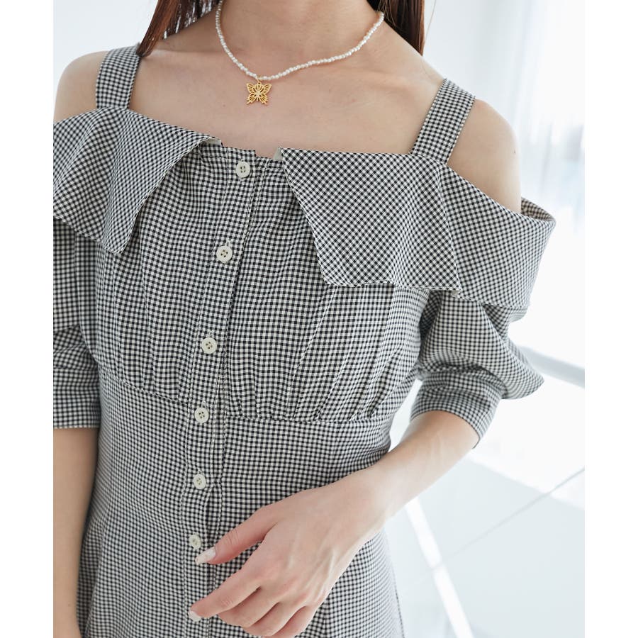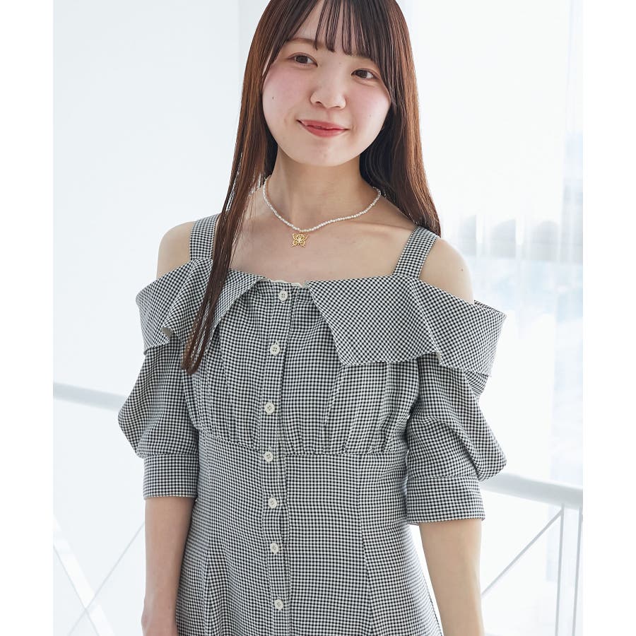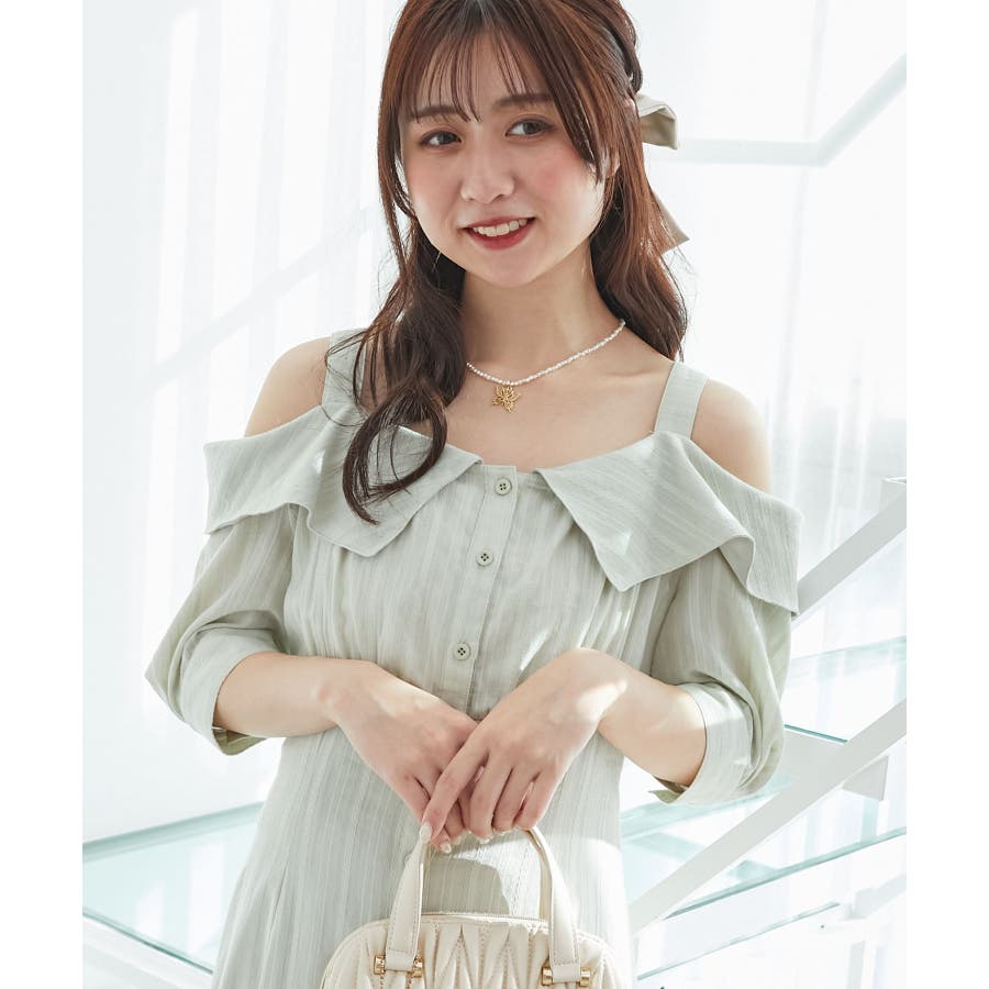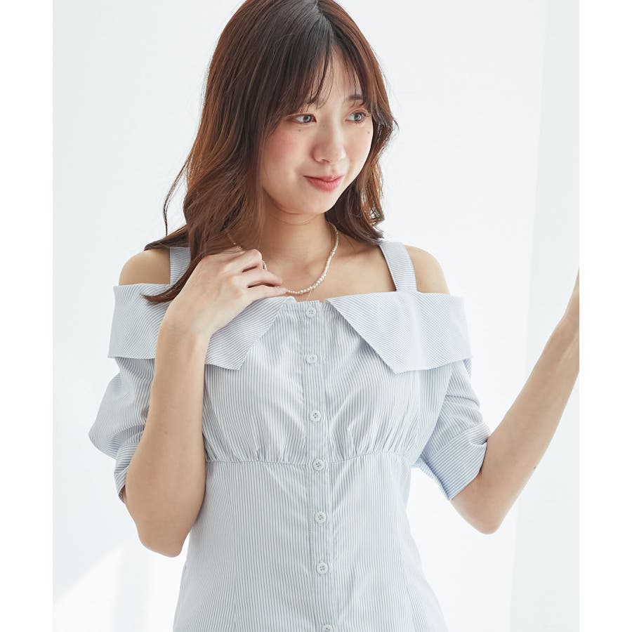 オフショルシャツワンピース