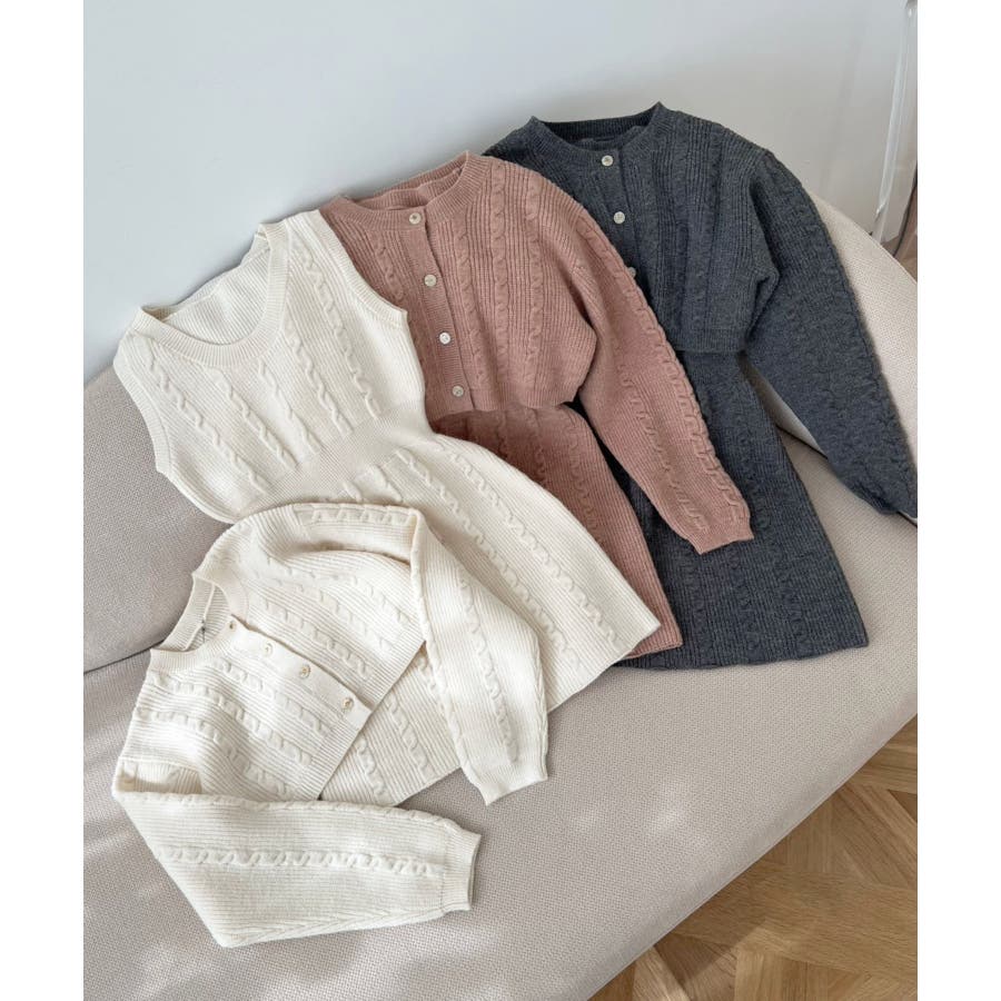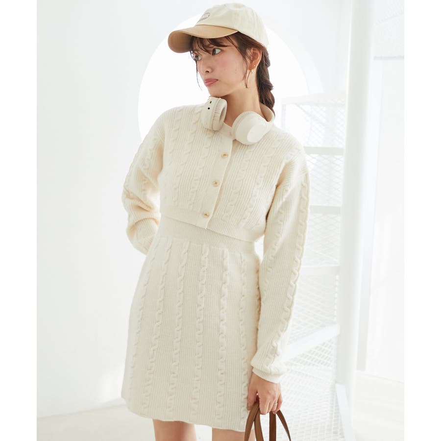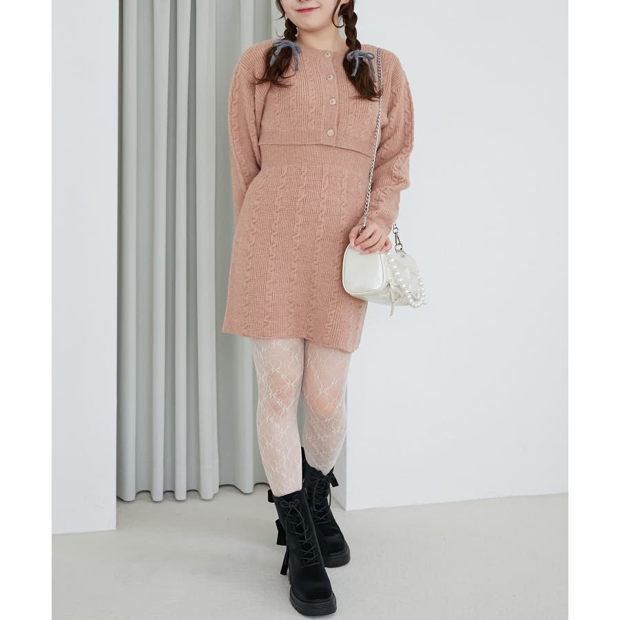 | 素材 | [ワンピース]ナイロン42% アクリル38% ポリエステル20% [カーディガン]ナイロン42% アクリル38% ポリエステル20% |