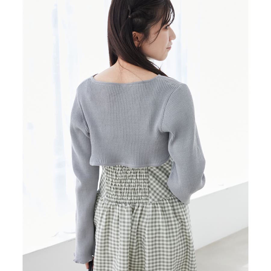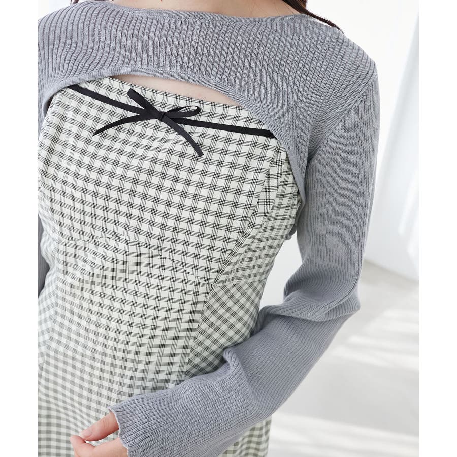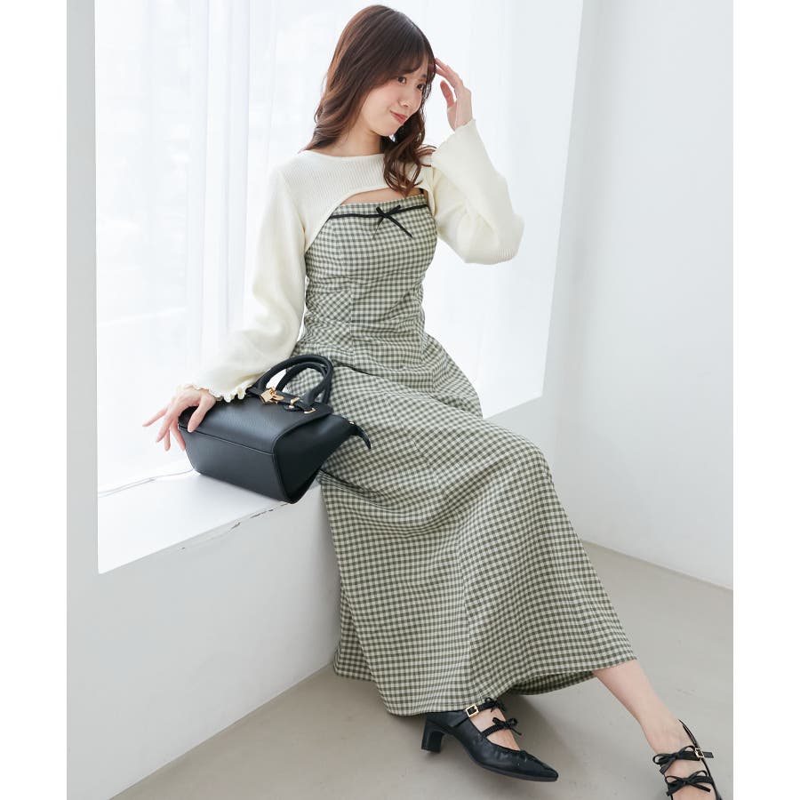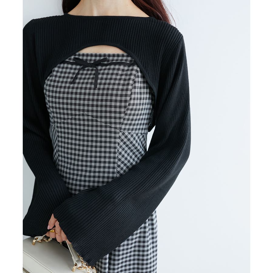 リブニット×デコルテオープンワンピ