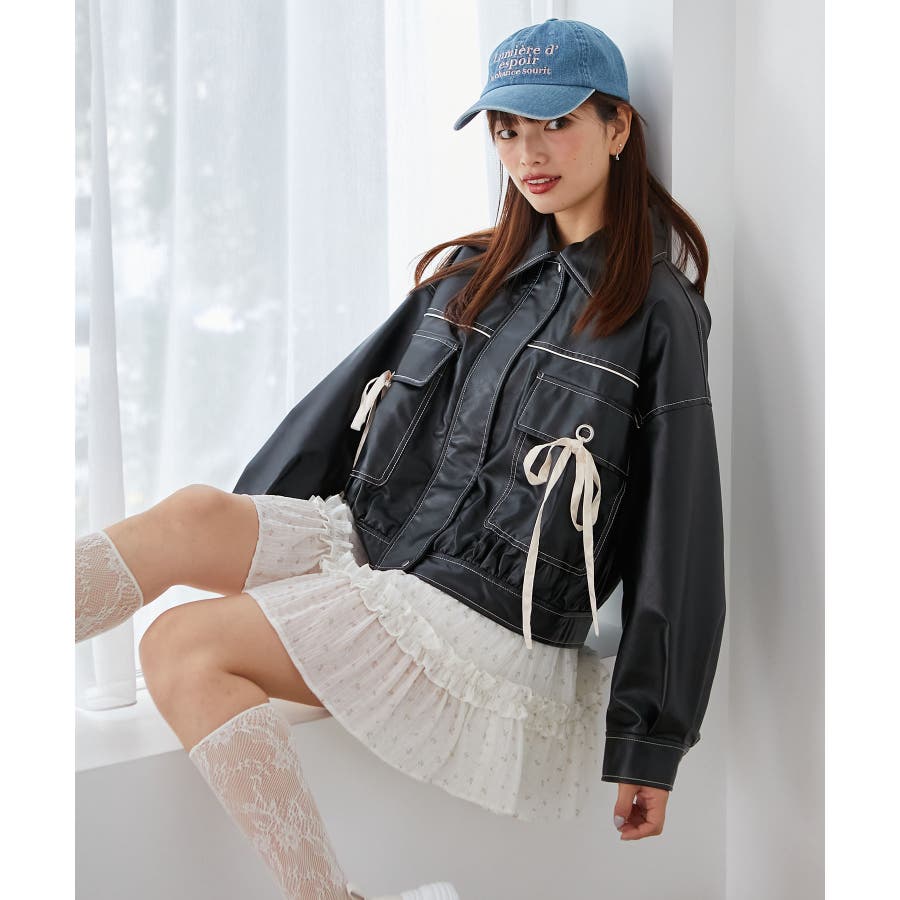 2wayリボンバイカラーブルゾン