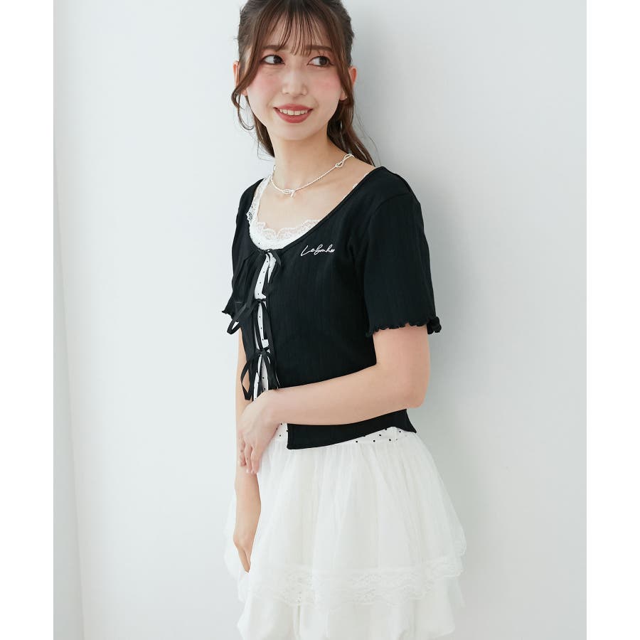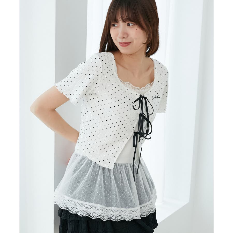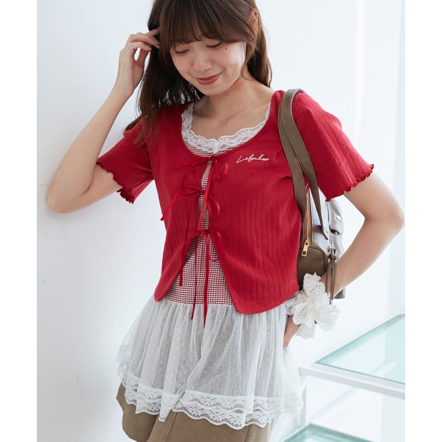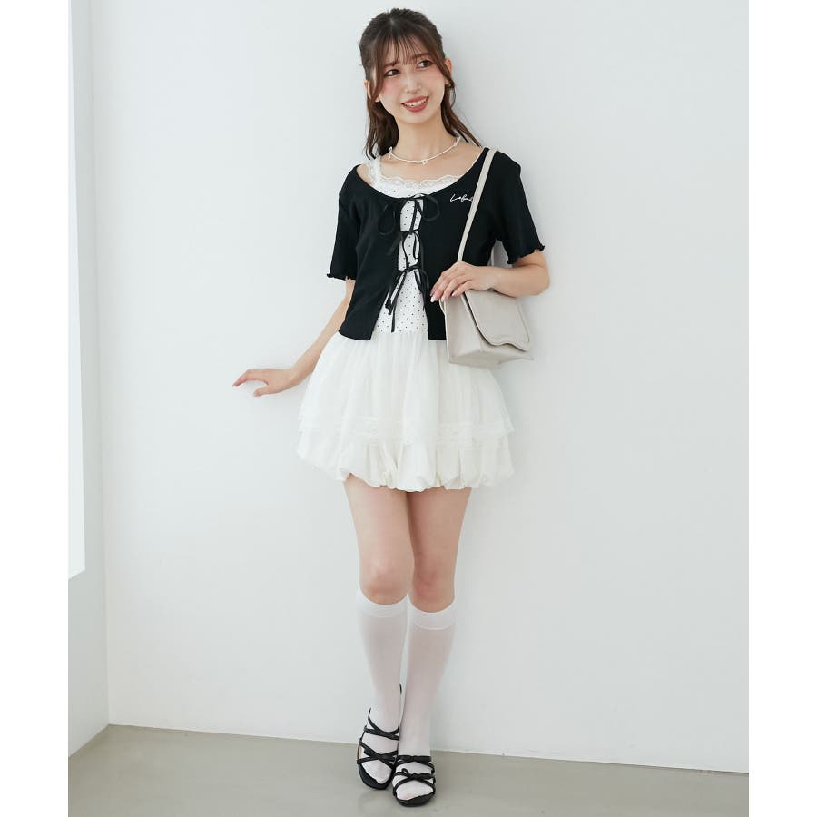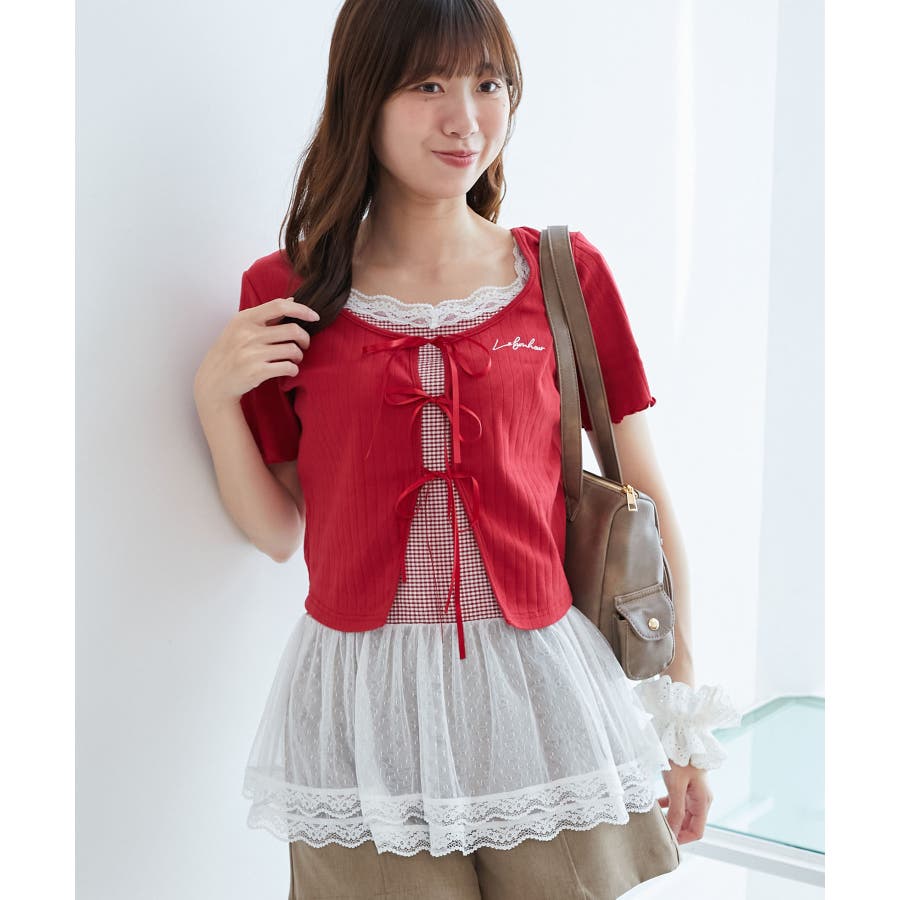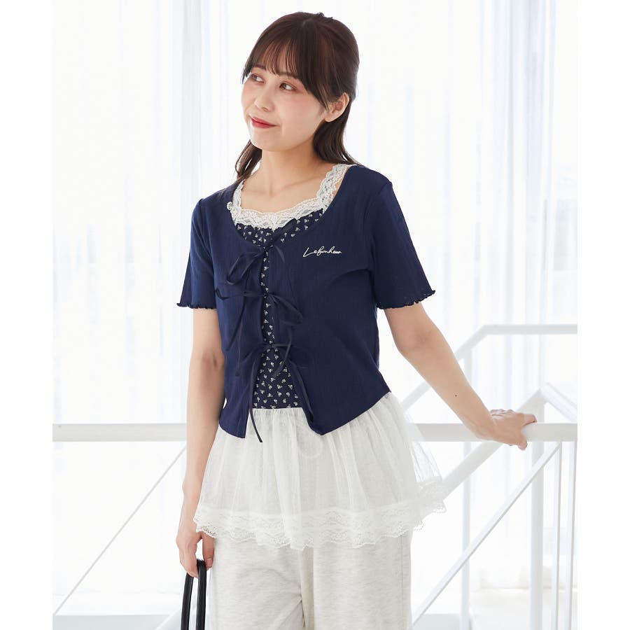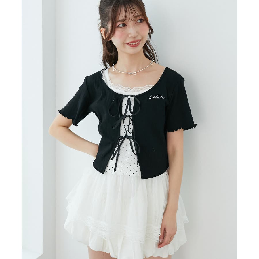 | 素材 | 【カーディガン】本体/綿100% 刺しゅう糸/ポリエステル100% リボン/ポリエステル100% 【キャミソール】[オフベース]本体/綿94% ポリエステル6% チュール/ポリエステル100% レース/ナイロン90% ポリウレタン10% [レッド柄]本体/綿90% ポリエステル10% チュール/ポリエステル100% レース/ナイロン90% ポリウレタン10% |