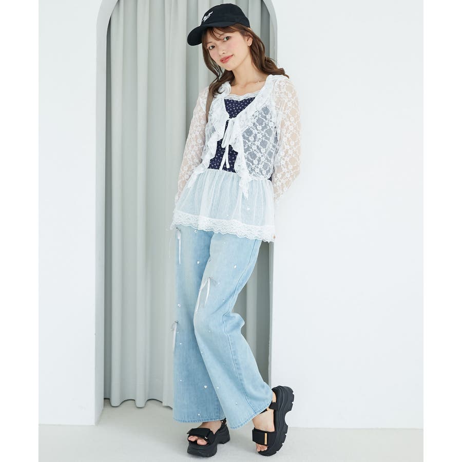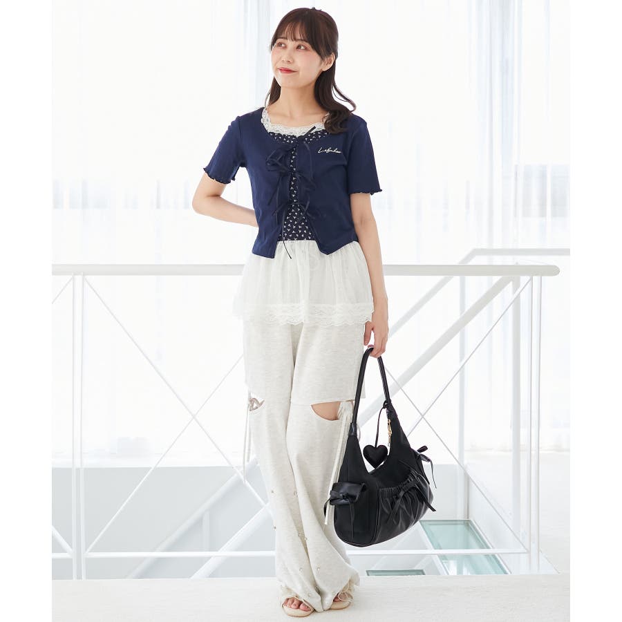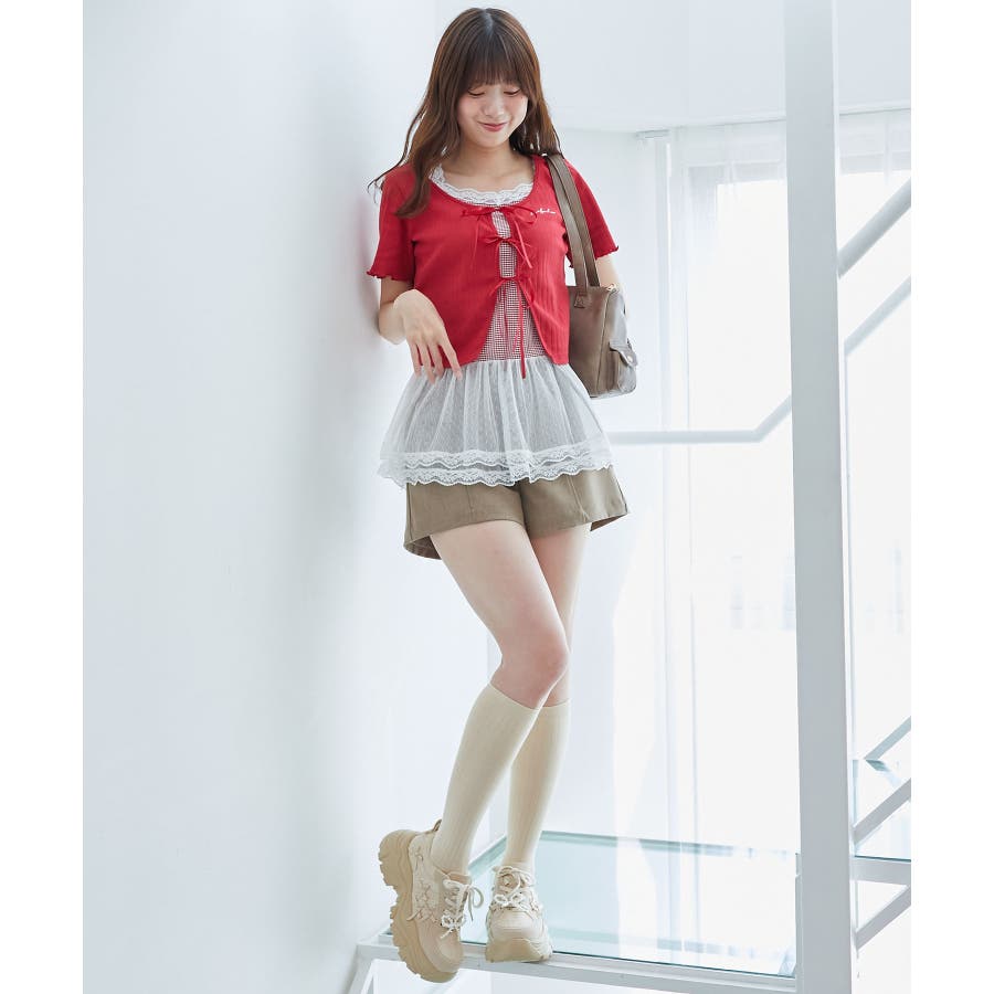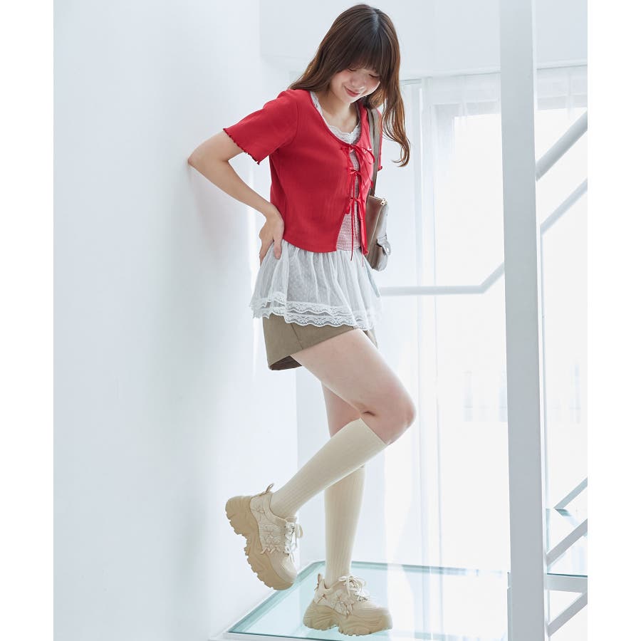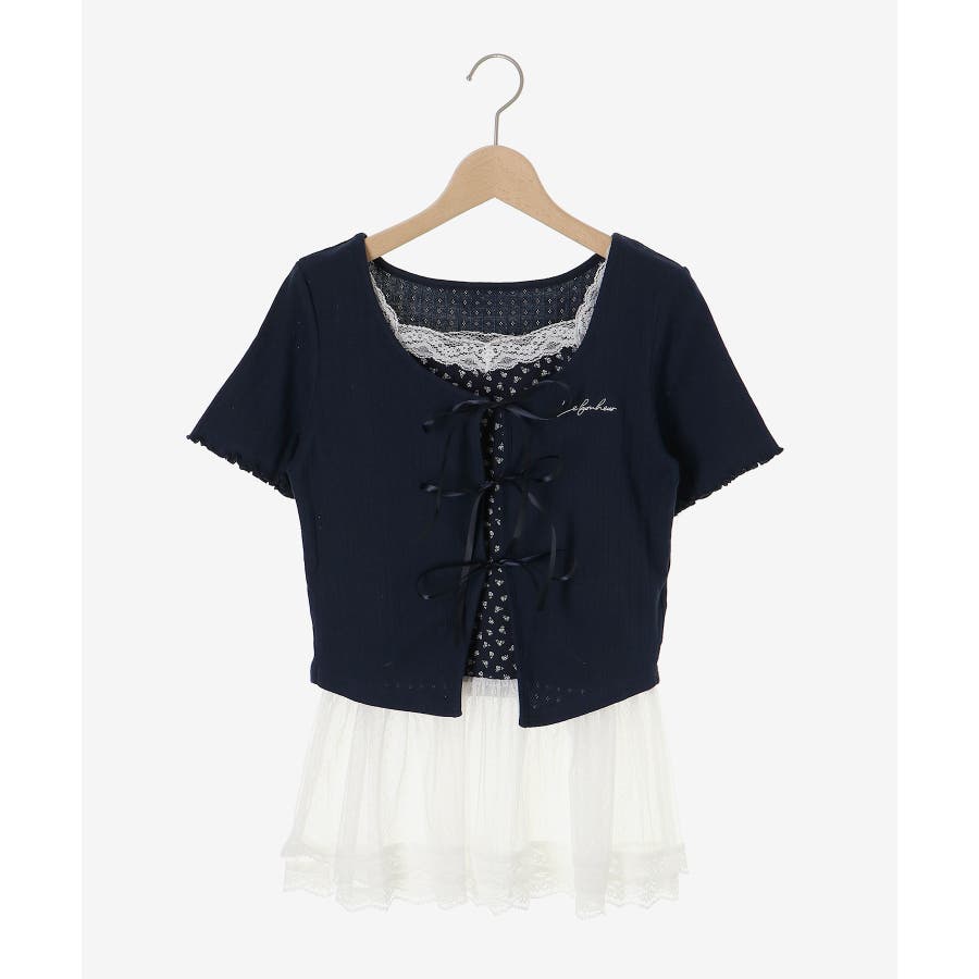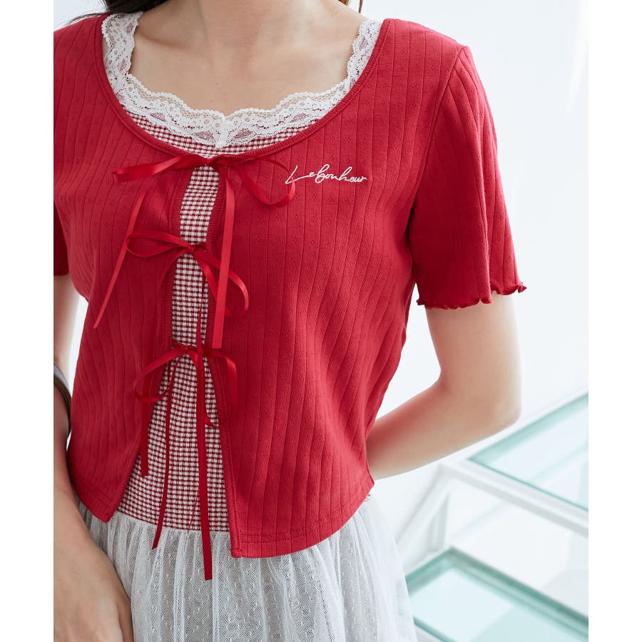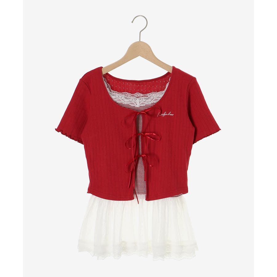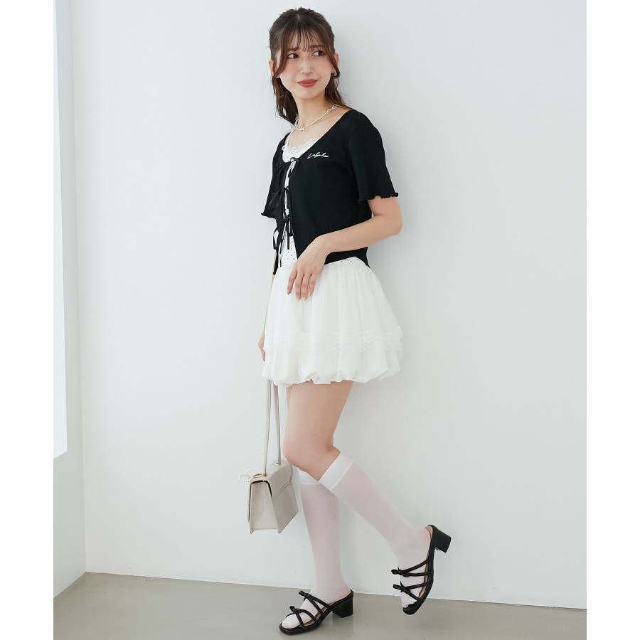 | 素材 | 【カーディガン】本体/綿100% 刺しゅう糸/ポリエステル100% リボン/ポリエステル100% 【キャミソール】[オフベース]本体/綿94% ポリエステル6% チュール/ポリエステル100% レース/ナイロン90% ポリウレタン10% [レッド柄]本体/綿90% ポリエステル10% チュール/ポリエステル100% レース/ナイロン90% ポリウレタン10% |