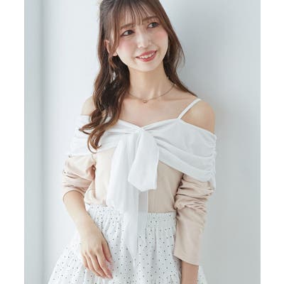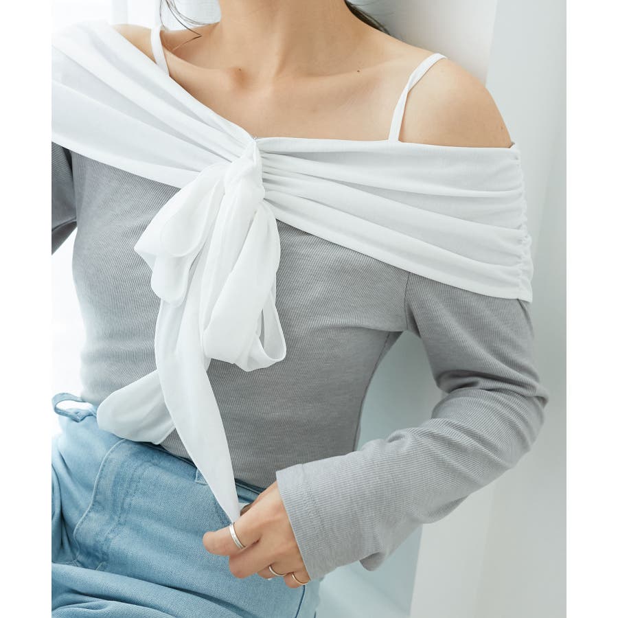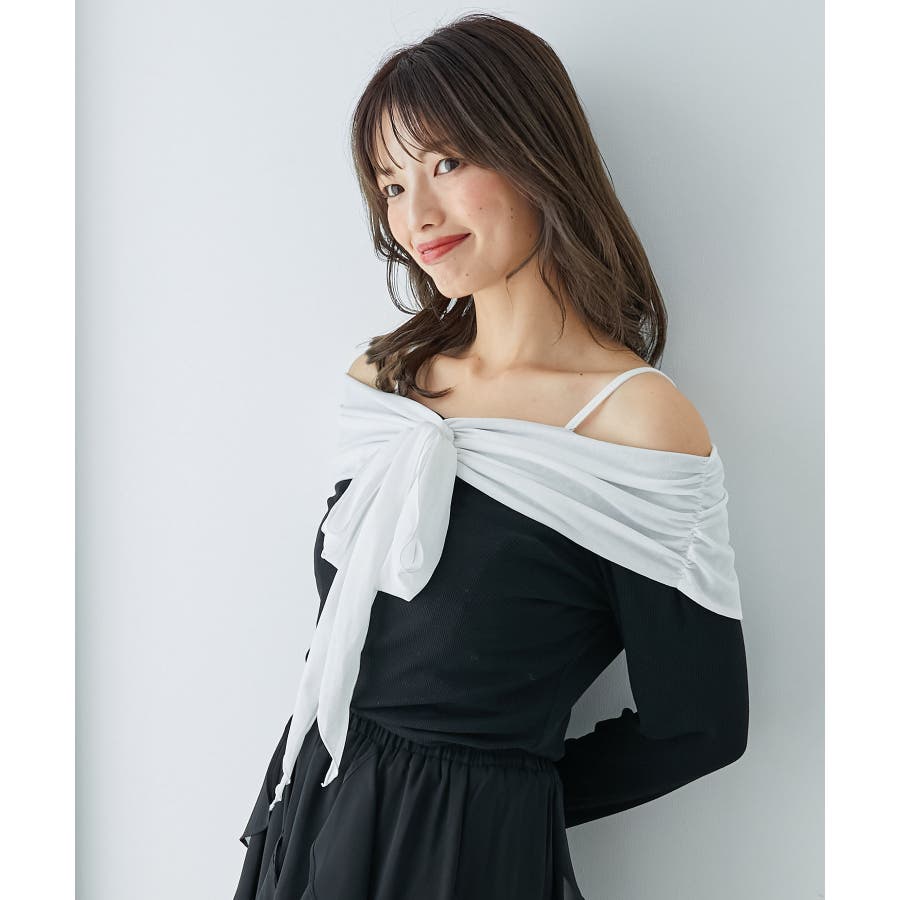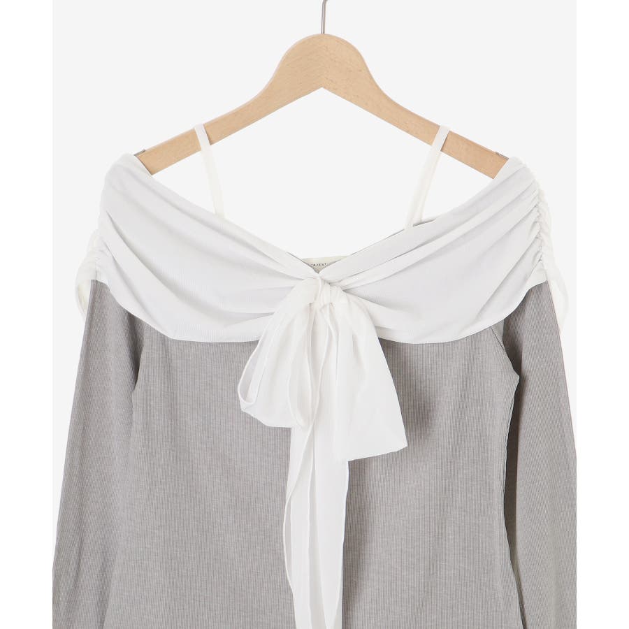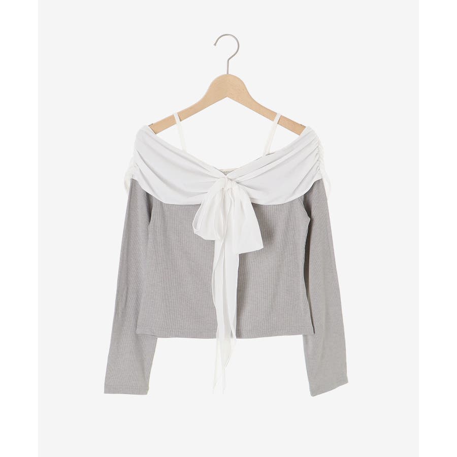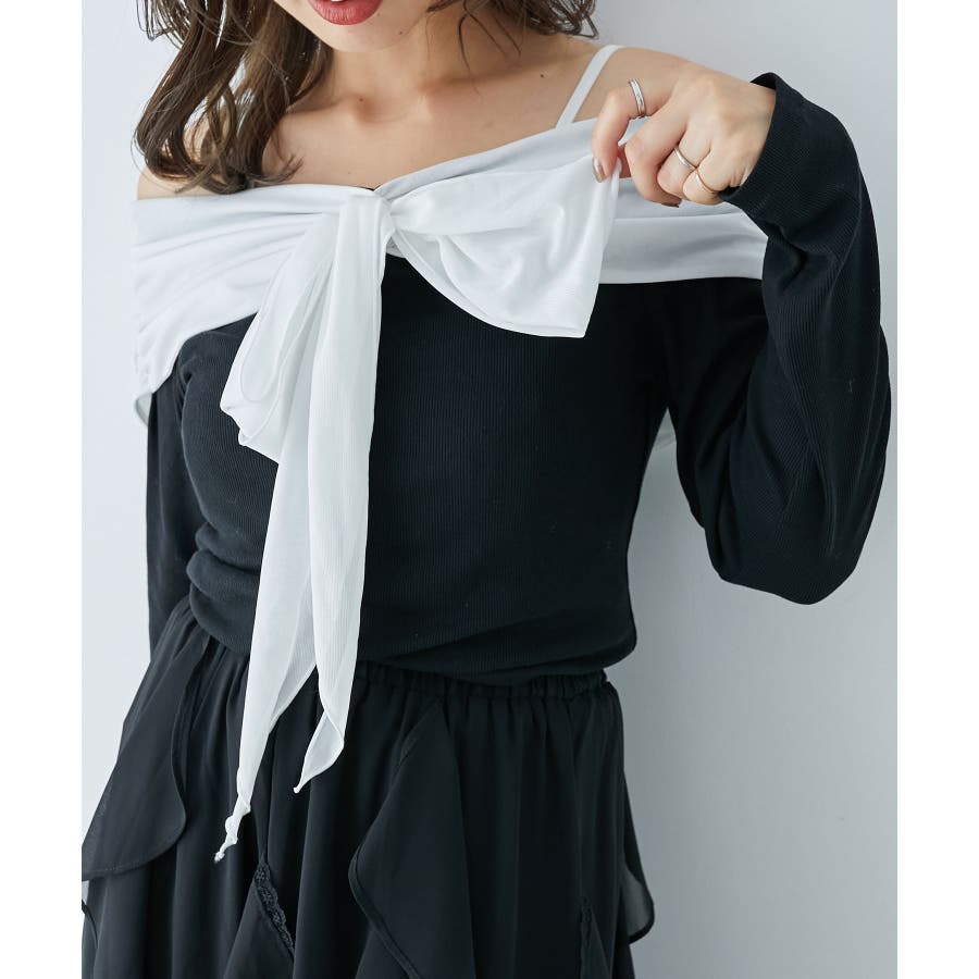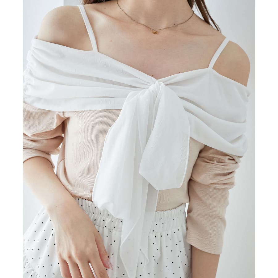 オフショルリボントップス