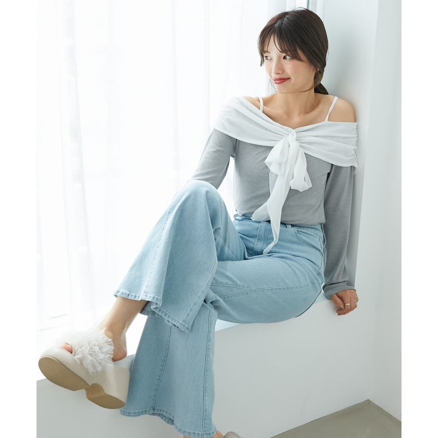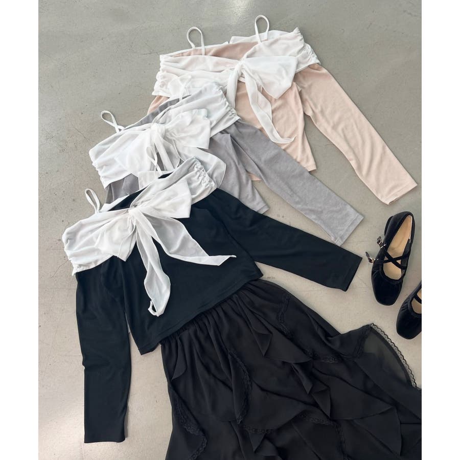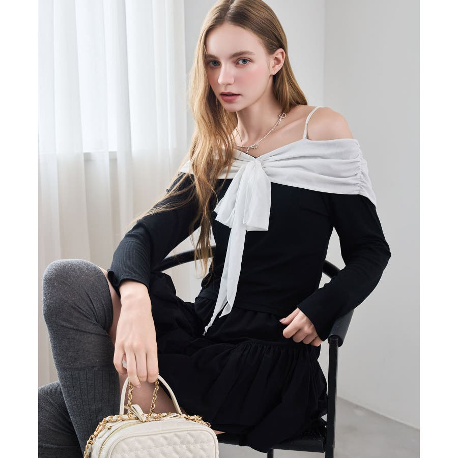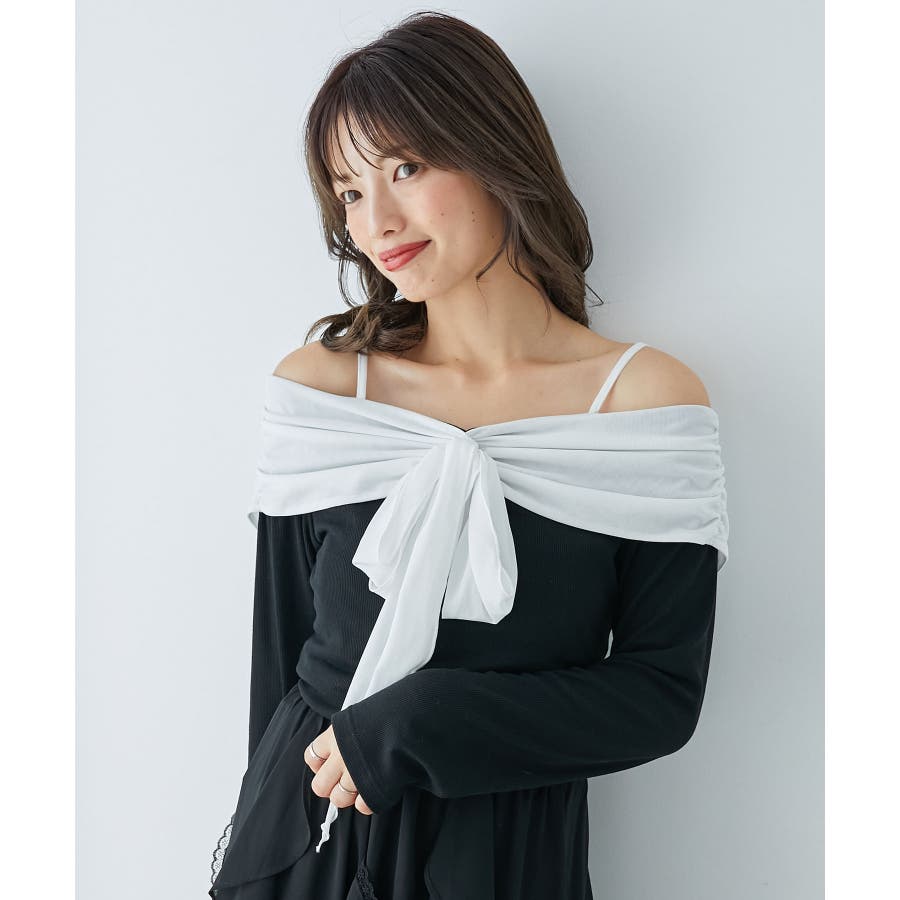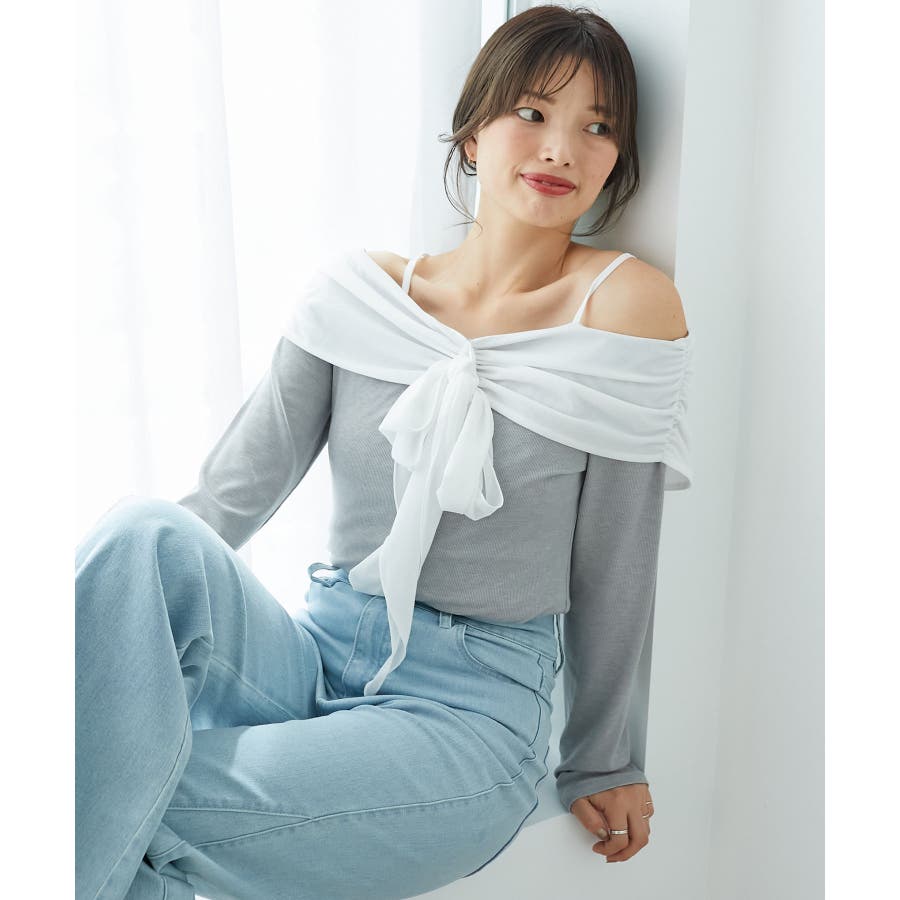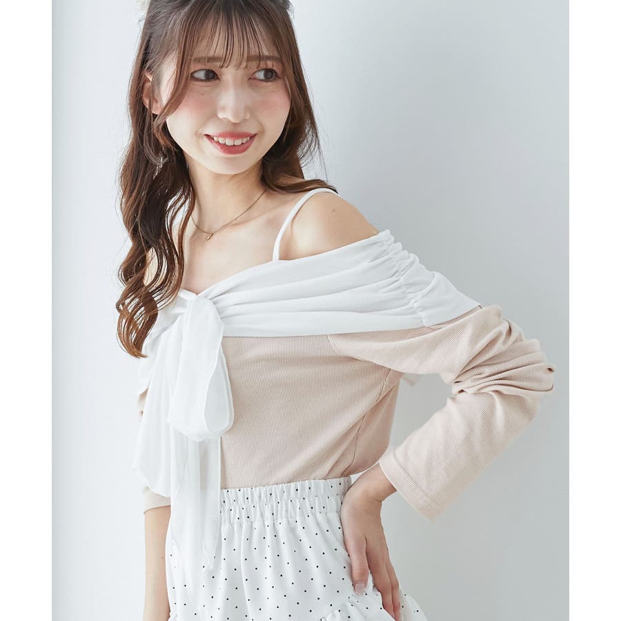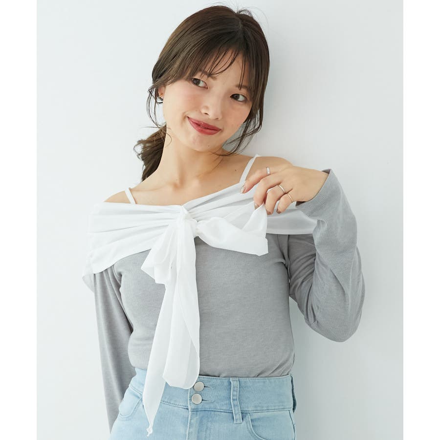 オフショルリボントップス