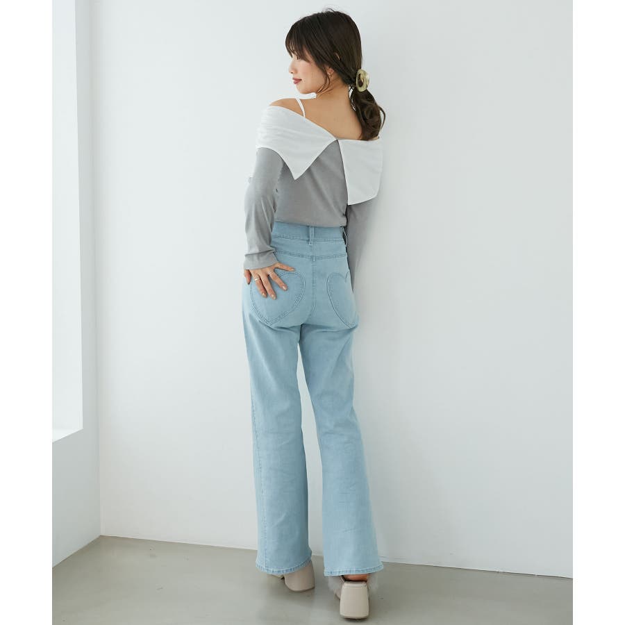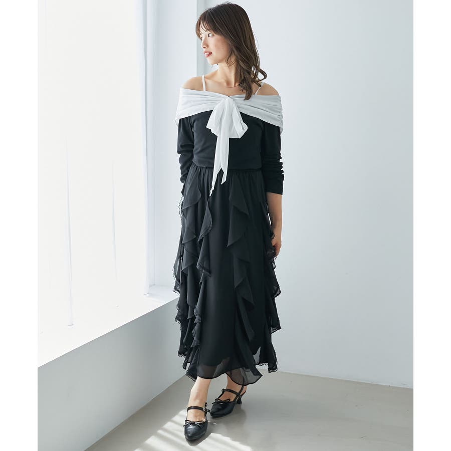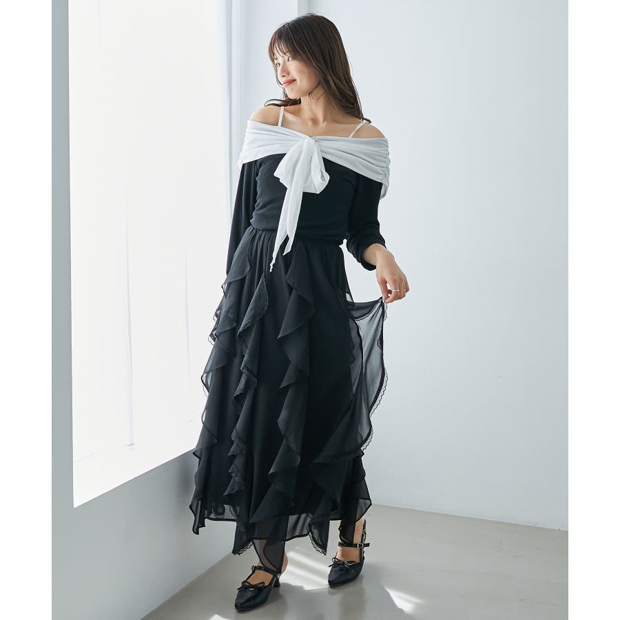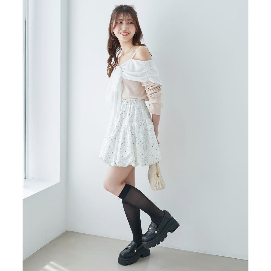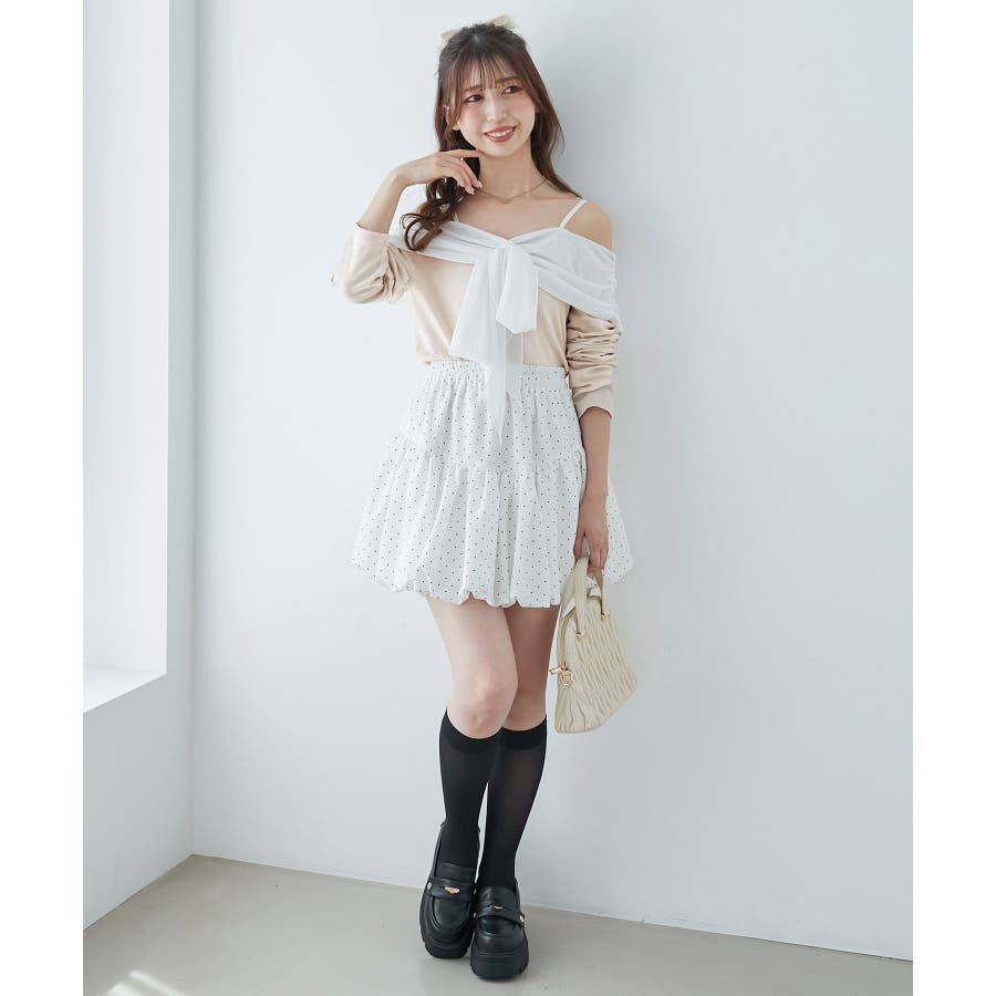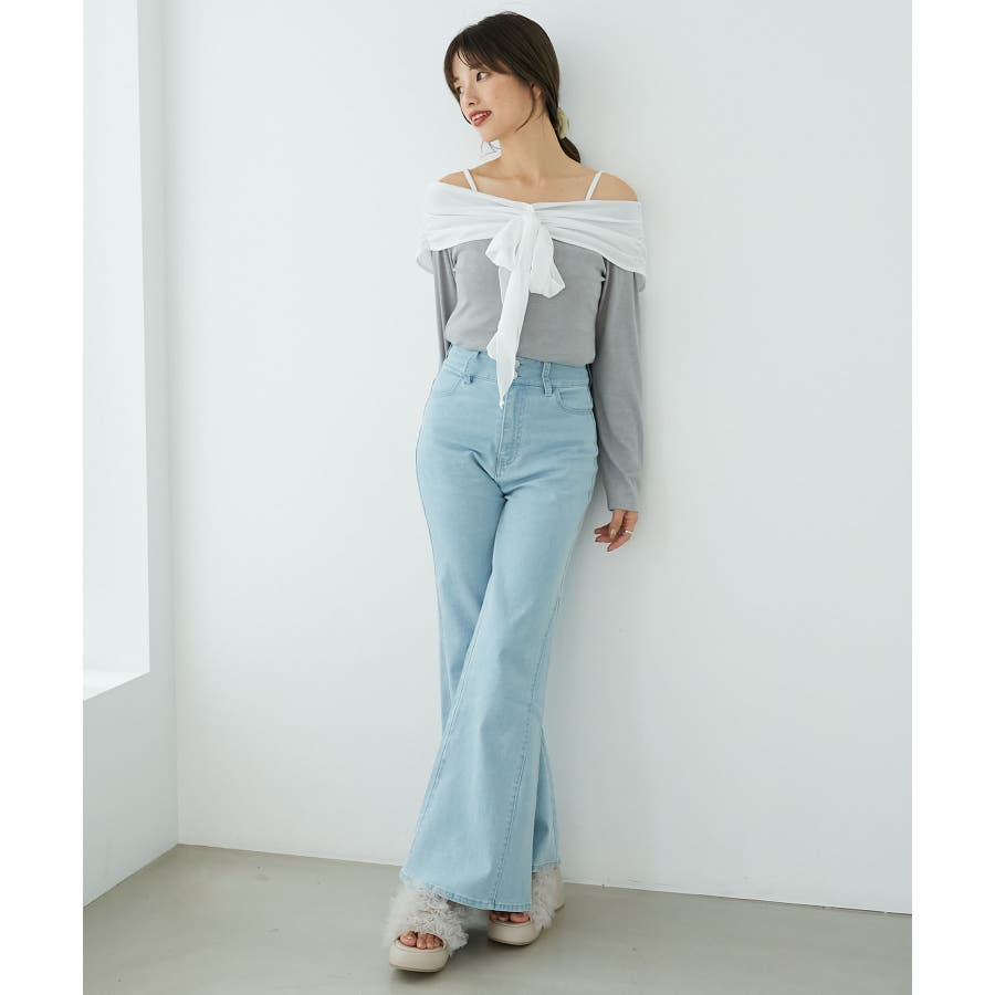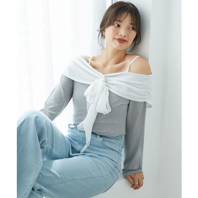 オフショルリボントップス