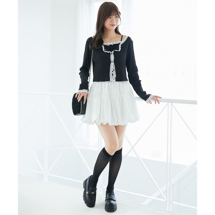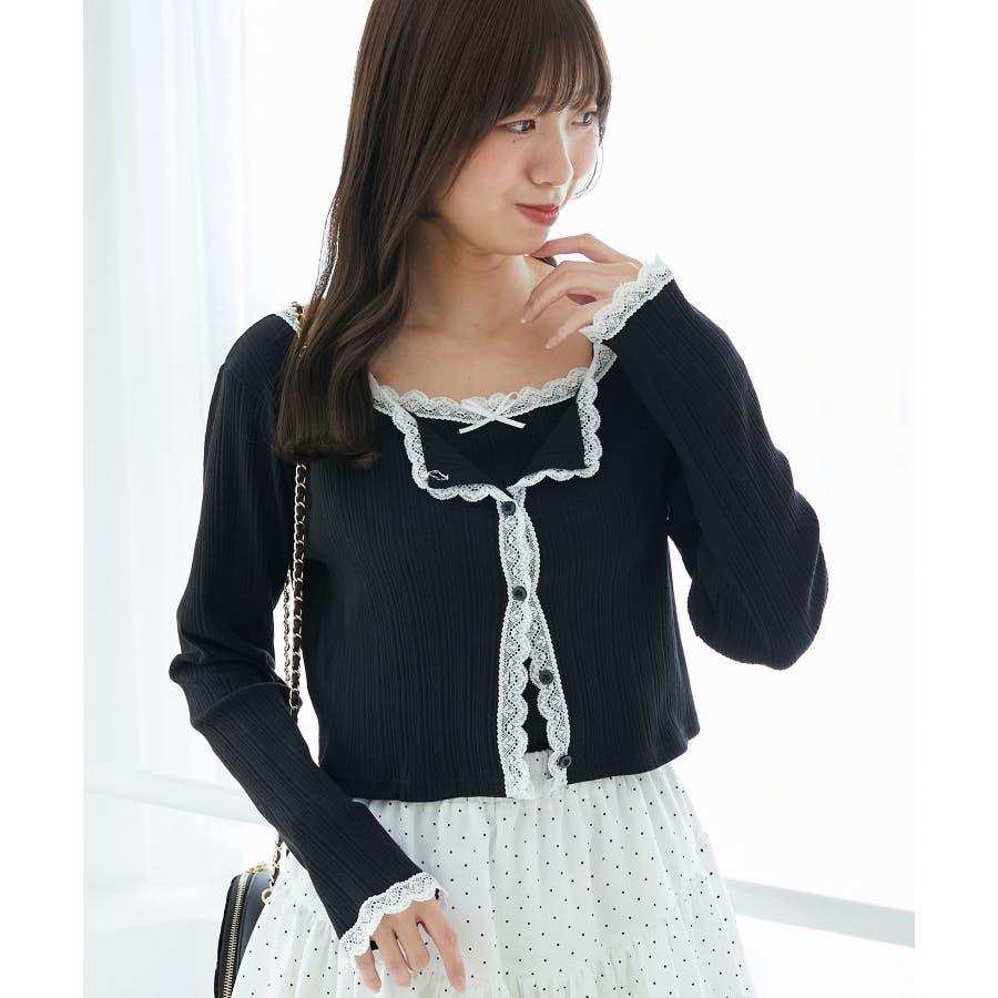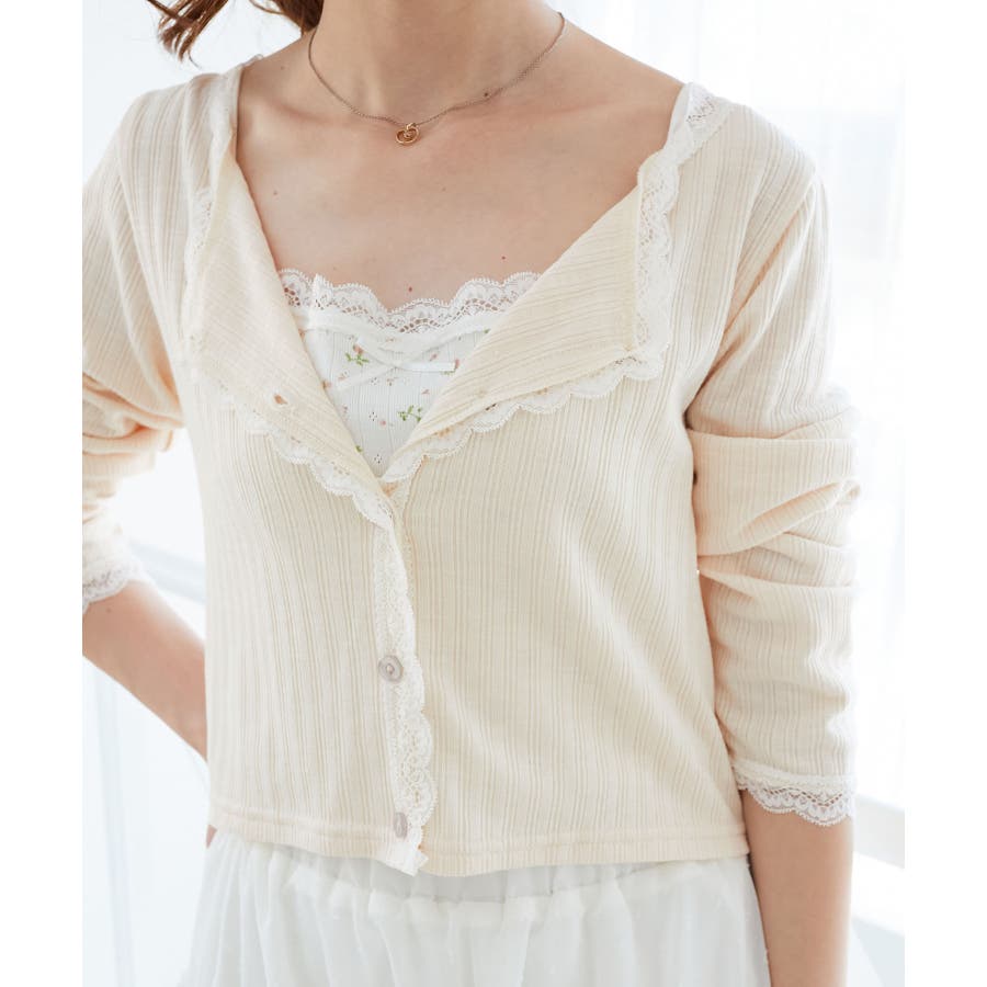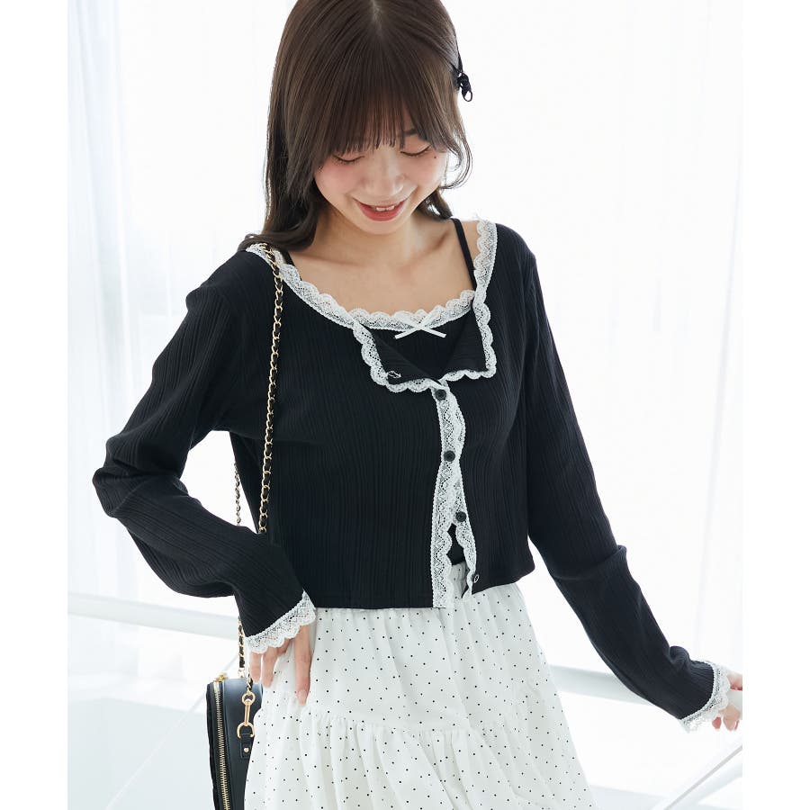 | 素材 | 【アイボリー・L/グレー・ブラック】[カーディガン]本体/綿94% ポリウレタン6% レーステープ/ナイロン88% ポリウレタン12% [キャミソール]本体/綿94% ポリウレタン6% レーステープ/ナイロン88% ポリウレタン12% サテンテープ/ポリエステル100% |