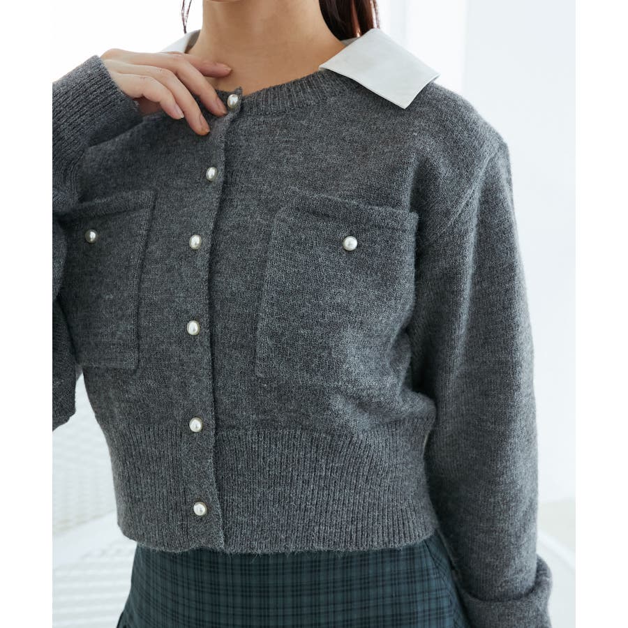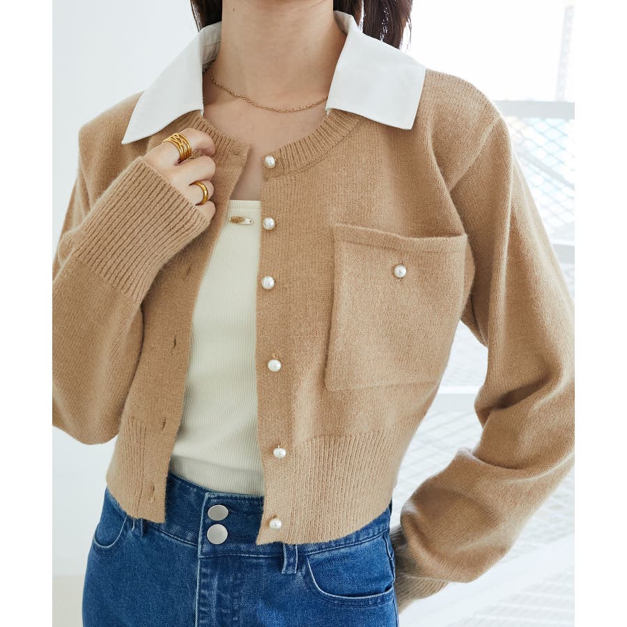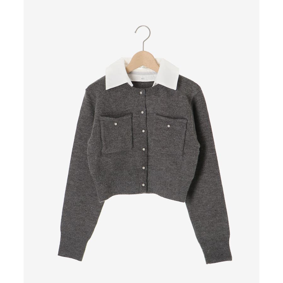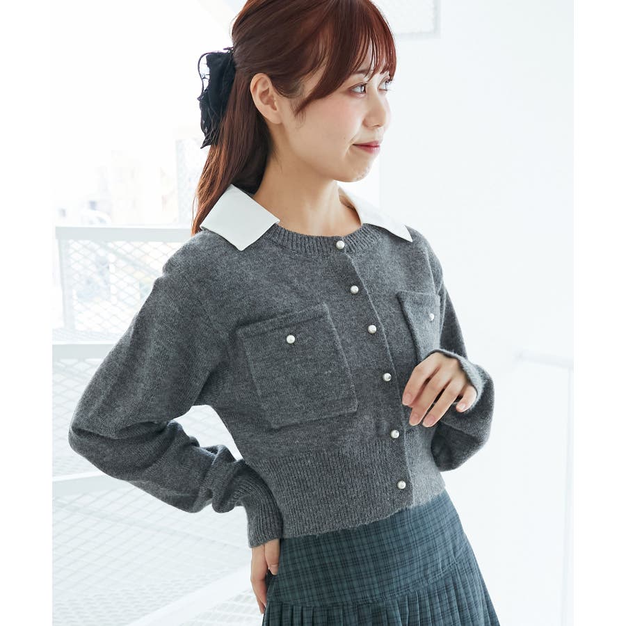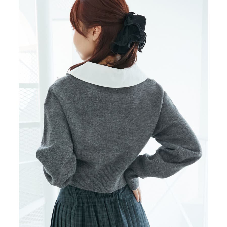 取り外し襟付きニットカーデ