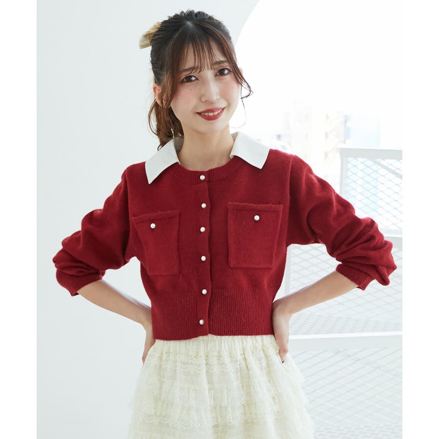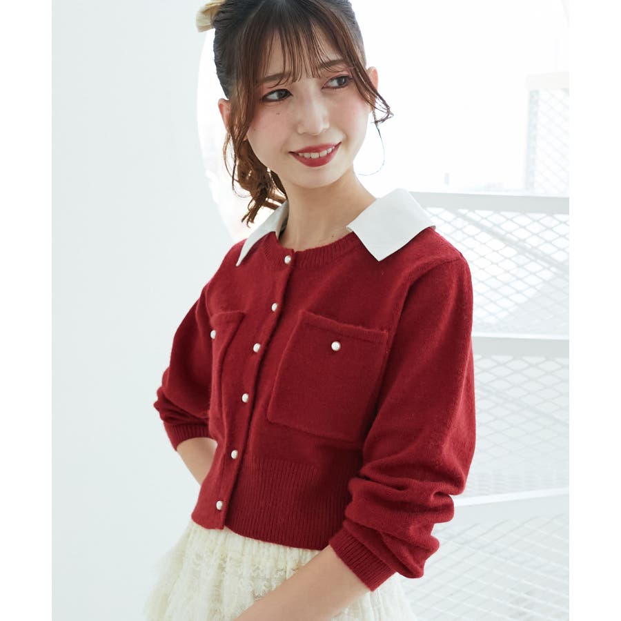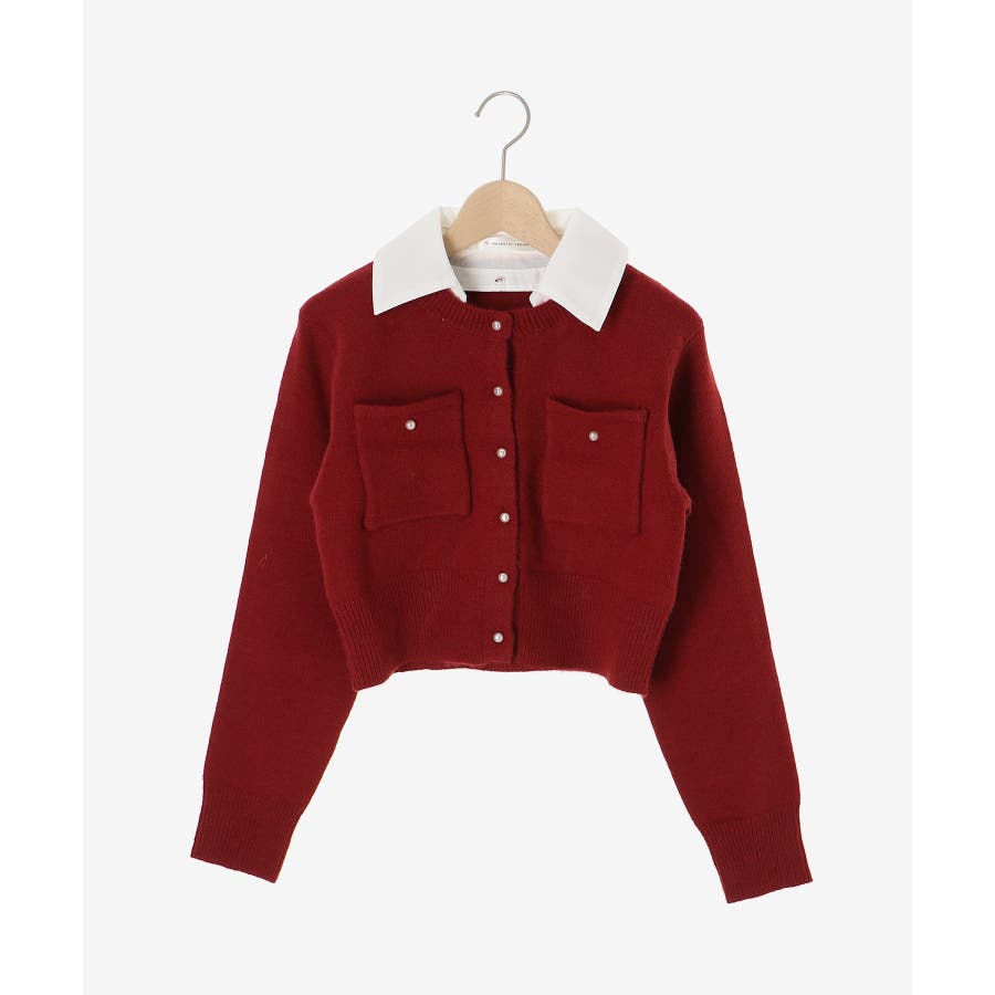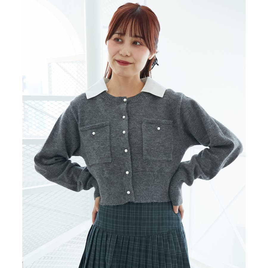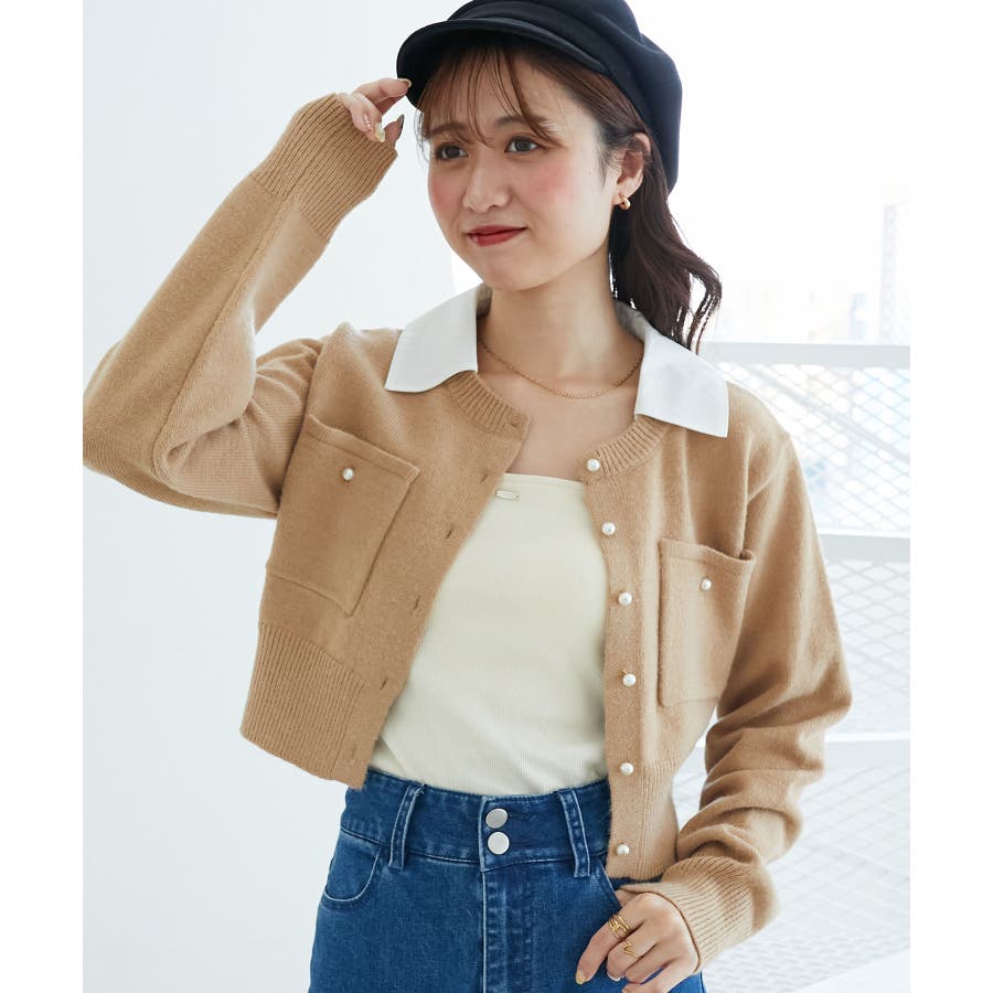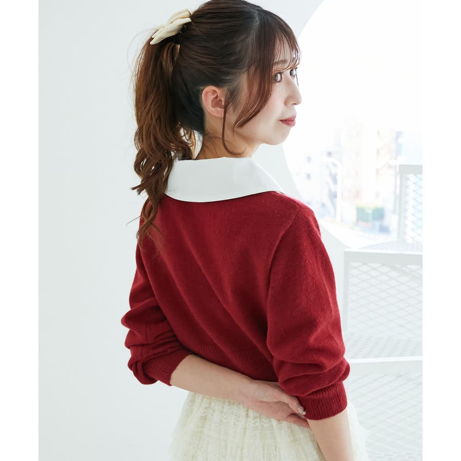 取り外し襟付きニットカーデ