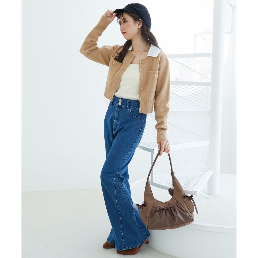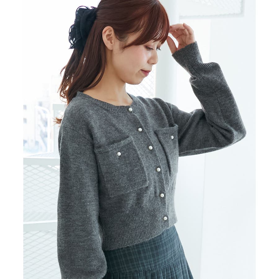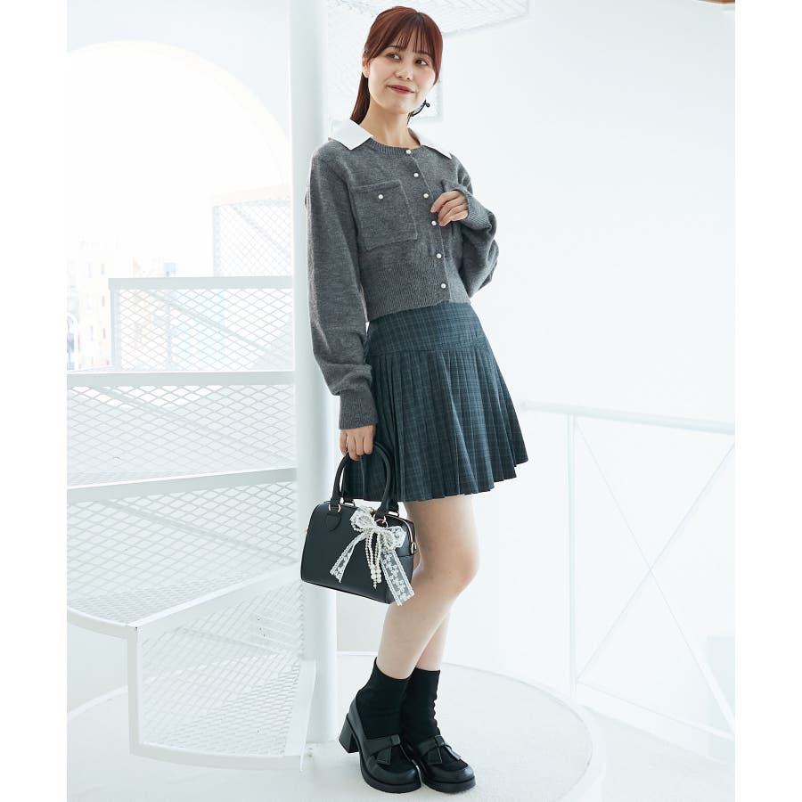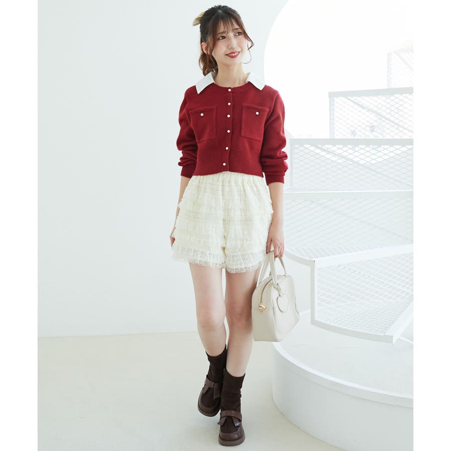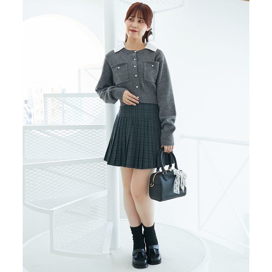 取り外し襟付きニットカーデ