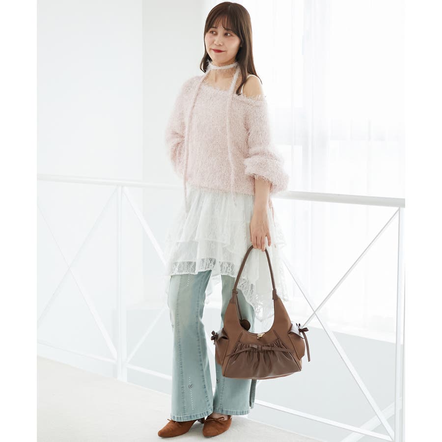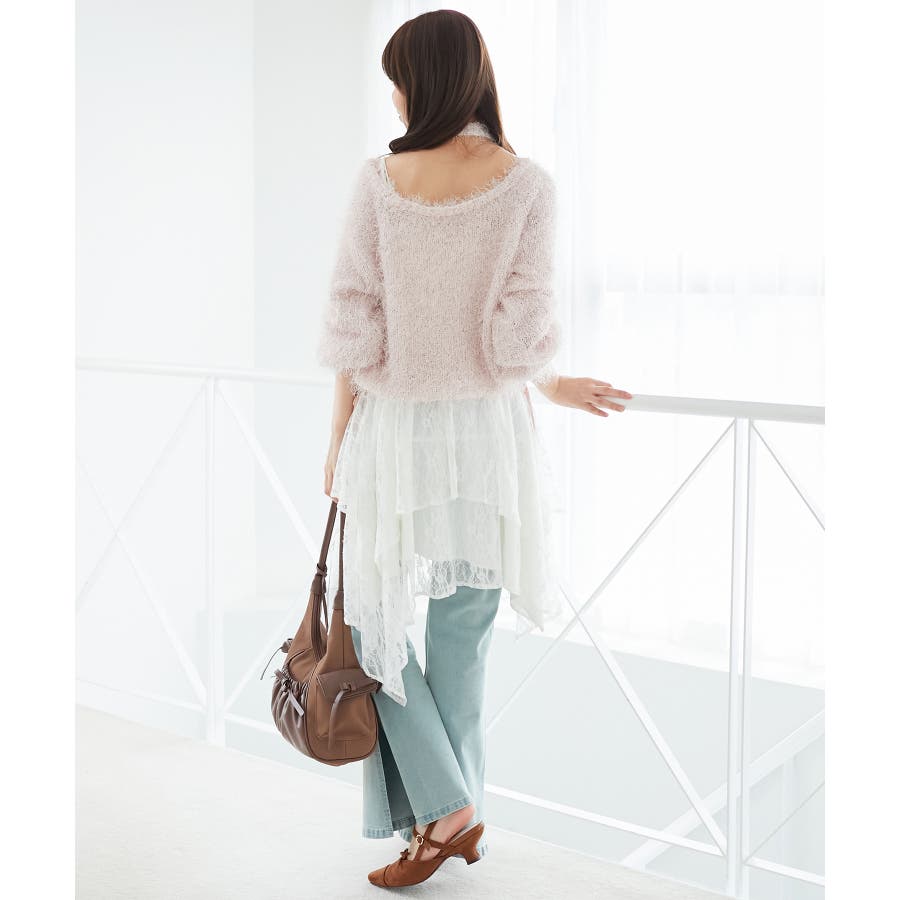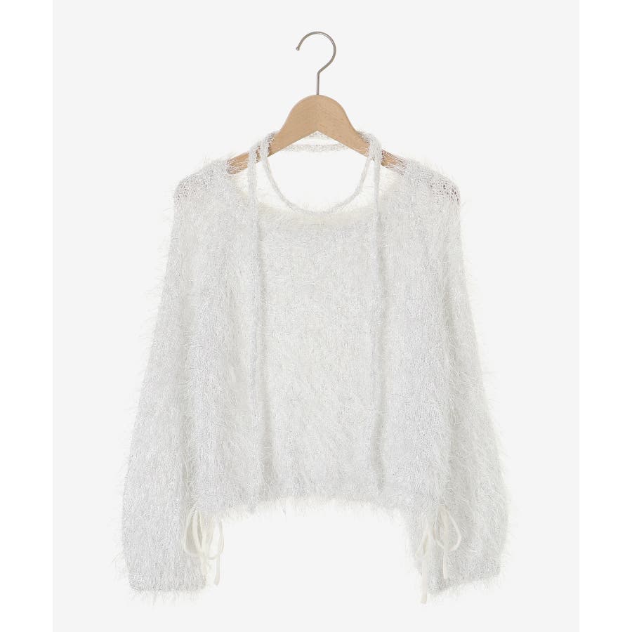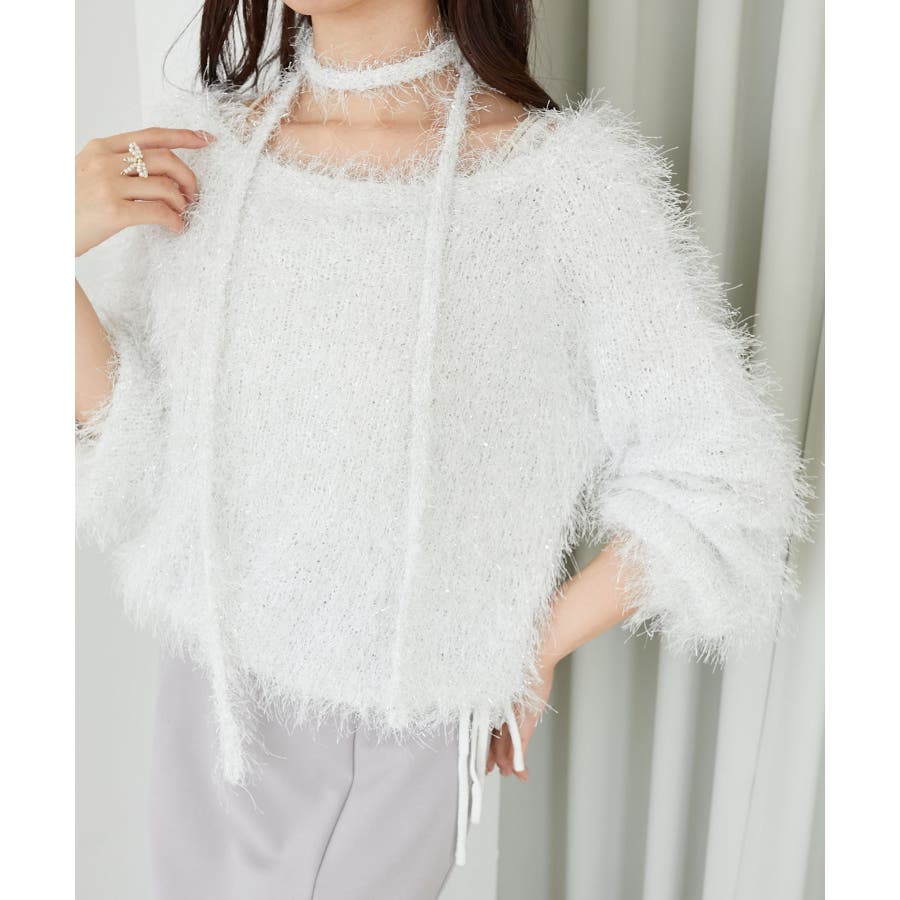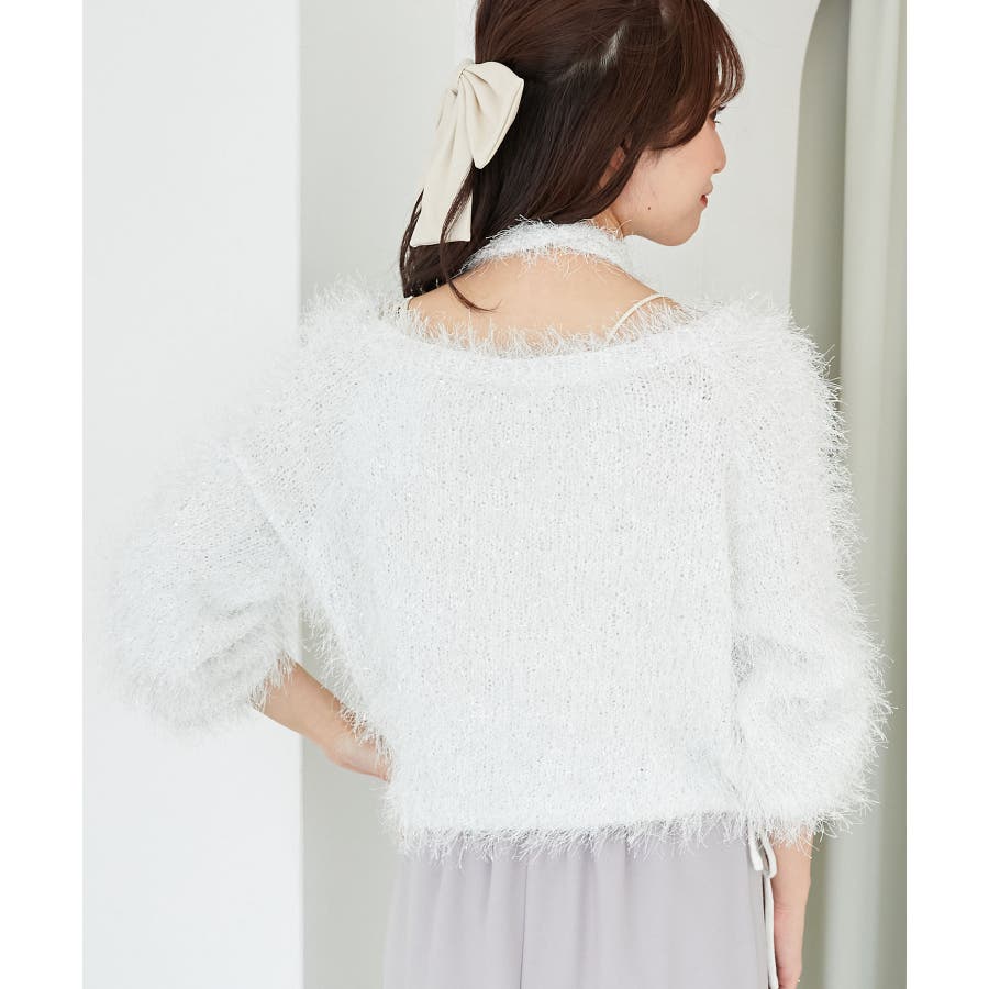 ふんわりきらめく女っぽニュアンスルーズニット■デザイン毛足の長いふわふわ糸にラメを織り込み、光の角度でほんのりきらめく華やかニット。裾のドロストでシルエットを調整でき、ゆるっと着こなしても女性らしいヌケ感を演出。リラックス感とフェミニンさを兼ね備えた万能アイテムです。■サイズ感全体的にゆとりのあるサイズ感です。裾のドロストでシルエットを変えることができます。※ネックポイントからの着丈:44cm■スタイリングデニム合わせでカジュアルフェミニンに仕上げたり、スカートでとことん女っぽく仕上げたりと、合わせるアイテムで印象を変えていただけます◎・・・・・・・・・・・・・・・・・・・・・・透け感:なし裏地:なし伸縮性:あり光沢感:あり生地の厚さ:普通・・・・・・・・・・・・・・・・・・・・・・■商品のお気に入り登録:再入荷通知やのこりわずか、お得なプライスダウンの情報も受け取ることができます。ぜひご登録ください◎※サンプルでの撮影の為、製品と仕様が異なる場合がございます。※商品の色味は、撮影場所や光のあたり具合などにより色味が違って見える場合がございます。また、お客様のお使いのモニター環境などにより色味が異なって見える場合がございます。予めご了承の上ご注文下さい。