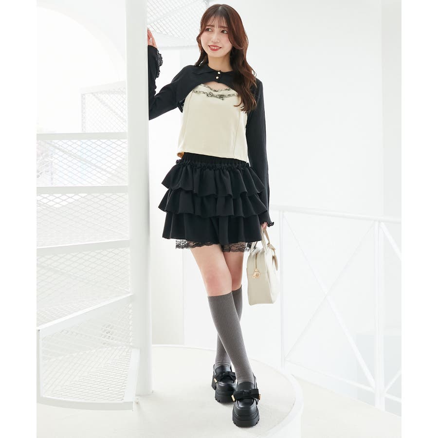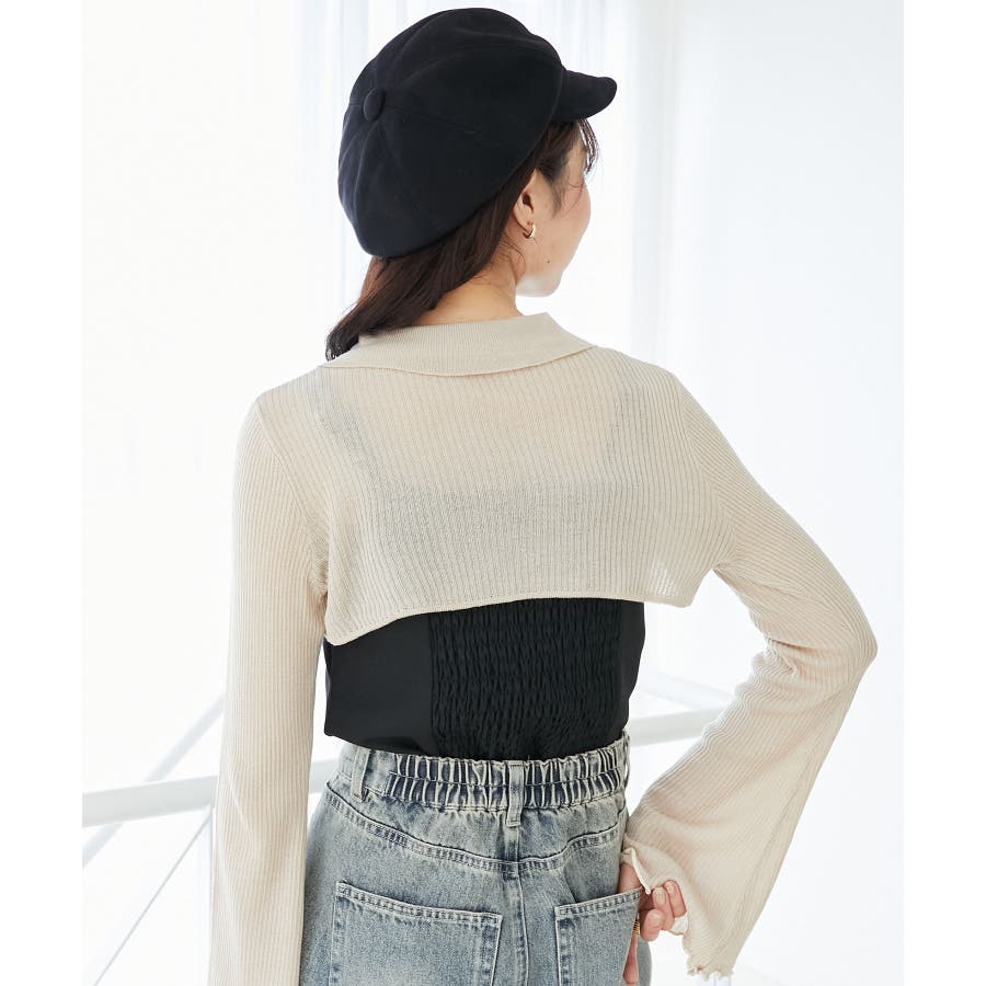| 素材 | 【アイボリー・ブラック柄】[ボレロ]アクリル100% [キャミソール]表地/綿100% 裏地/ポリエステル100% 別布/ポリエステル80% 綿20% 【ベージュ】[ボレロ]アクリル100% [キャミソール]表地/ポリエステル100% 裏地/ポリエステル100% 別布/ポリエステル85% 綿11% ポリウレタン4% |