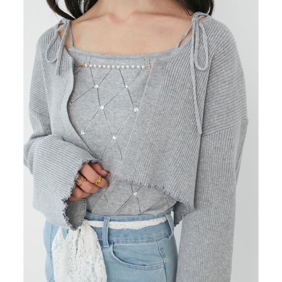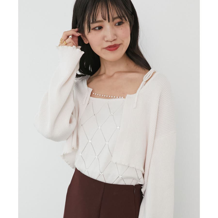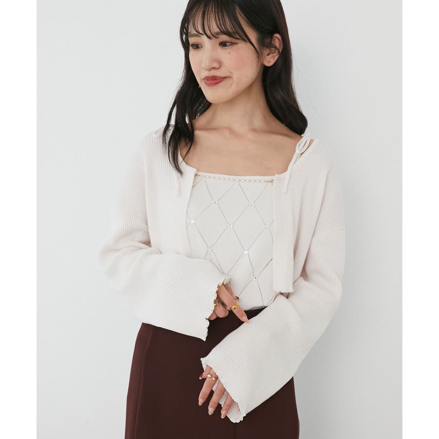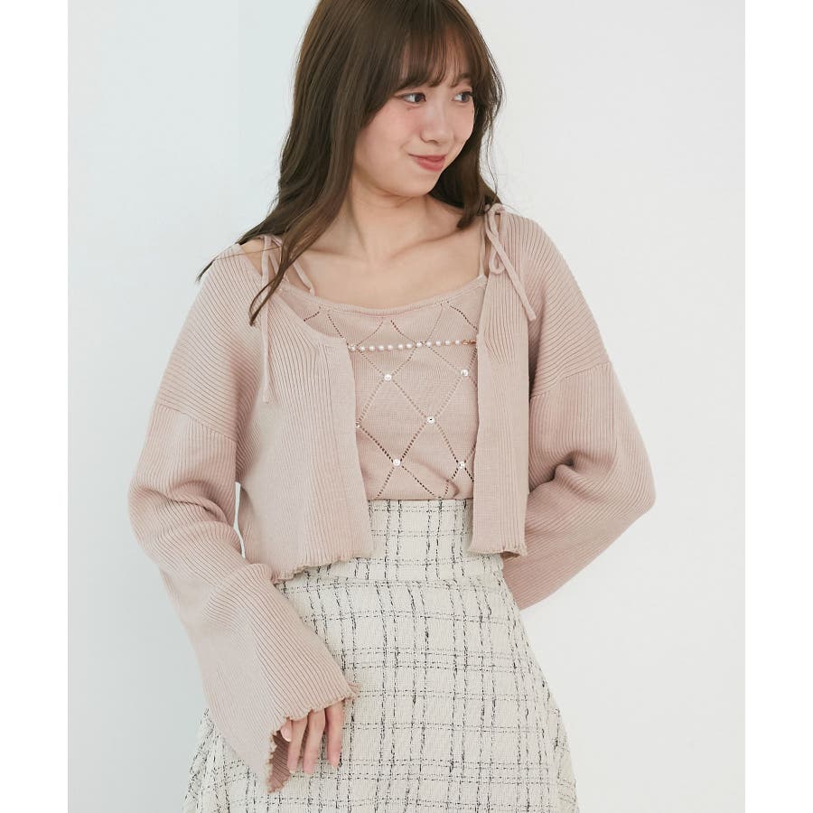 | 素材 | カーディガン/アクリル55% 綿45% キャミソール/アクリル55% 綿45% |