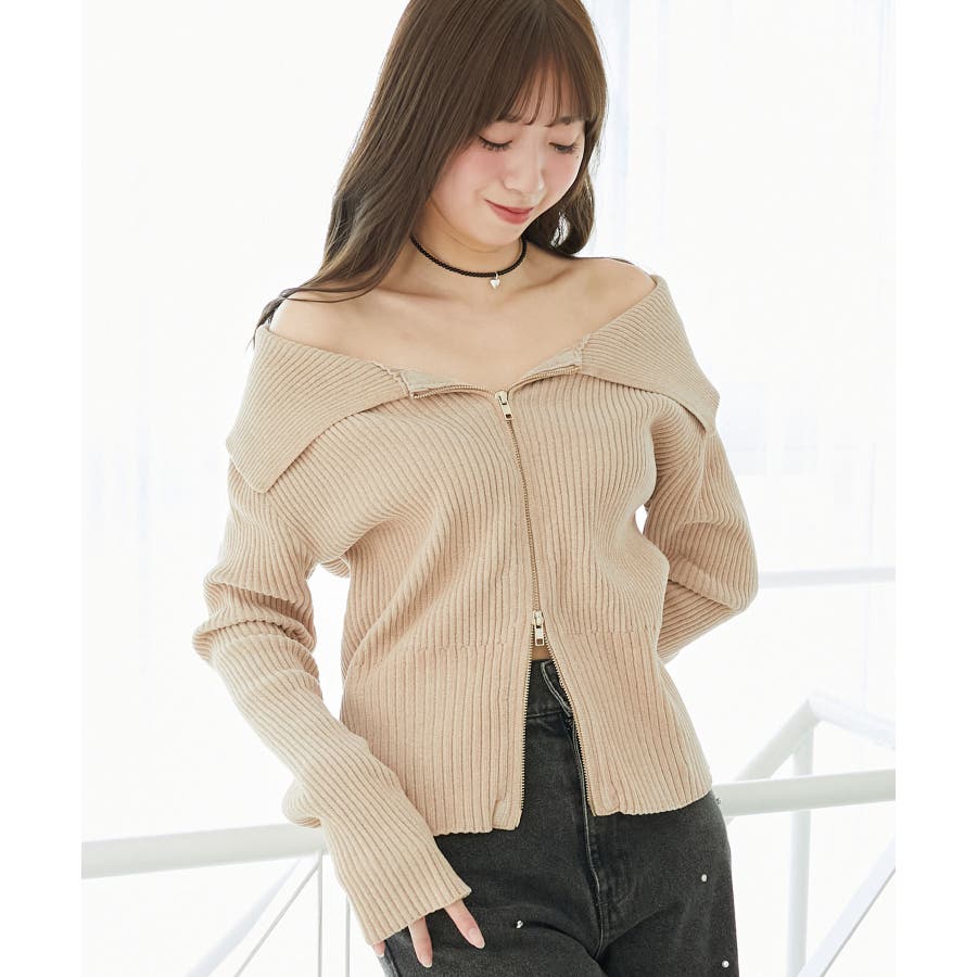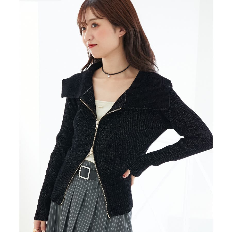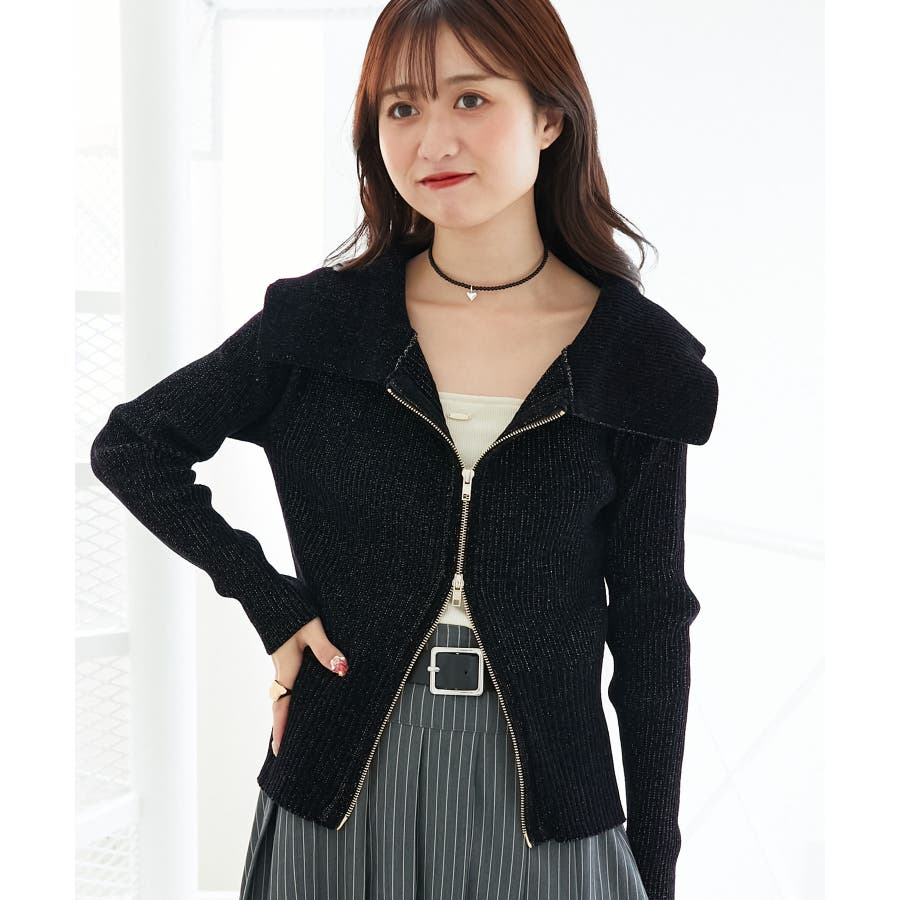キラキラモールダブルジップニット