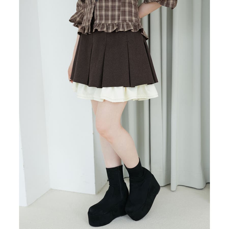 配色フリルプリーツスカート