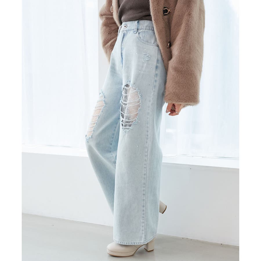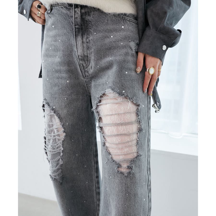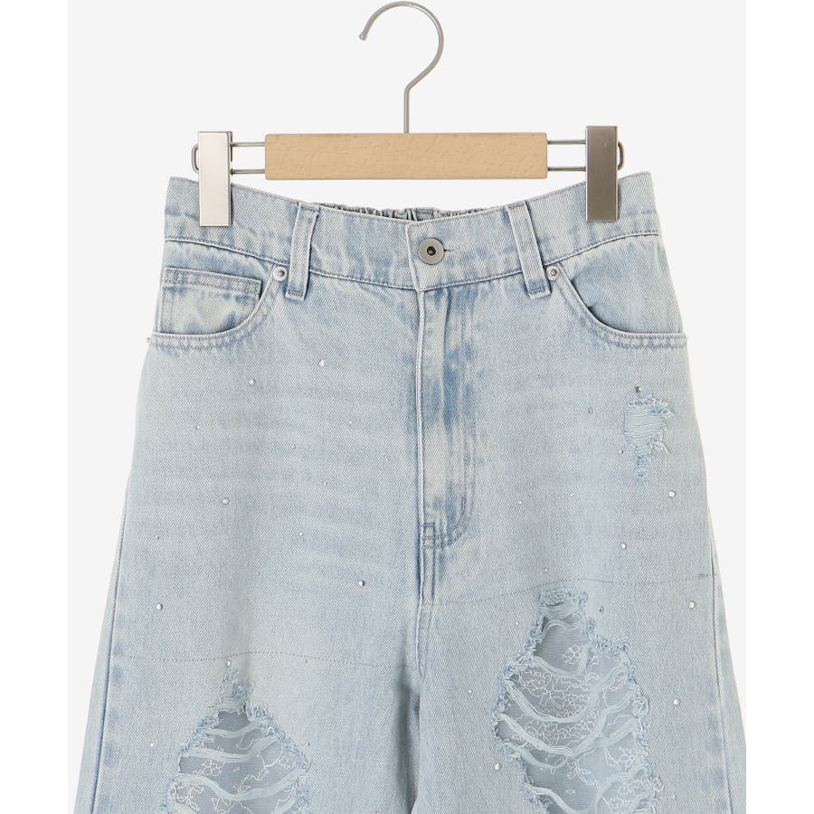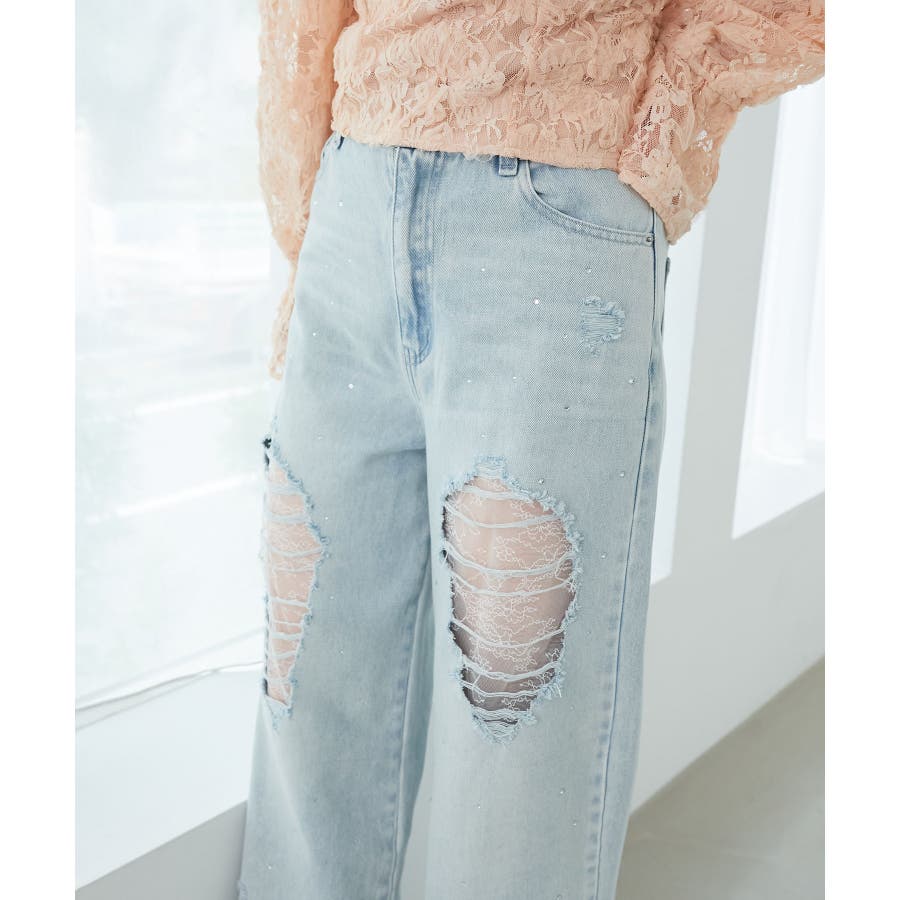 キラキラレースダメージデニム
