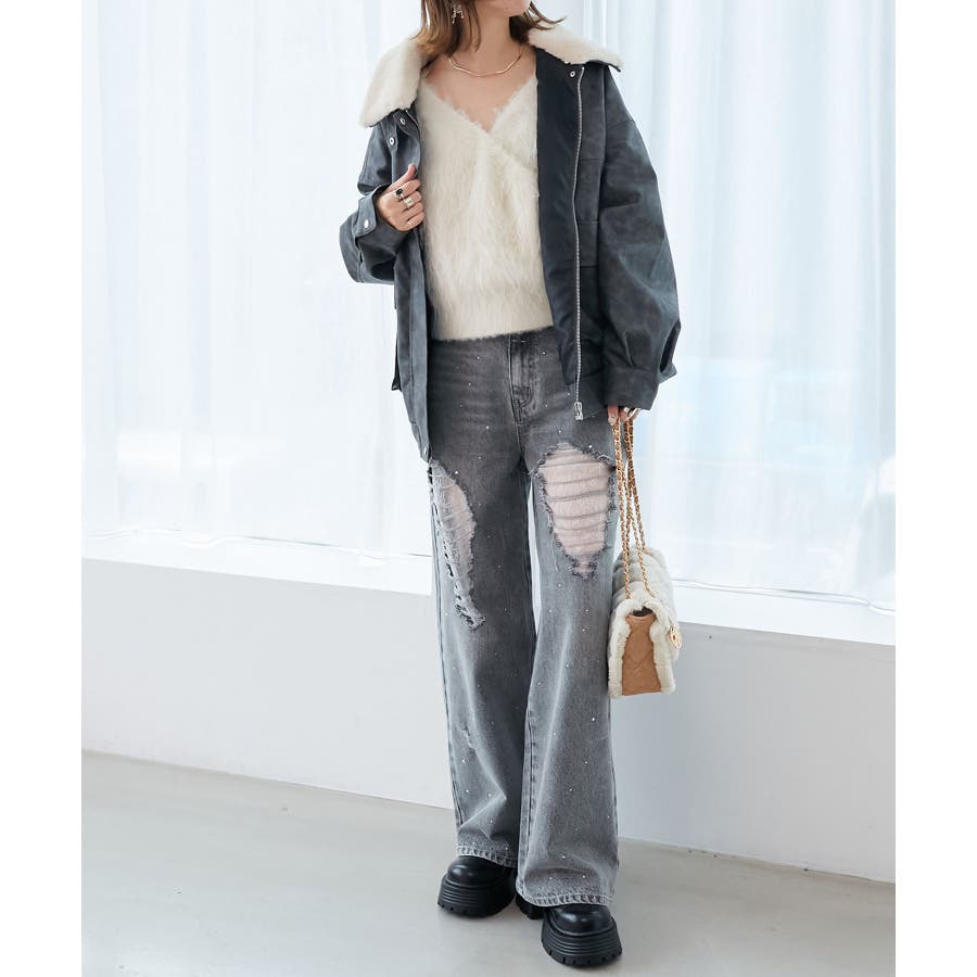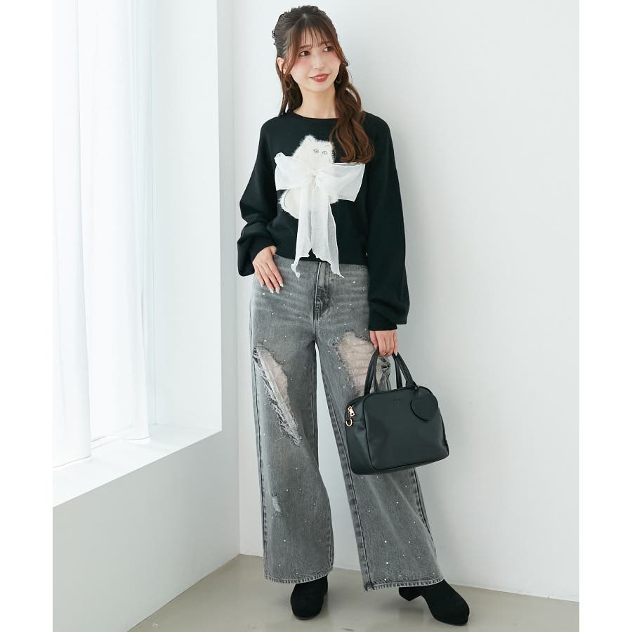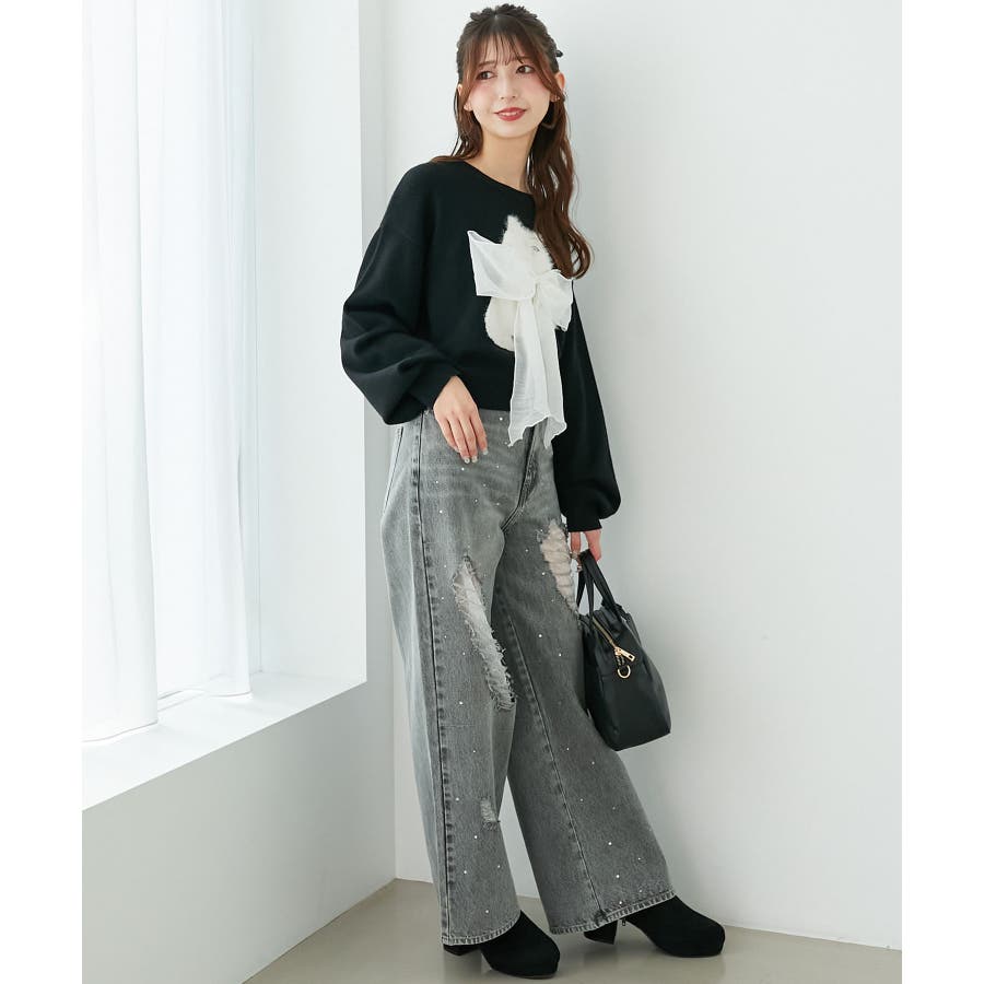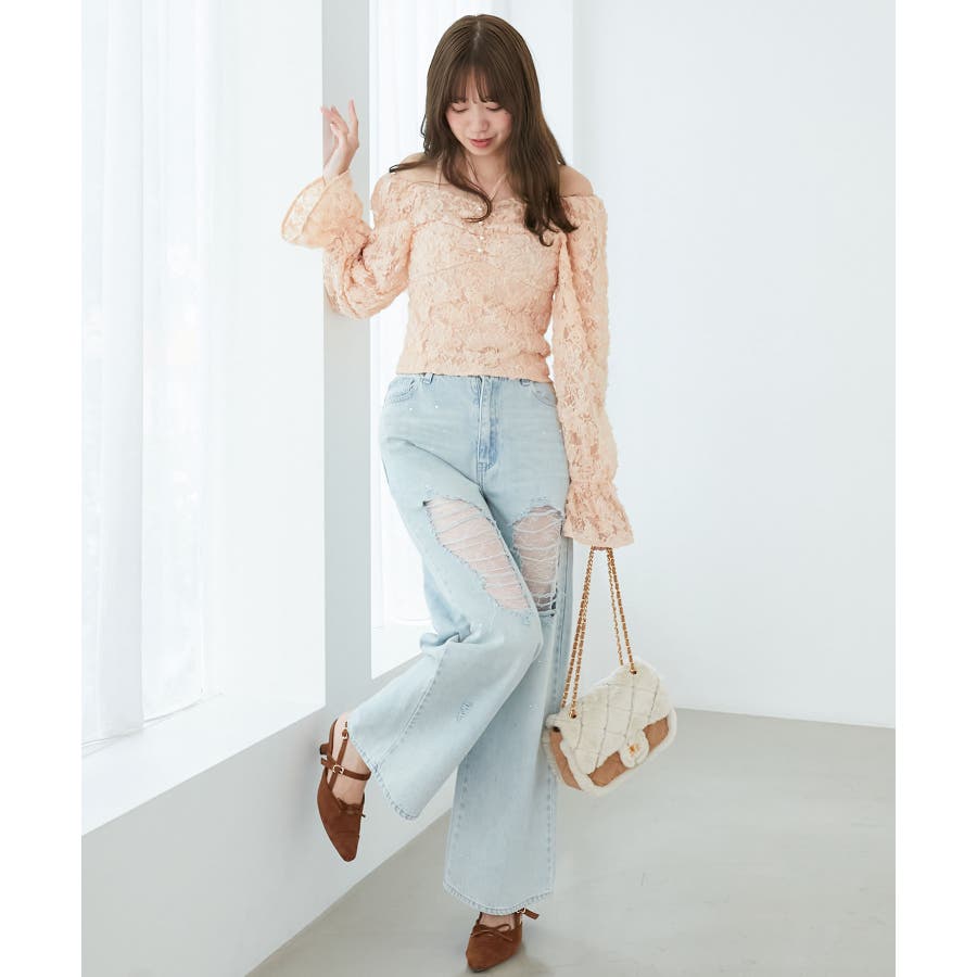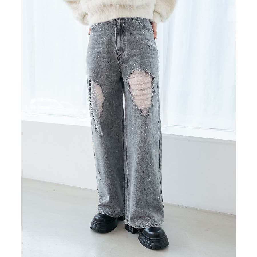 キラキラレースダメージデニム