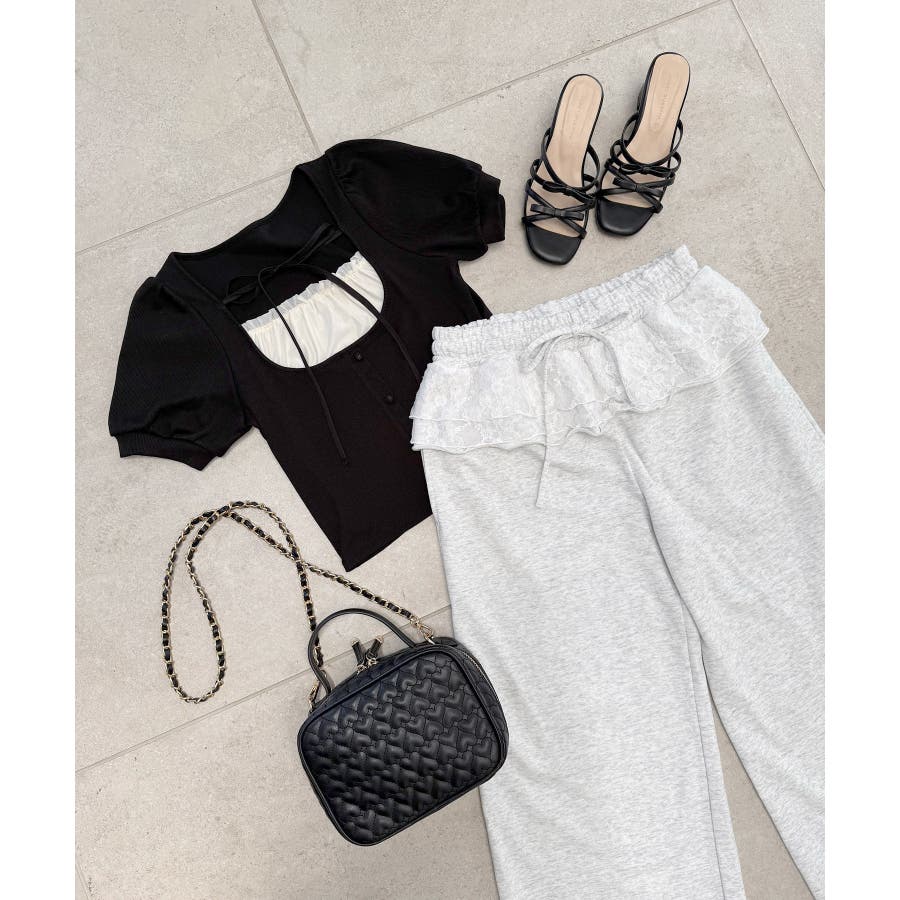 | 素材 | [オートミール]本体/綿85% ポリエステル15% レース部分/ナイロン92% ポリウレタン8% [ネイビー・グレー]本体/綿60% ポリエステル40% レース部分/ナイロン92% ポリウレタン8% |