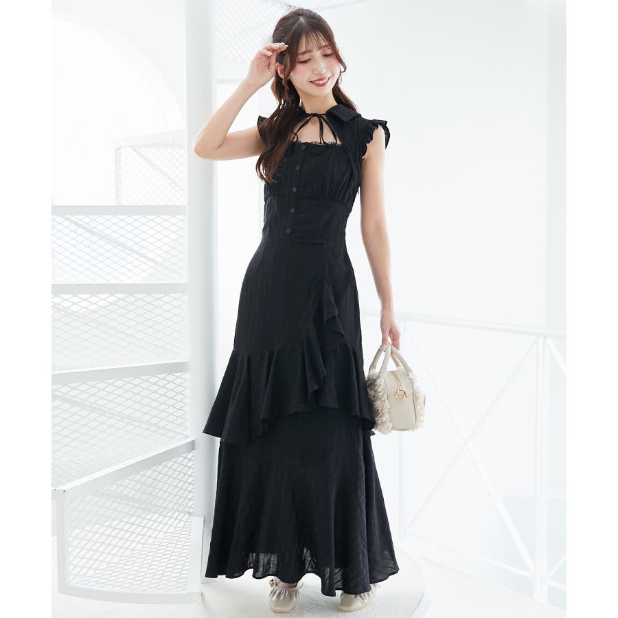 デコルテオープンノースリロングワンピ