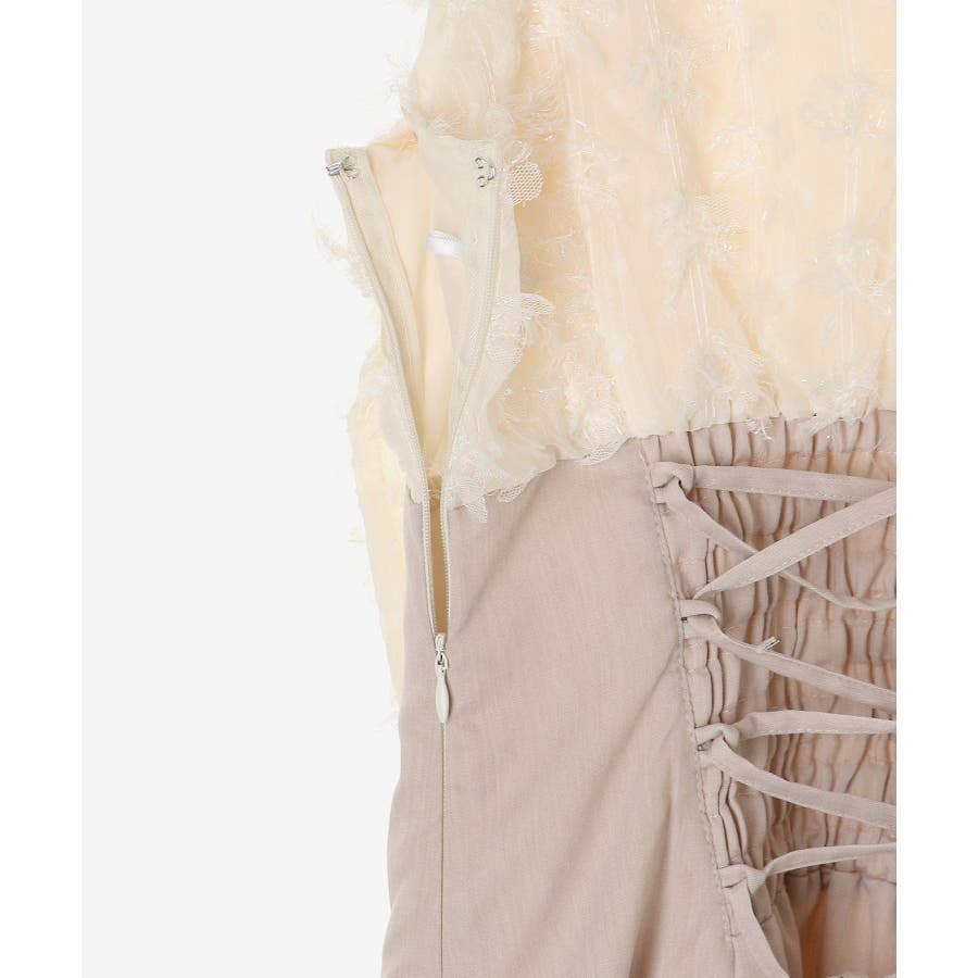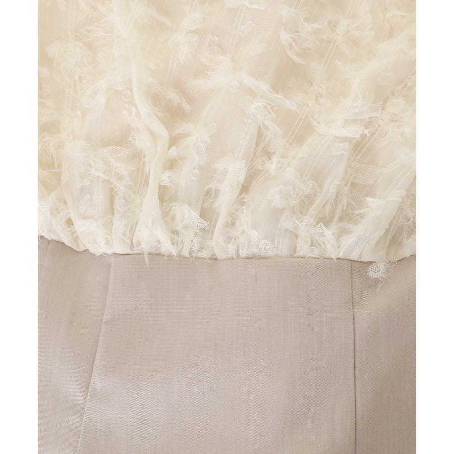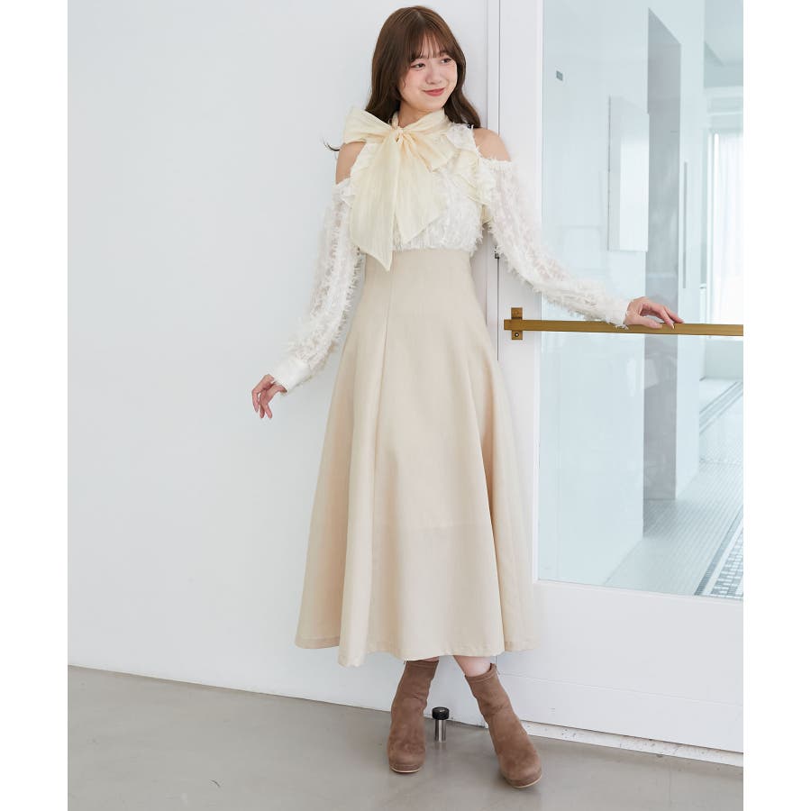 | 素材 | 【アイボリー】[上身頃]表地/ポリエステル100% 裏地/ポリエステル100% [下身頃]表地/ポリエステル95% ポリウレタン5% 裏地/ポリエステル100% 別布/ナイロン53% ポリエステル47% |