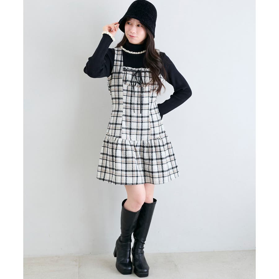 フロントリボンチェックミニジャンスカ