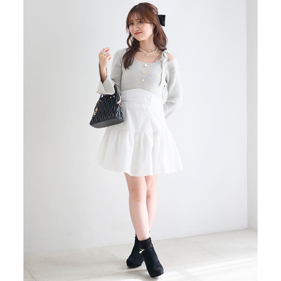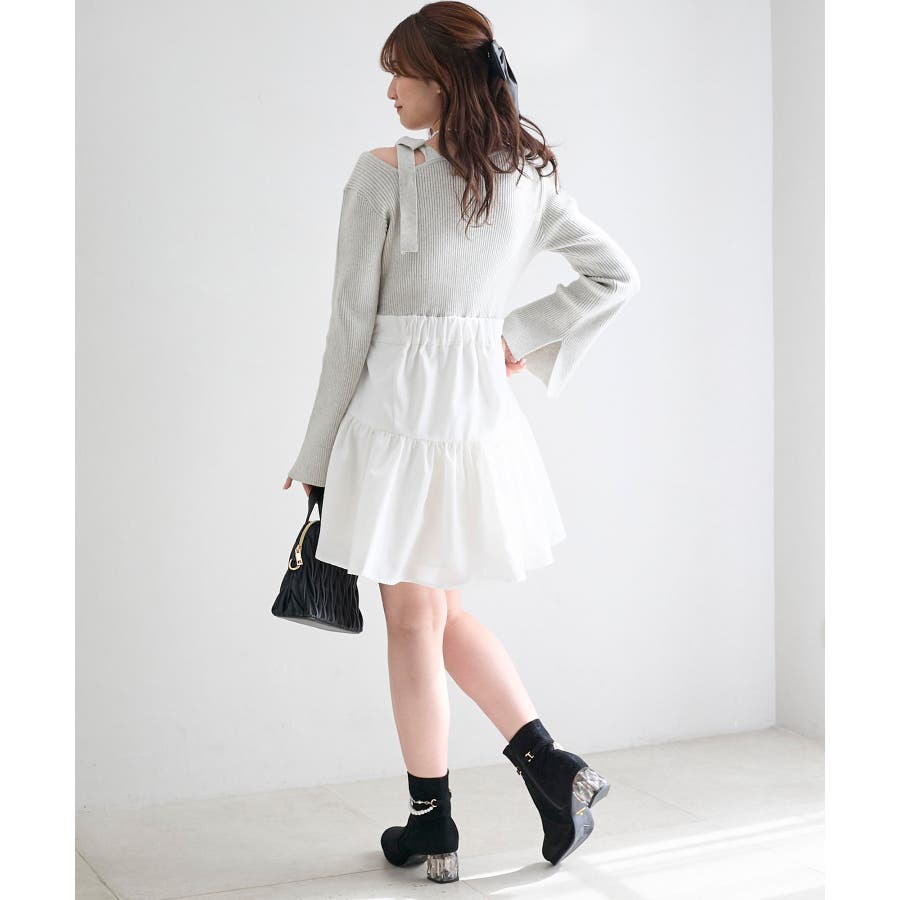 | 素材 | [グレー]本体/レーヨン50% ポリエステル28% ナイロン22% スカート部分表地/ポリエステル65% 綿35% スカート部分裏地/ポリエステル97% ポリウレタン3% [アイボリー・ブラック]本体/レーヨン50% ポリエステル28% ナイロン22% スカート部分表地/ポリエステル100% スカート部分裏地/ポリエステル100% |