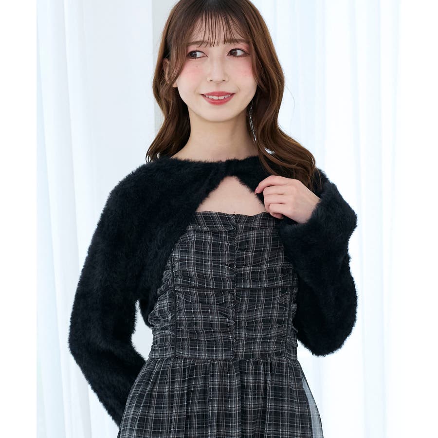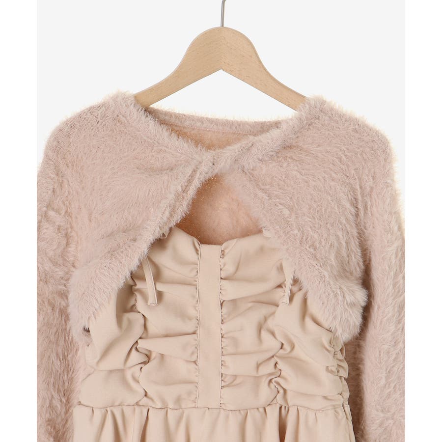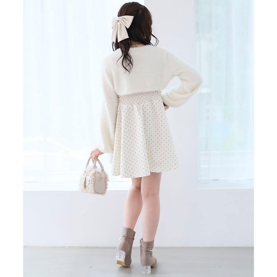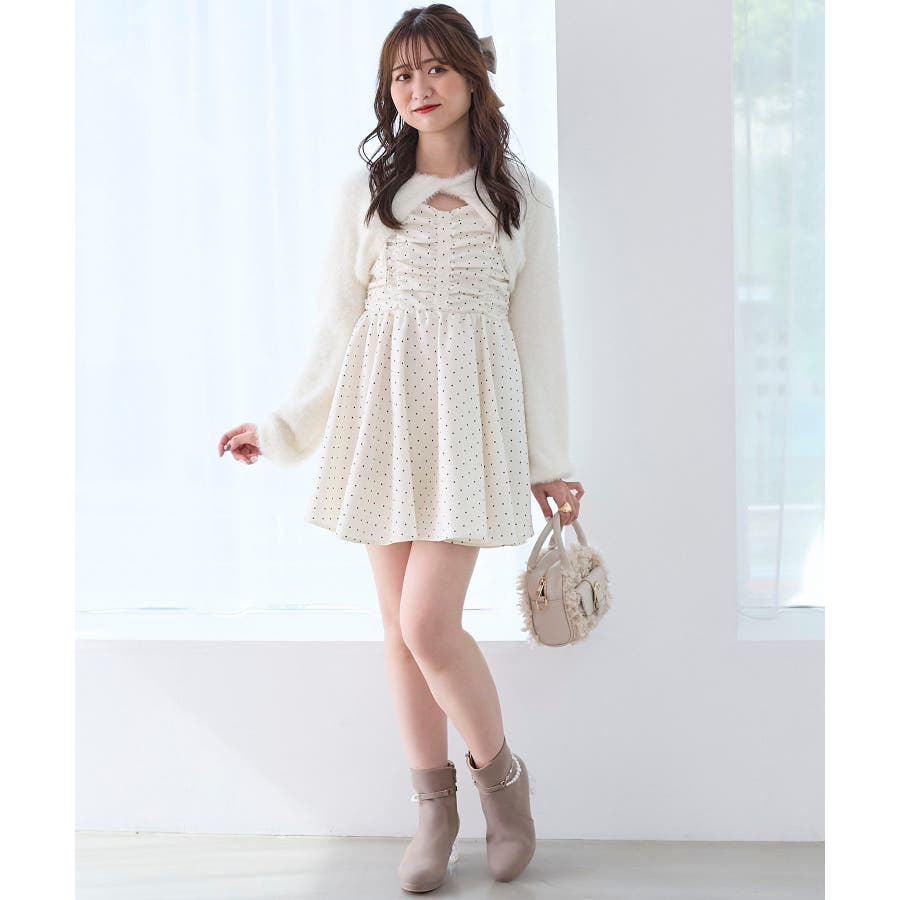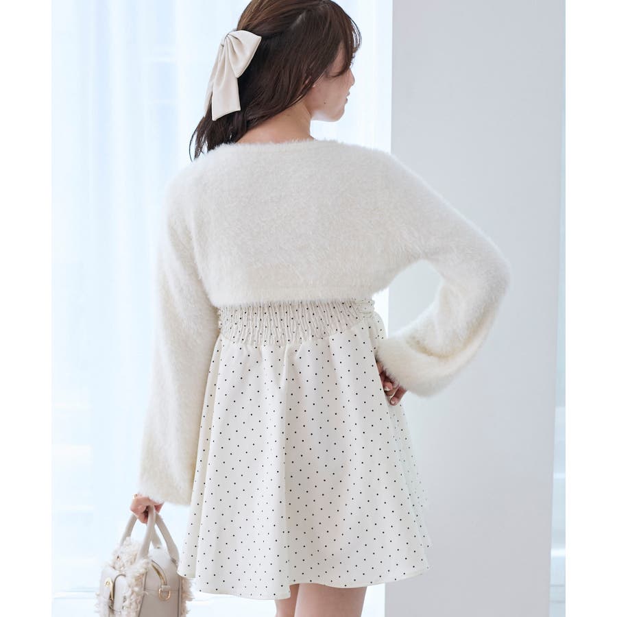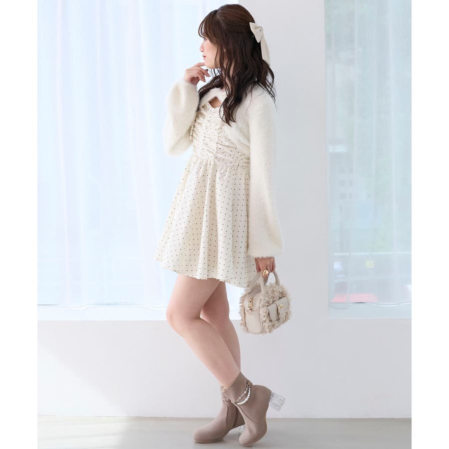 M: バスト76cm/ウエスト68cm/ヒップfree/着丈(肩紐調節可)62cm/[ニット]バスト94cm/[ニット]着丈24cm/[ニット]肩幅34cm/[ニット]袖丈52cm/[ニット]袖口8.5cm