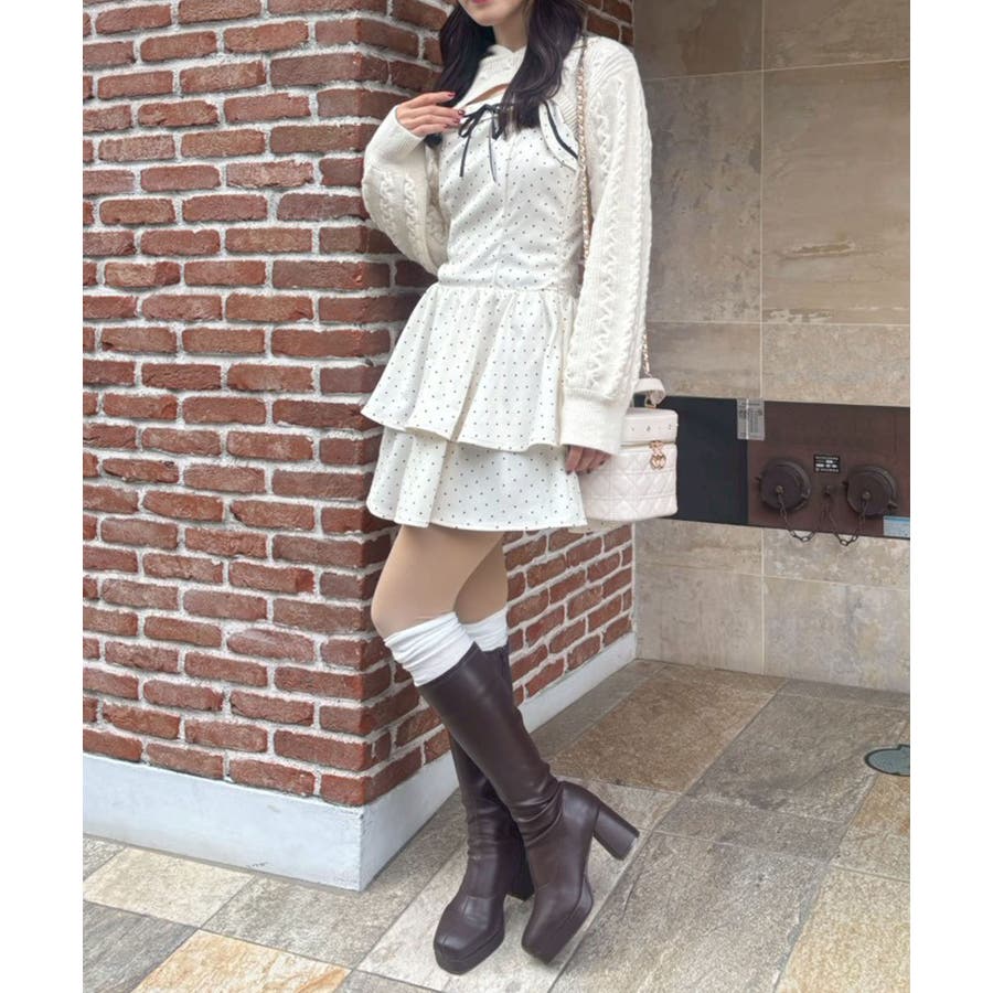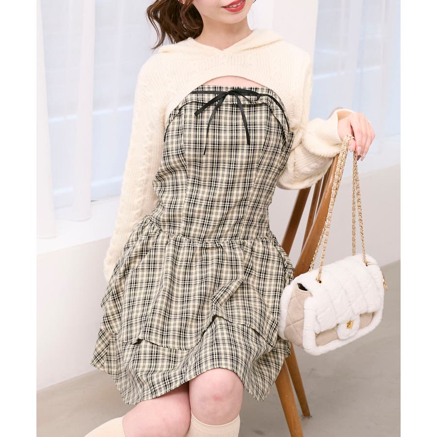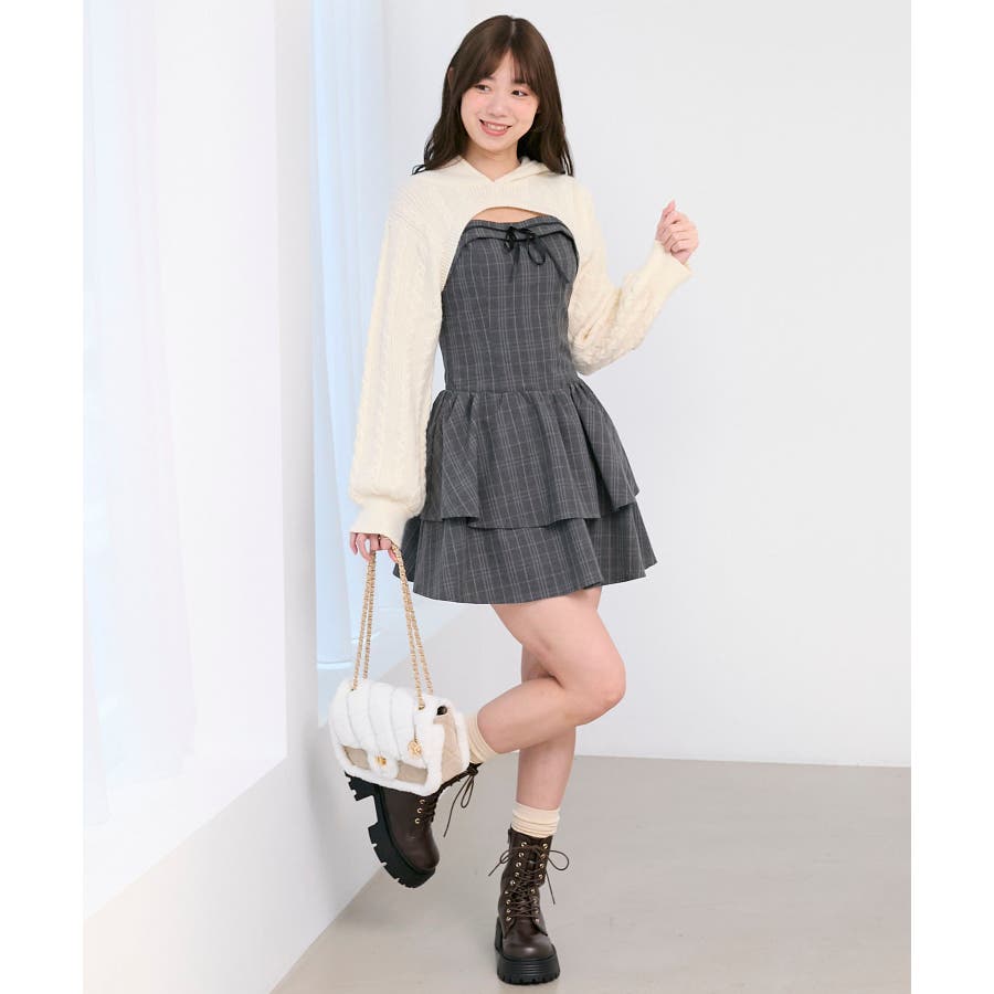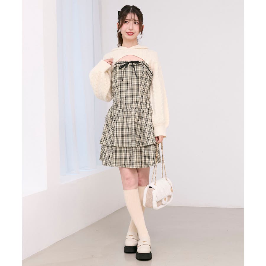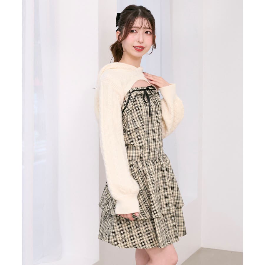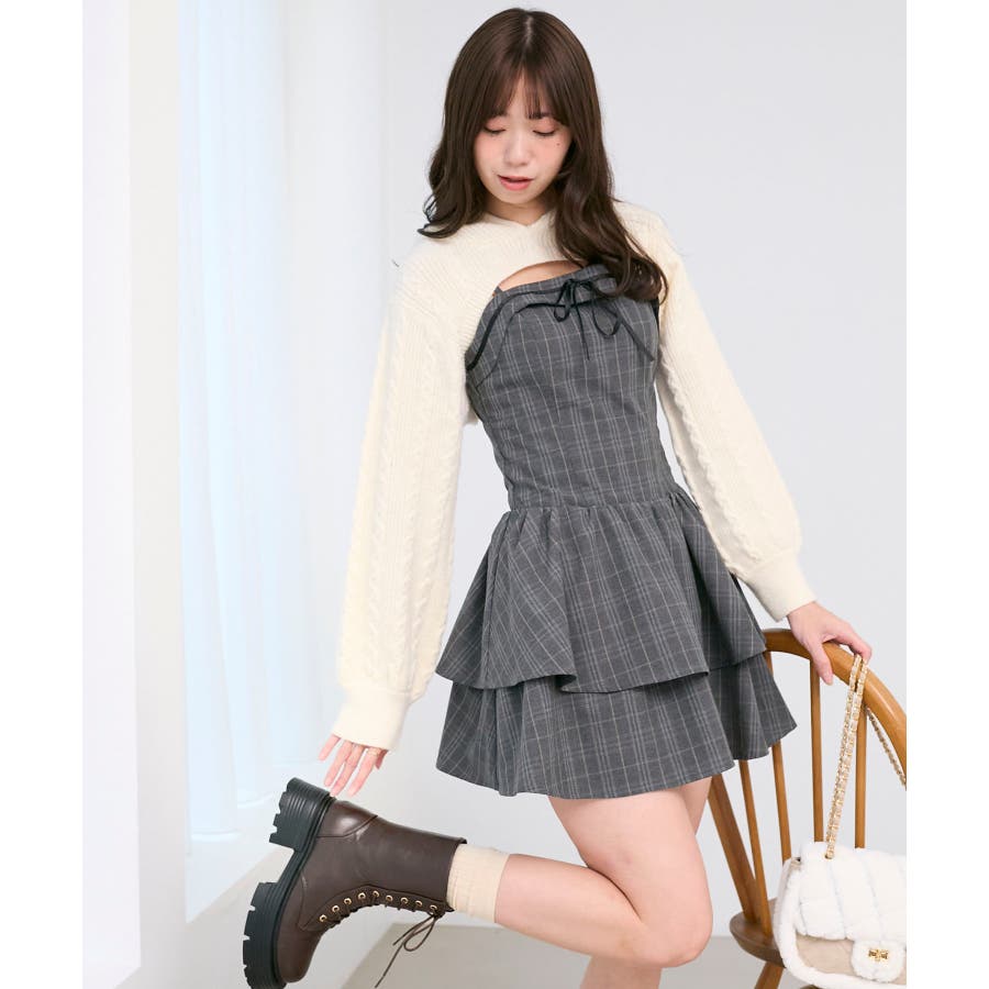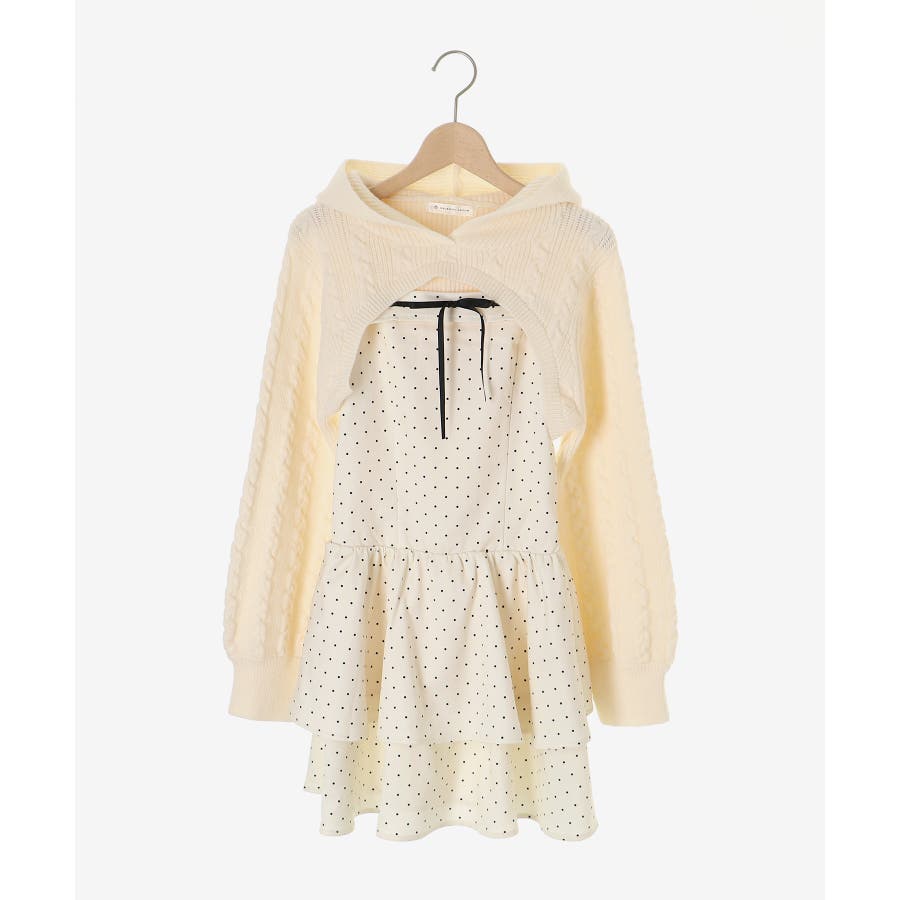 | 素材 | 【ボレロ】アクリル47% ポリエステル30% ナイロン23% 【ワンピース】[ベージュ柄]表地/綿100% 裏地/ポリエステル100% 別布/ポリエステル100% [アイボリー柄]表地/ポリエステル100% 裏地/ポリエステル100% 別布/ポリエステル100% [グレー柄]表地/ポリエステル80% レーヨン15% ポリウレタン5% 裏地/ポリエステル100% 別布/ポリエステル100% |