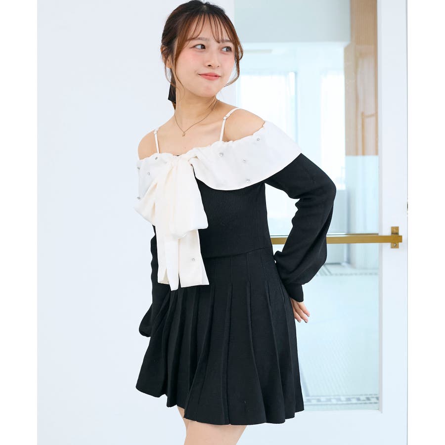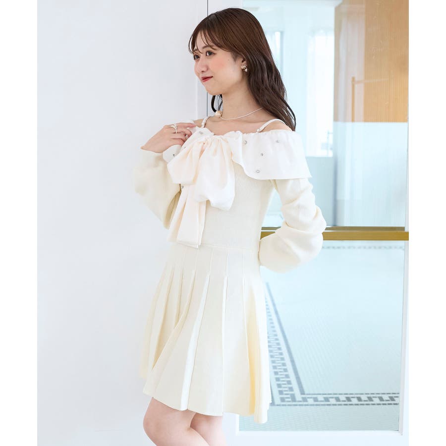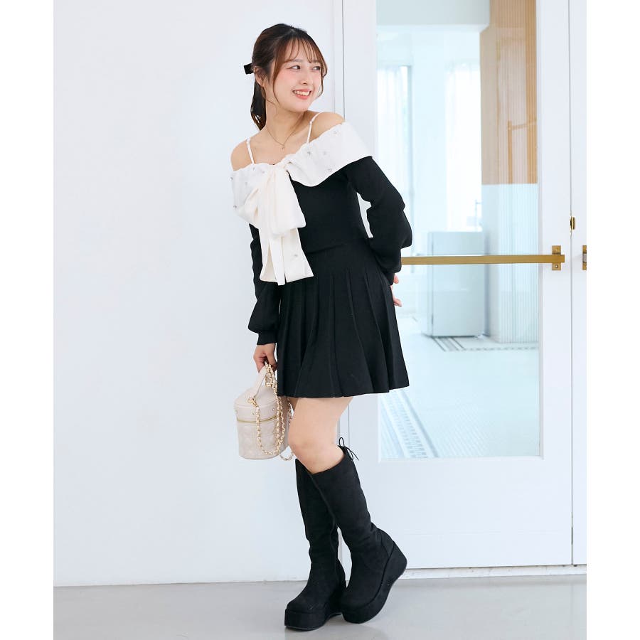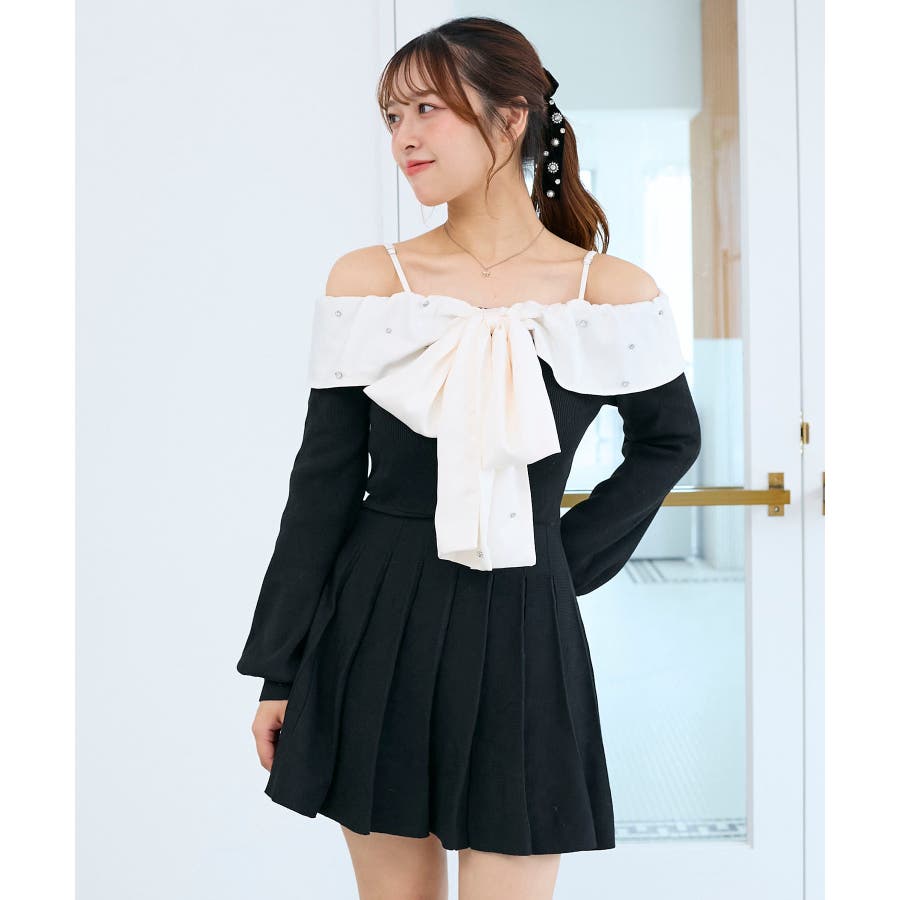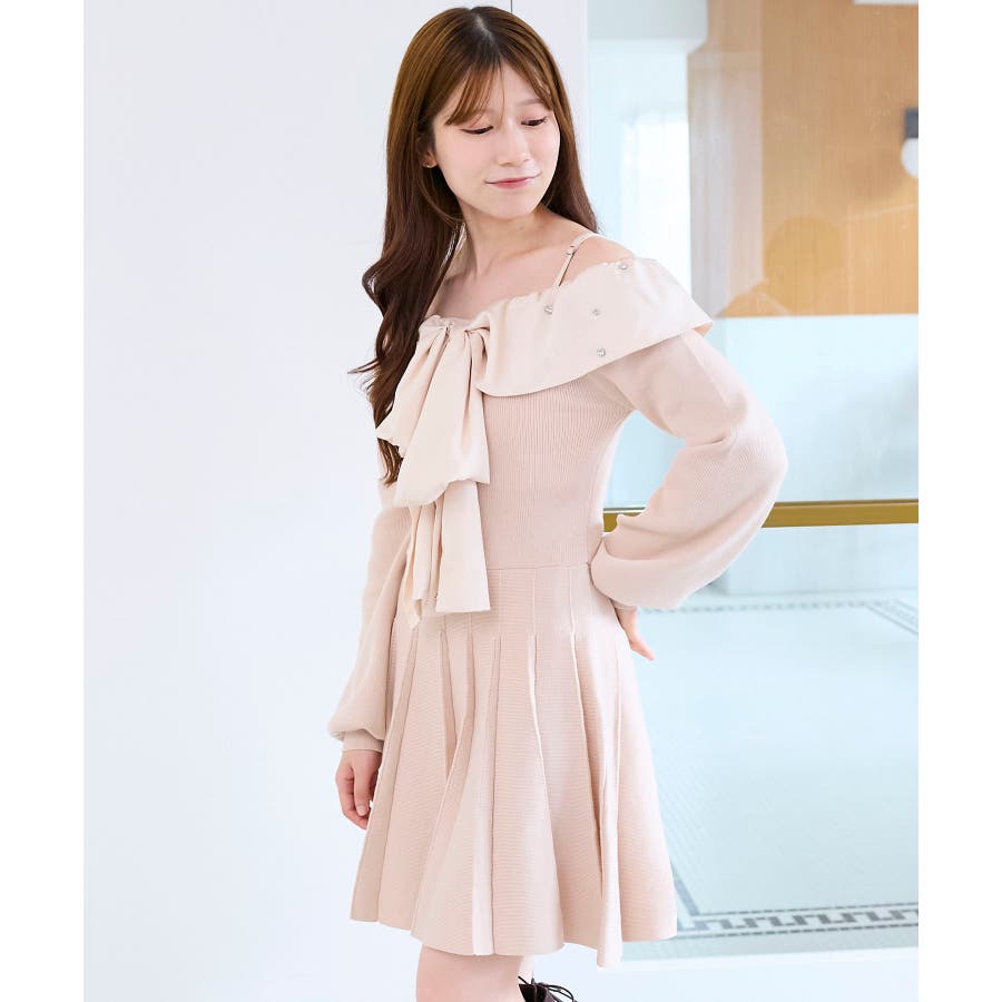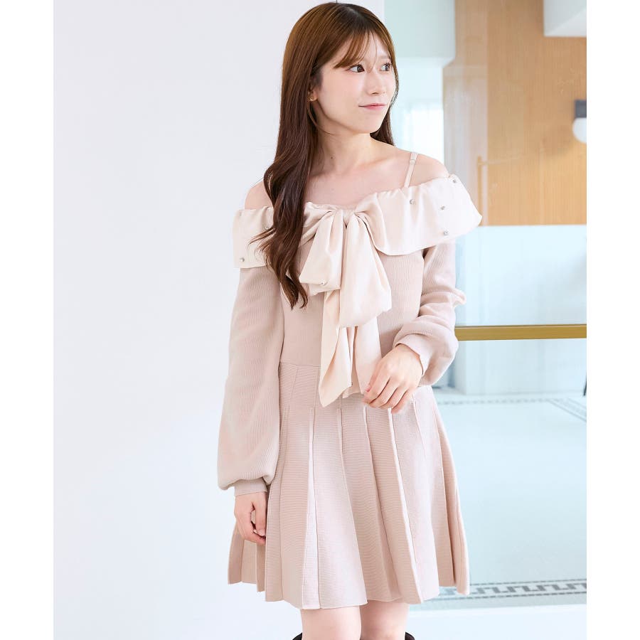 フロントビッグリボンニットミニワンピ