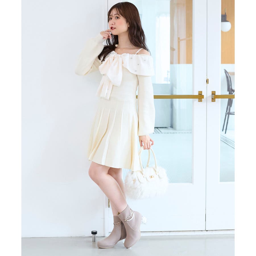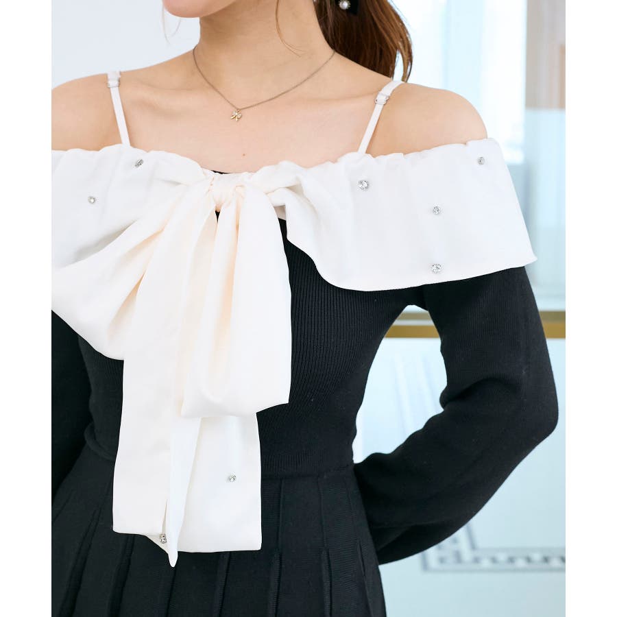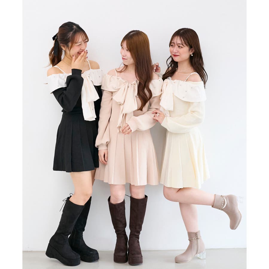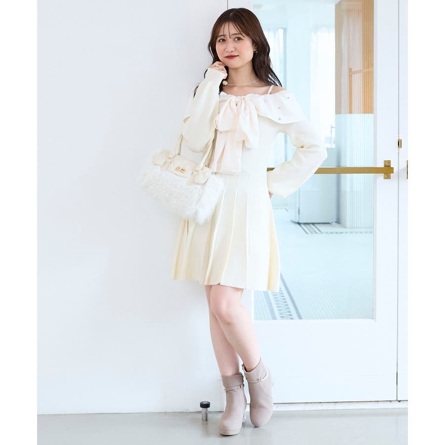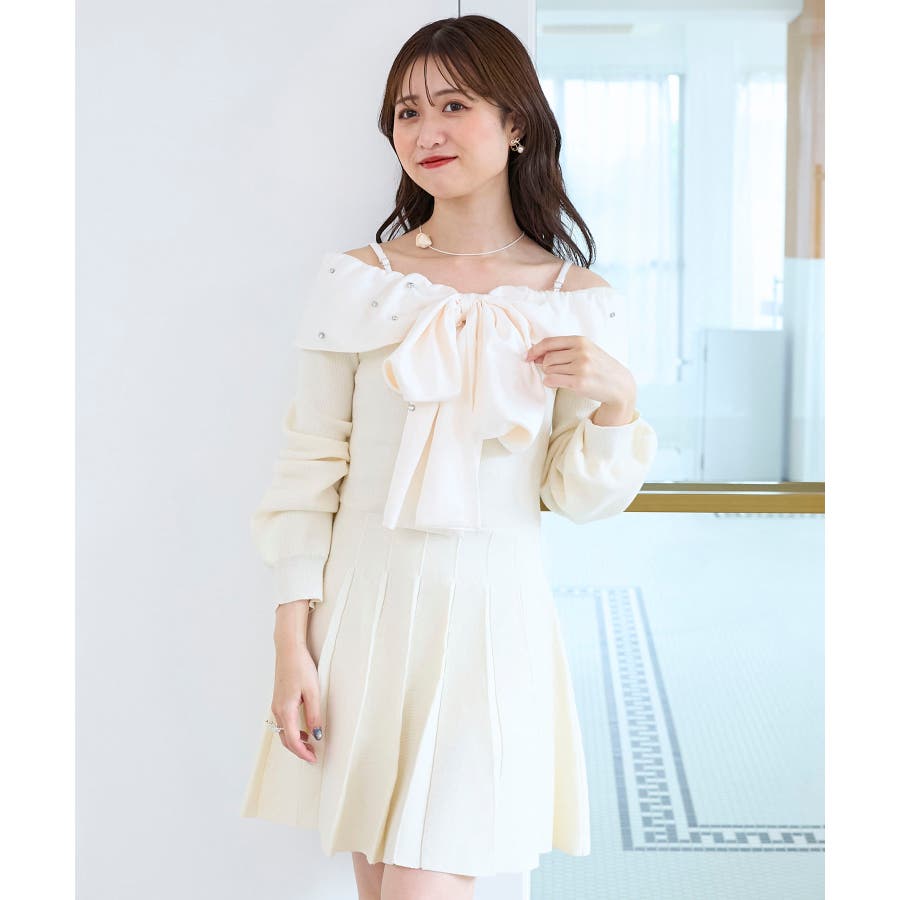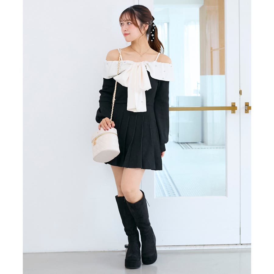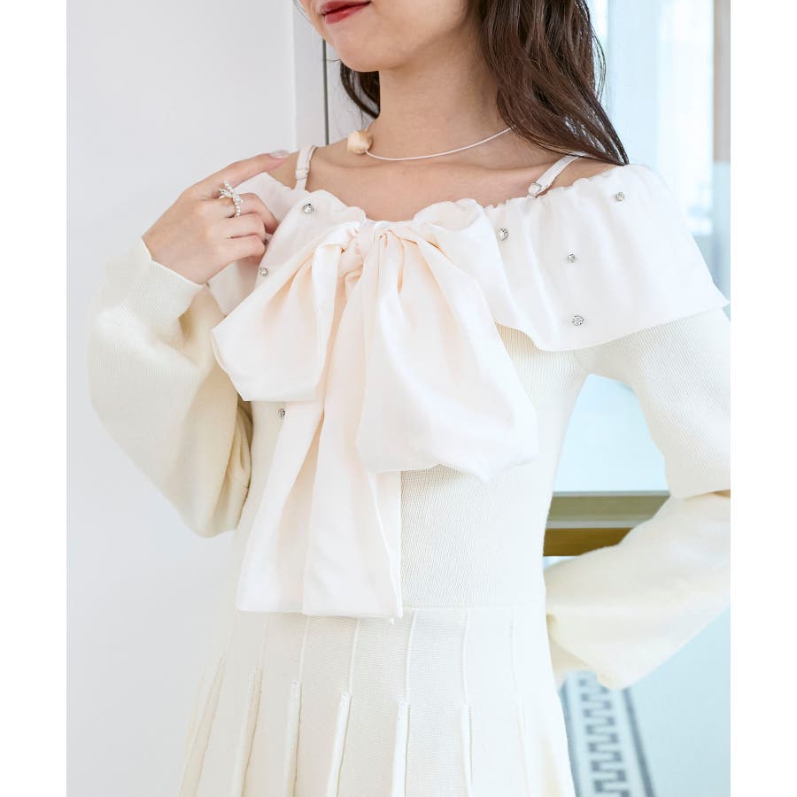 フロントビッグリボンニットミニワンピ