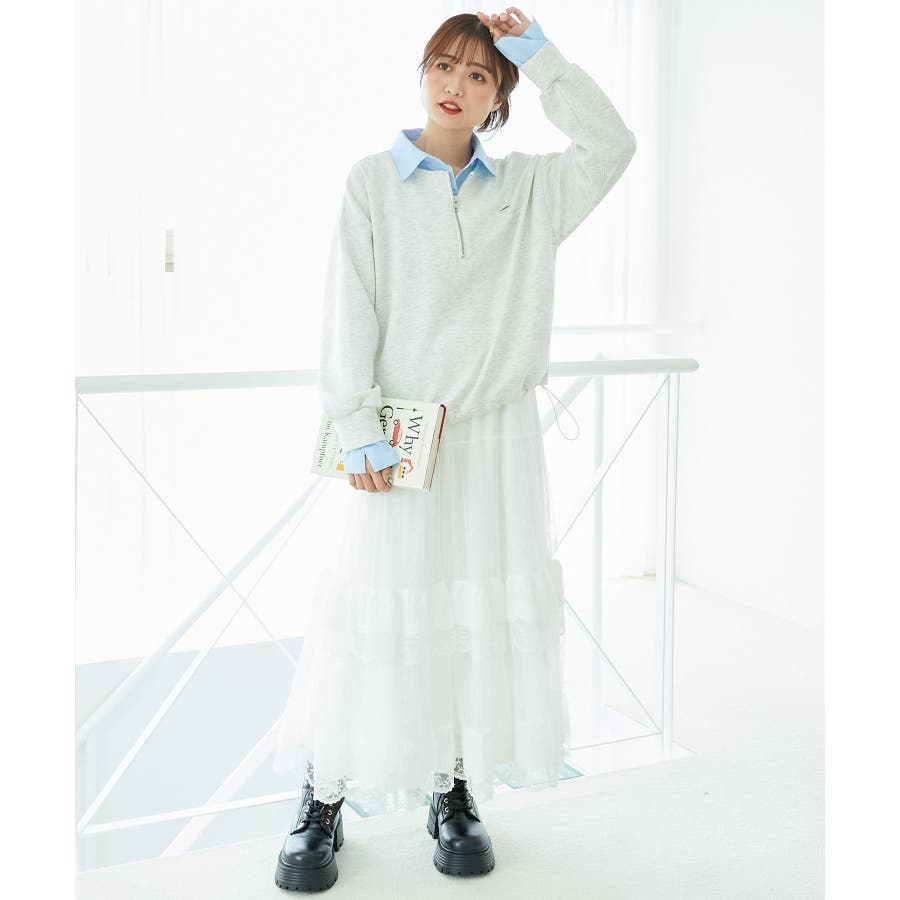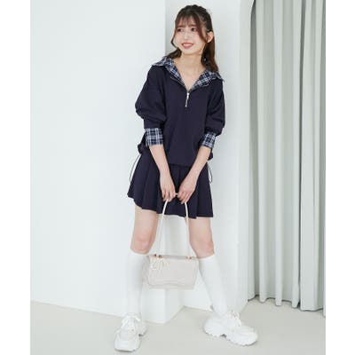 M: バスト108cm/着丈53cm/肩幅59cm/袖丈54cm/袖口11cm/股上32cm/股下3cm/パンツ裾周り62cm/[スカート]ウエスト64cm/[スカート]ヒップ104cm/[スカート]スカート総丈35cm