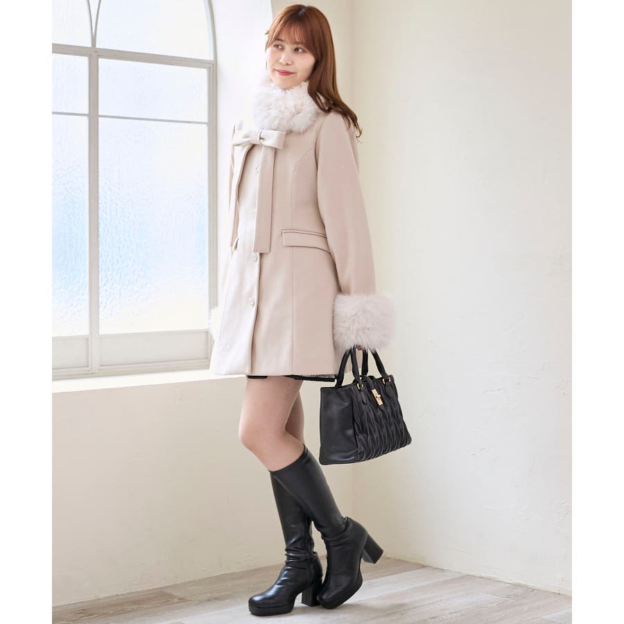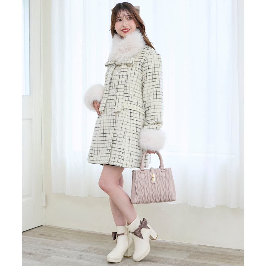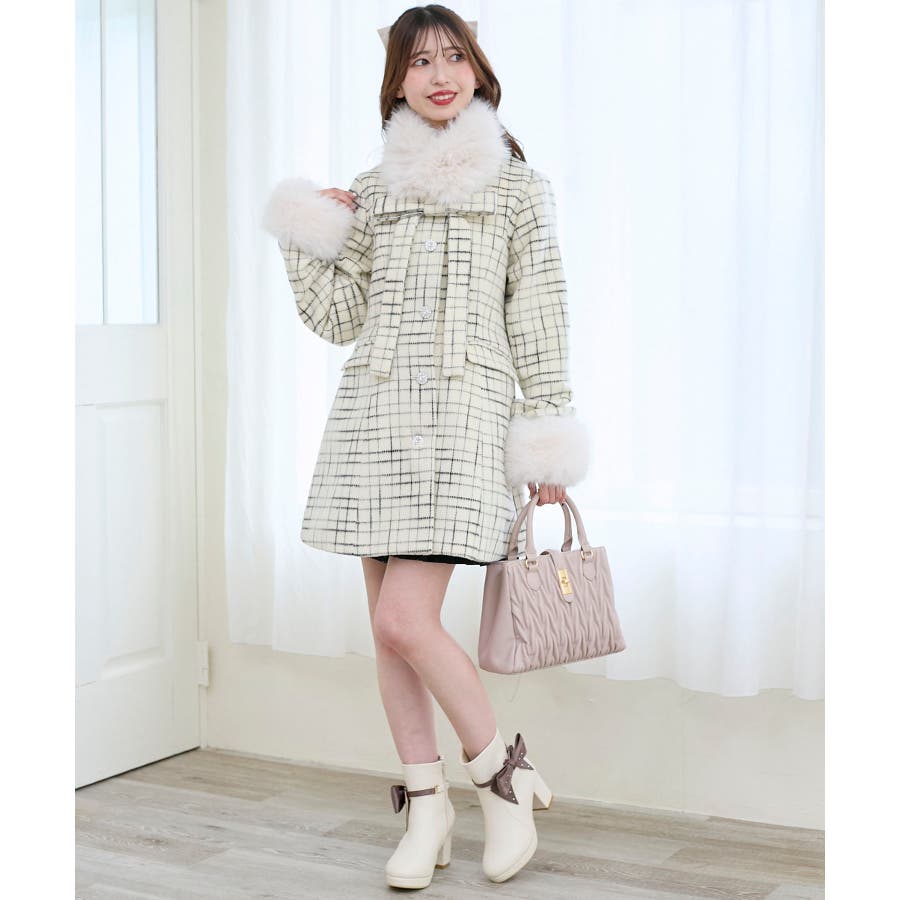 | 素材 | [ピンクベージュ・アイボリー柄]表地:ポリエステル100% 裏地:ポリエステル100% ファー:基布/ポリエステル100% パイル/ポリエステル100% [ブラック柄]表地:ポリエステル47% 綿24% レーヨン21% ナイロン6% アクリル2% 裏地:ポリエステル100% ファー:基布/ポリエステル100% パイル/ポリエステル100% |