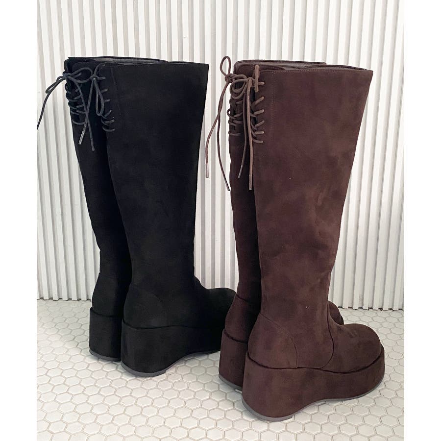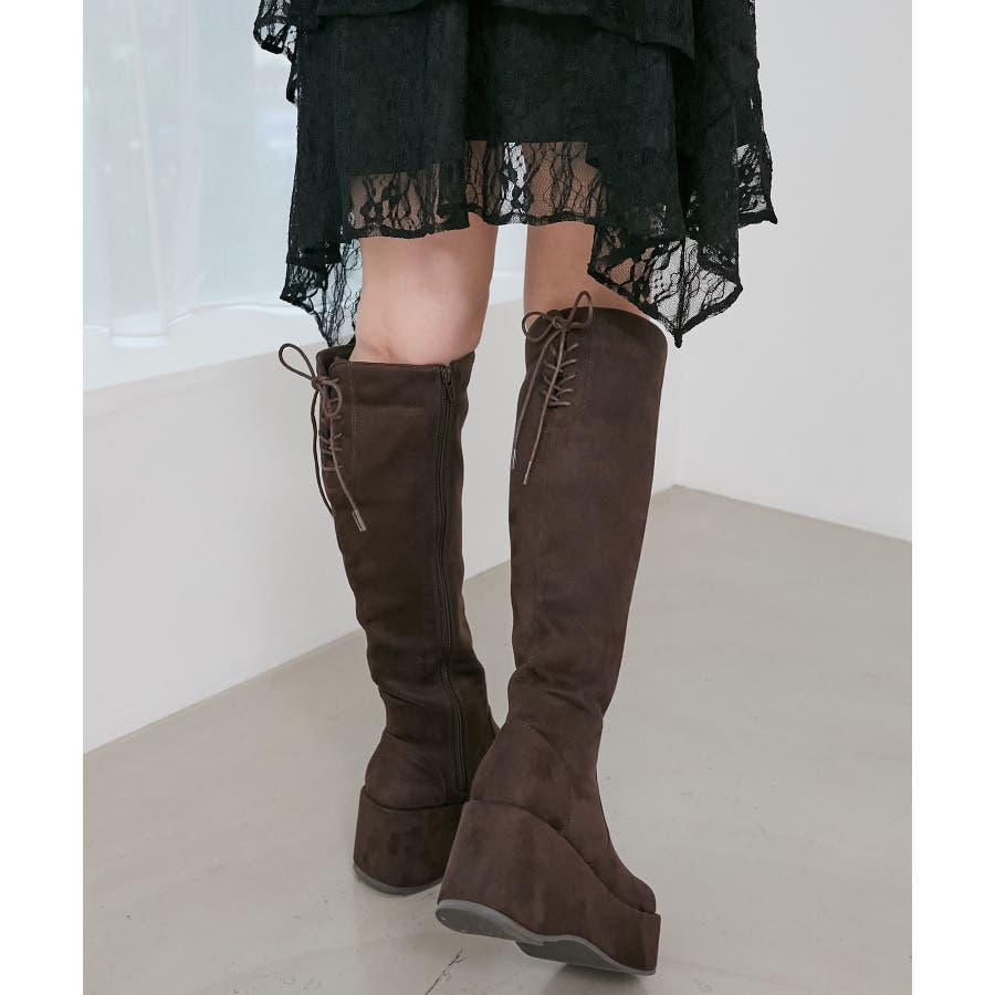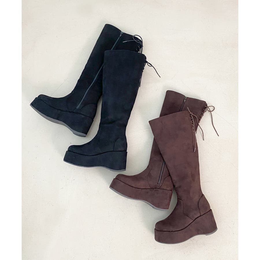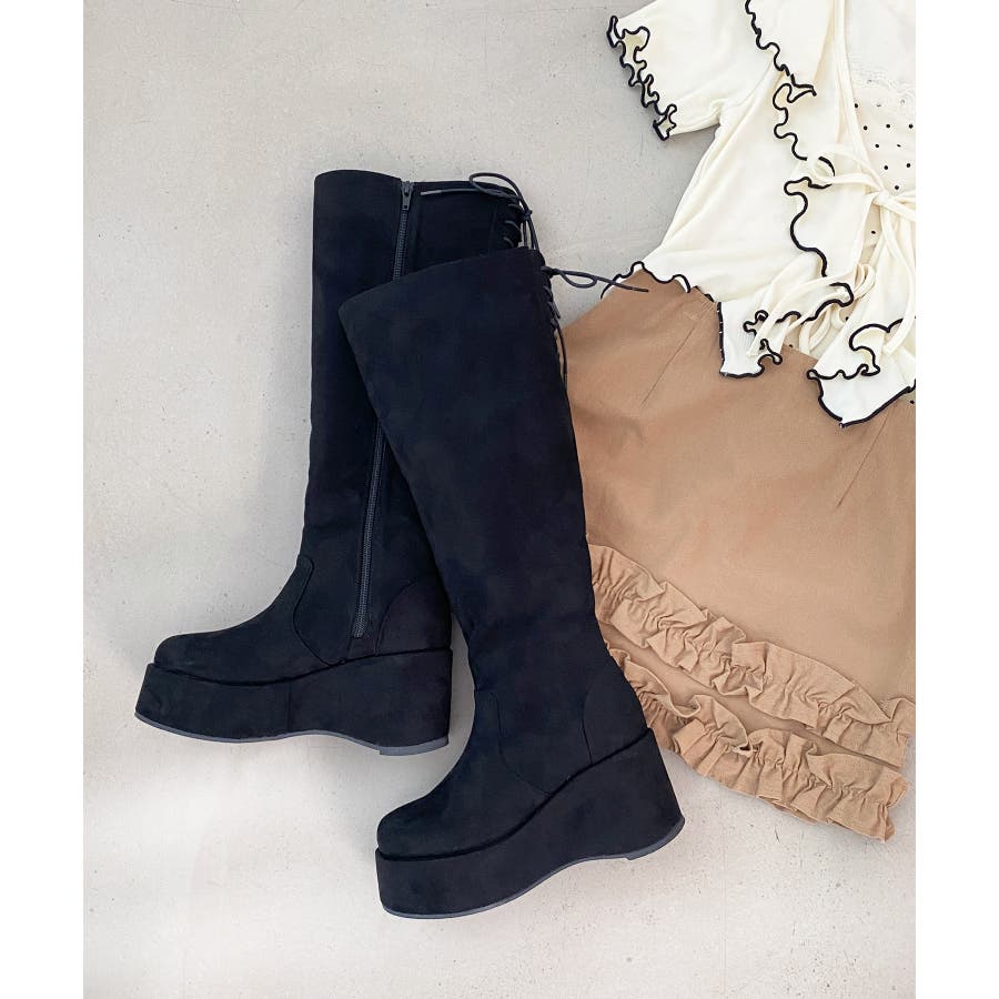 バックリボン厚底ロングブーツ