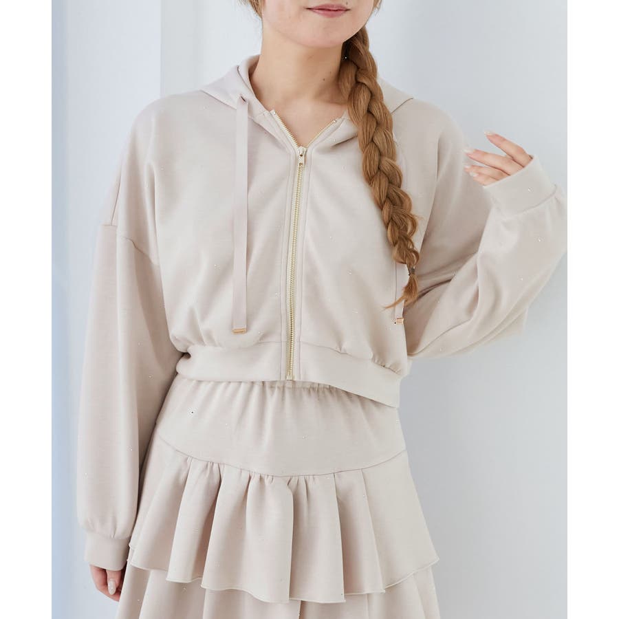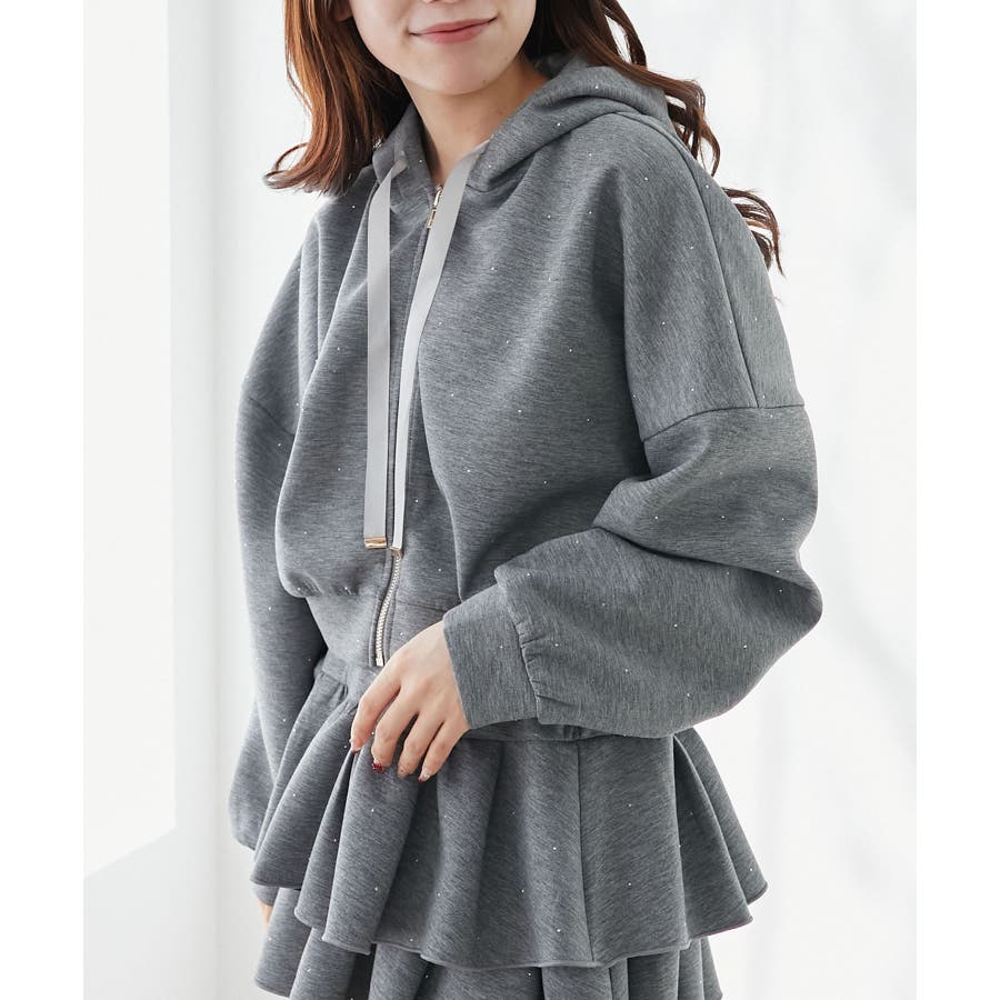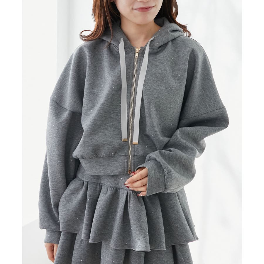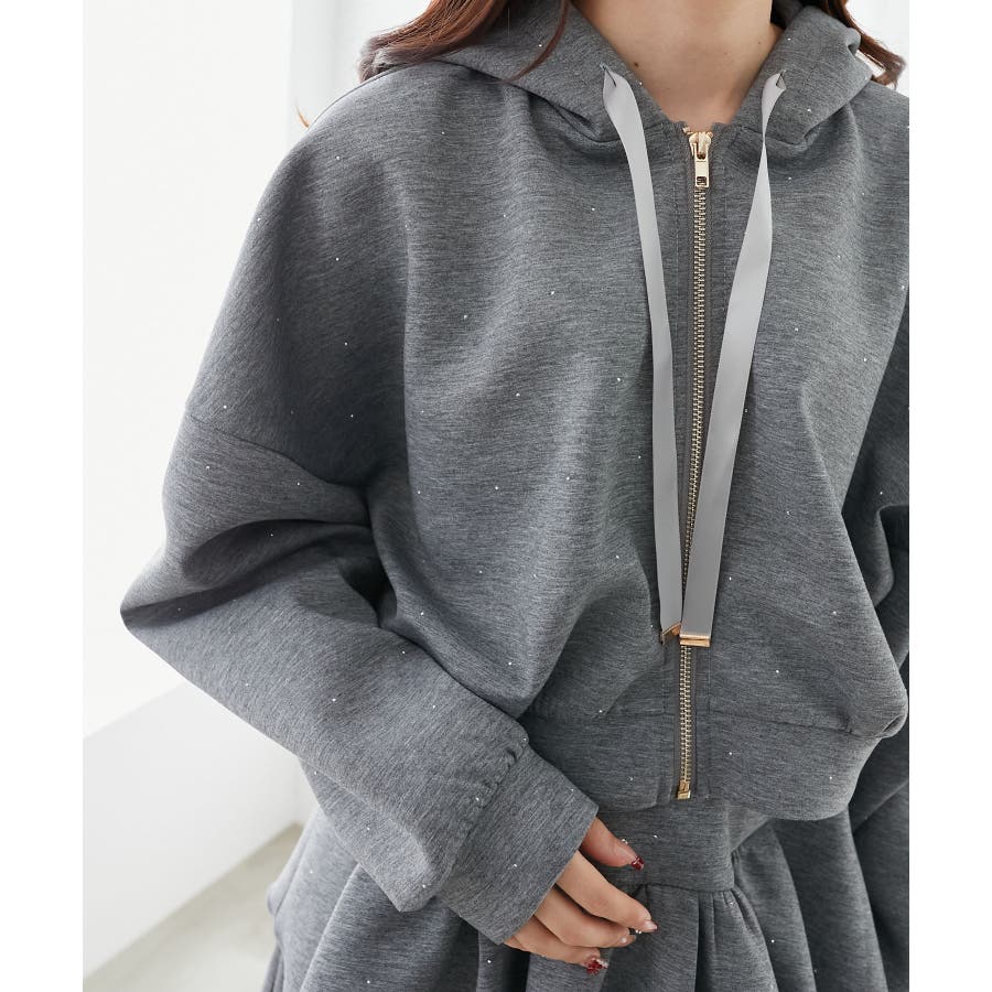 ドロストリボンラインストーンパーカー