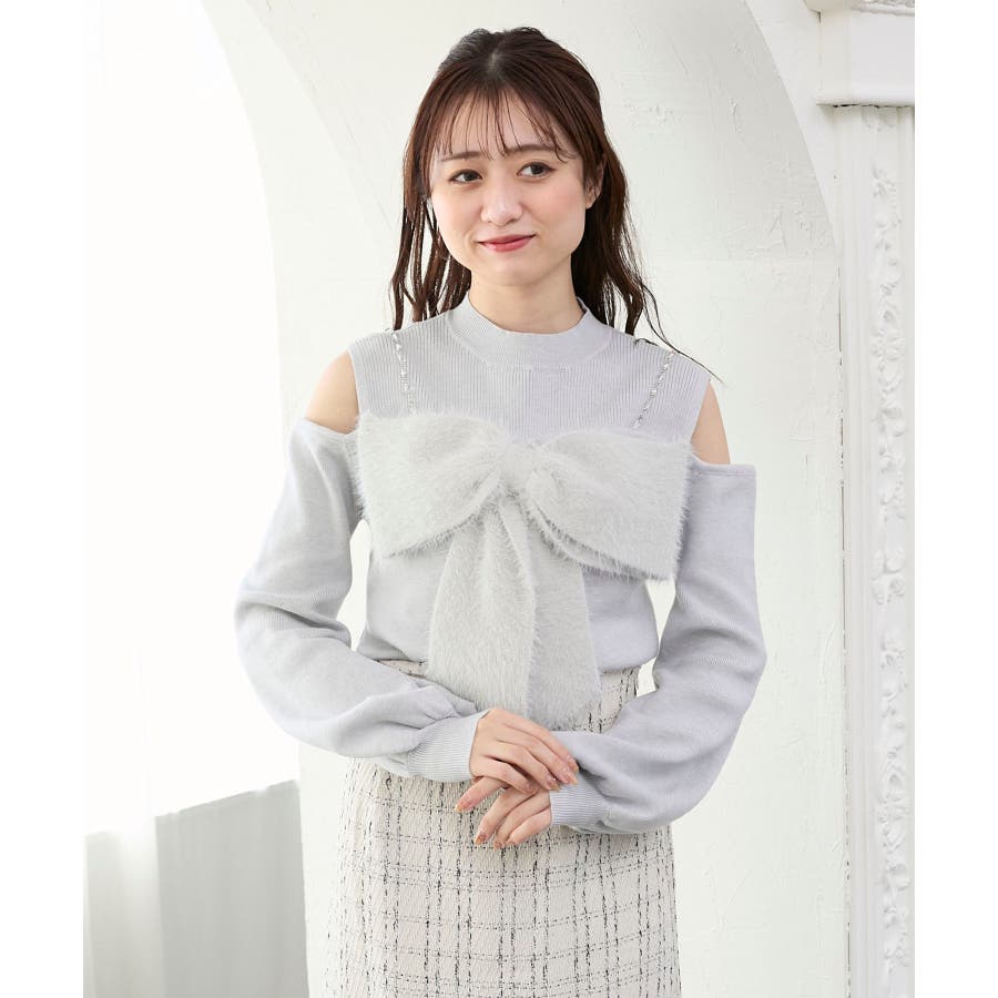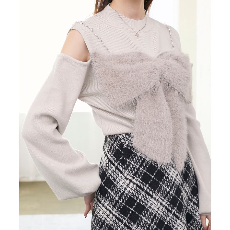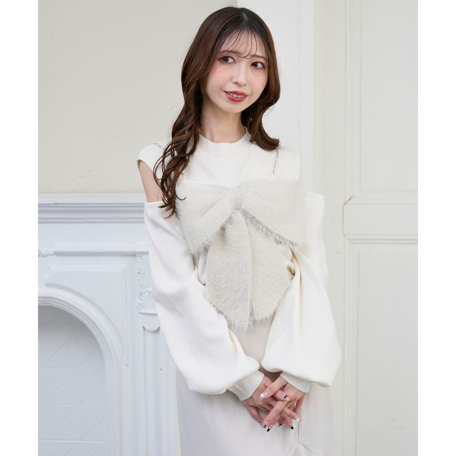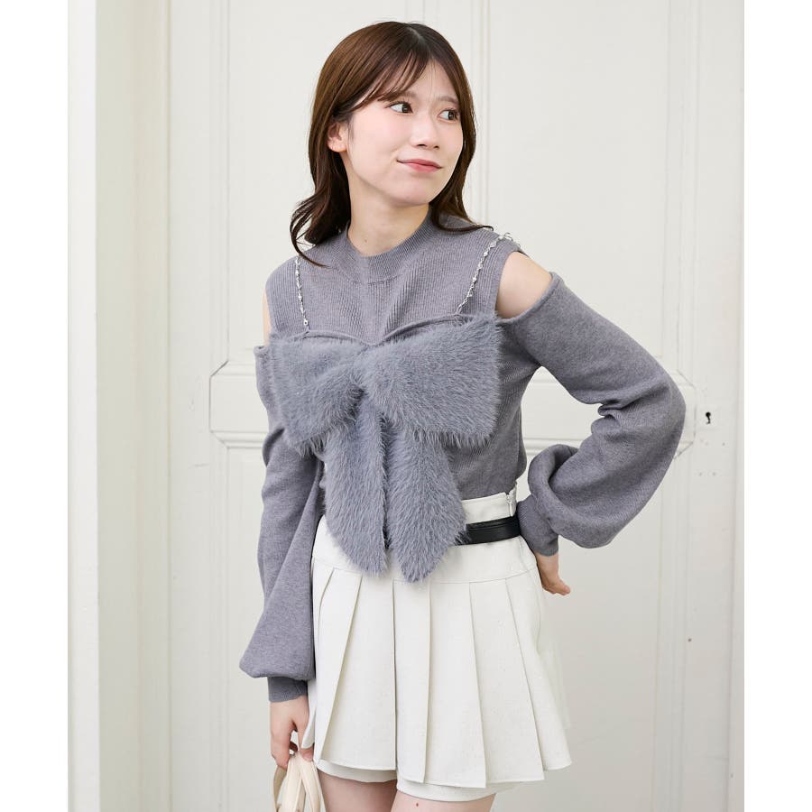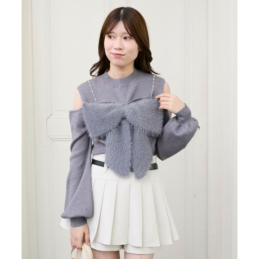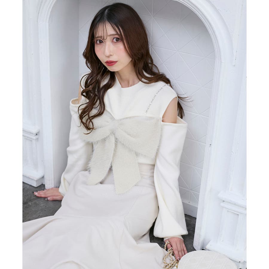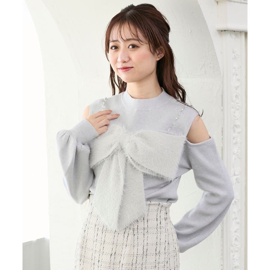 ビッグリボンチェーン付きニット