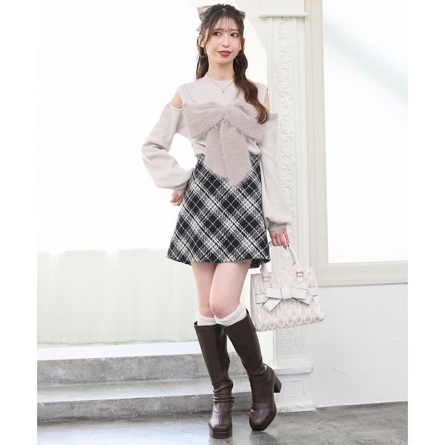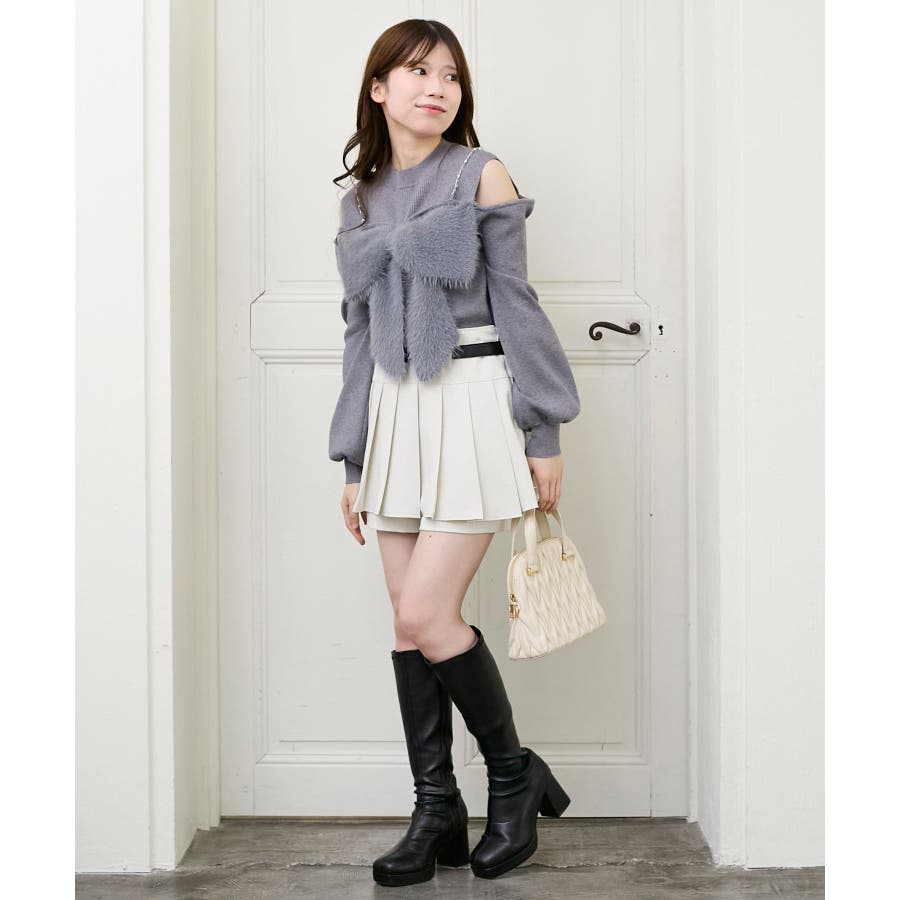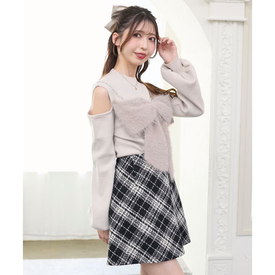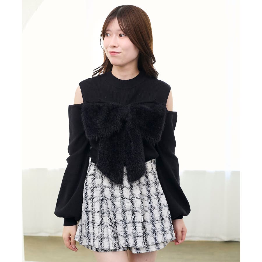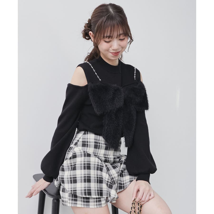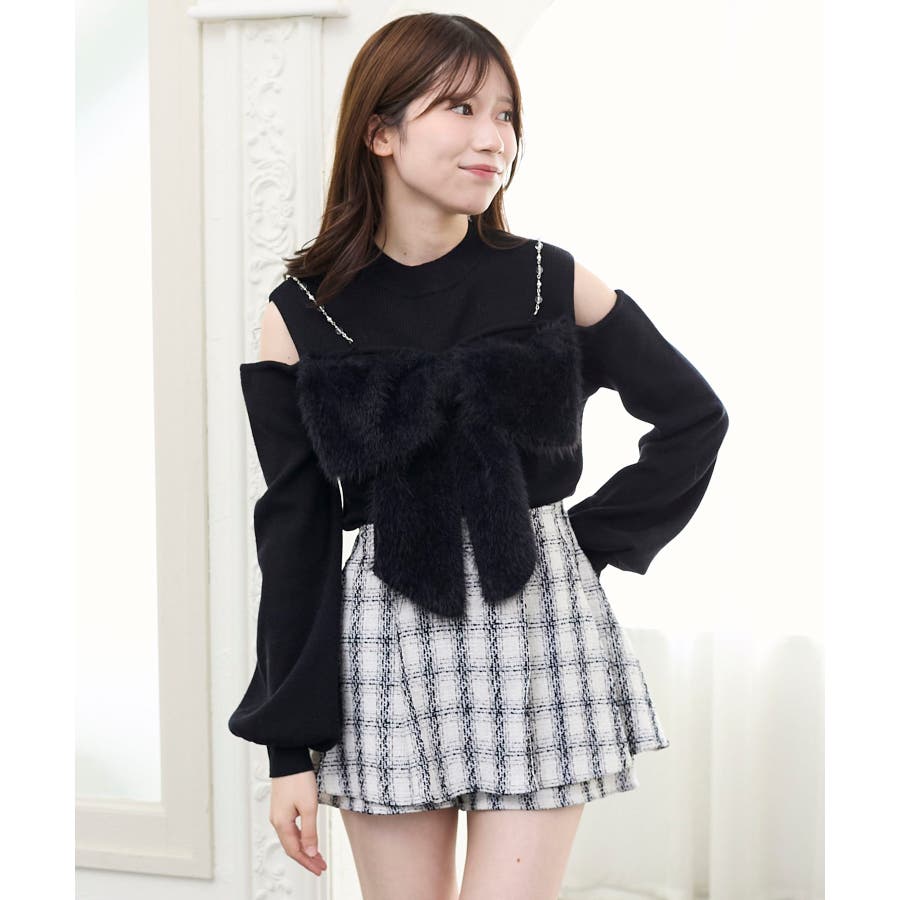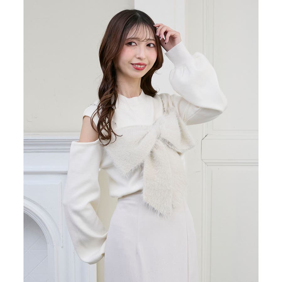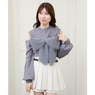 ビッグリボンチェーン付きニット
