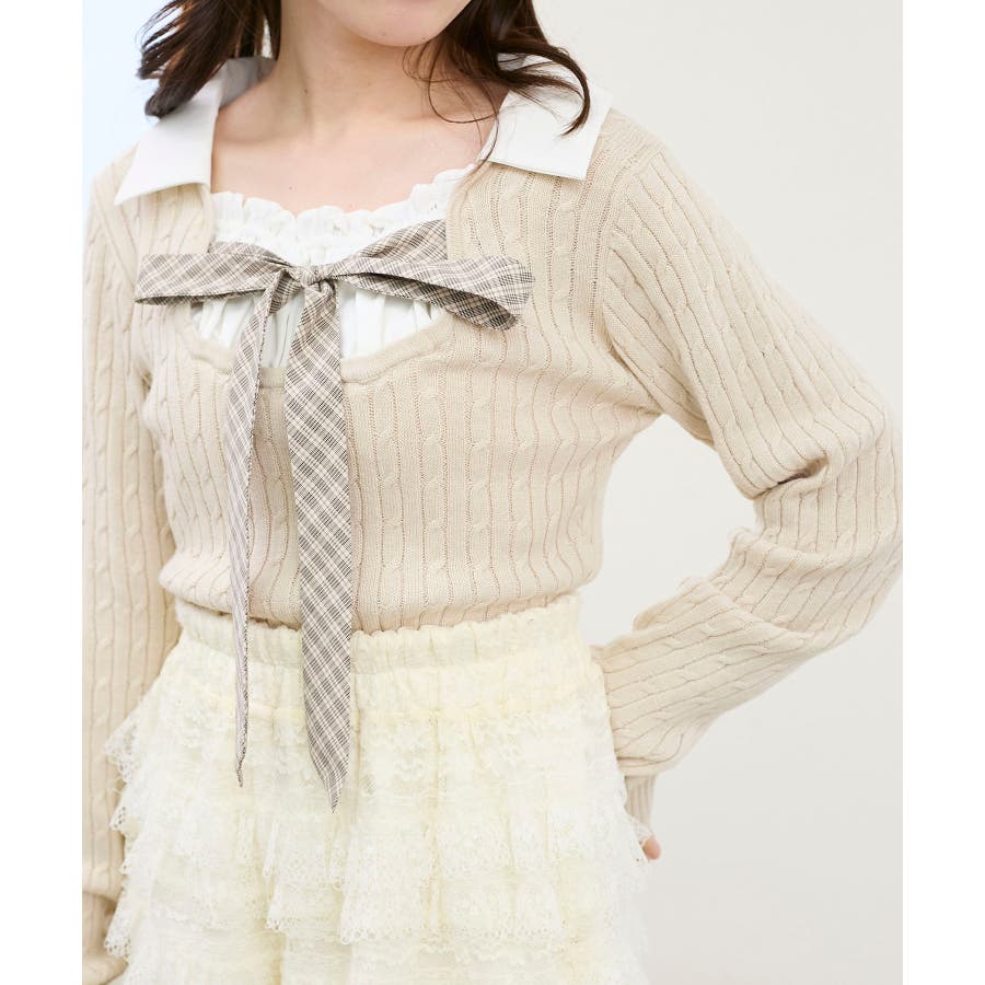 | 素材 | [ベージュ]ニット/アクリル53% 綿47% 別布/ポリエステル100% リボン/綿62% ポリエステル38% [グレー]ニット/アクリル53% 綿/47% 別布/ポリエステル100% リボン/ポリエステル100% [ブラック]ニット/アクリル53% 綿47% 別布/ポリエステル100% リボン/ポリエステル80% レーヨン17% ポリウレタン3% |