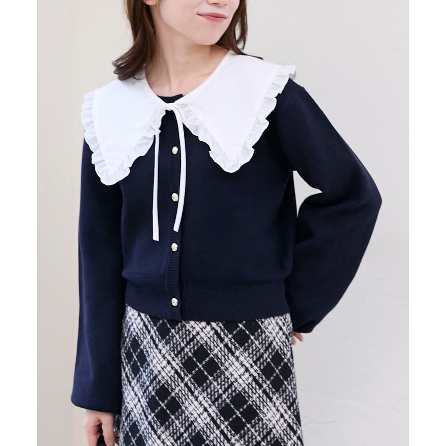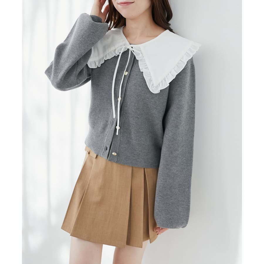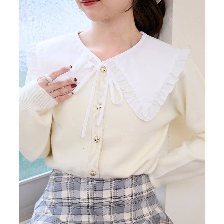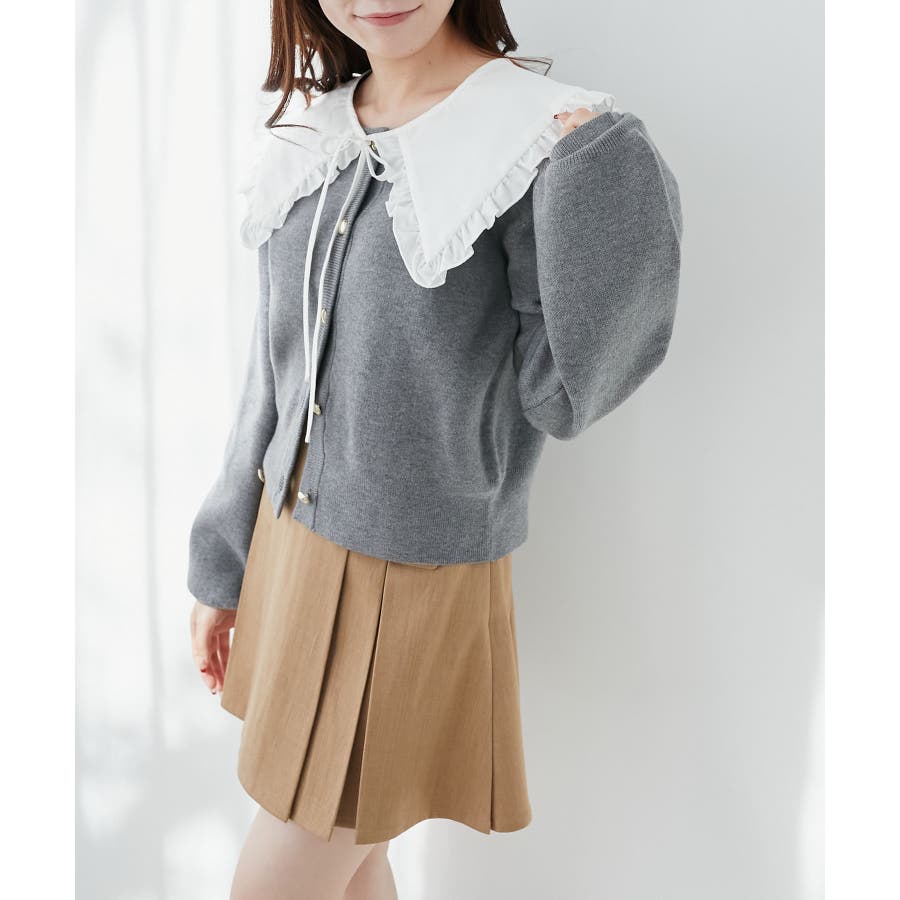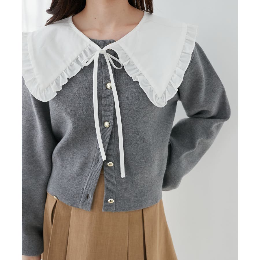 フリルカラーセットニットカーディガン