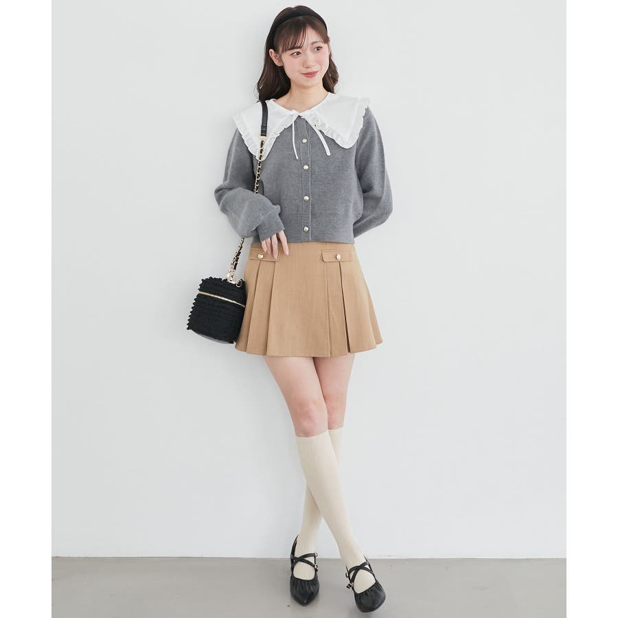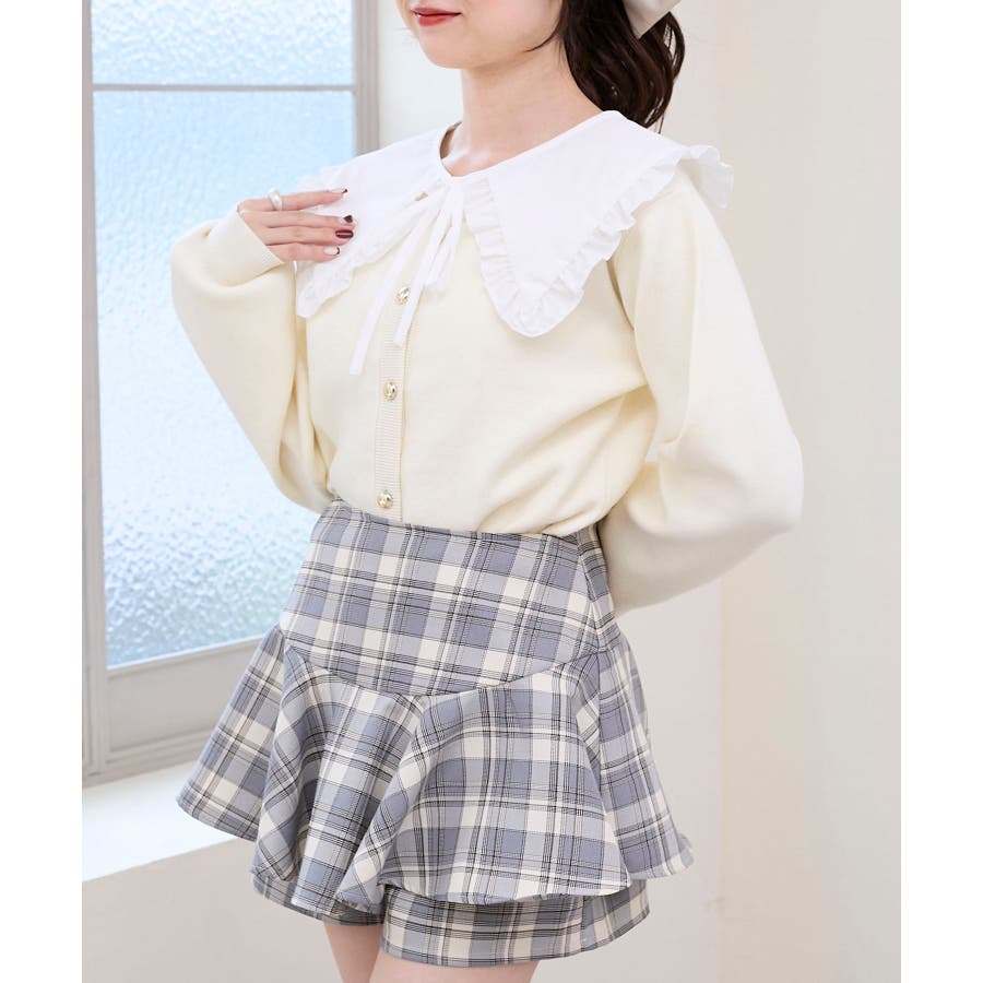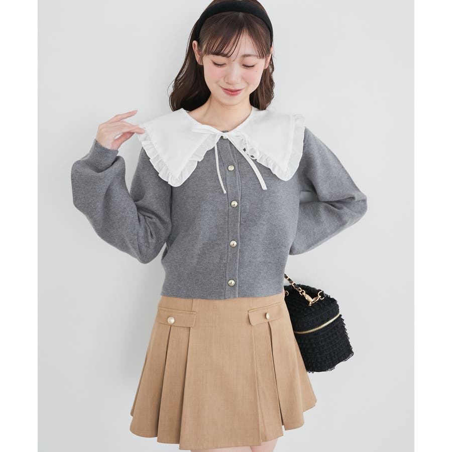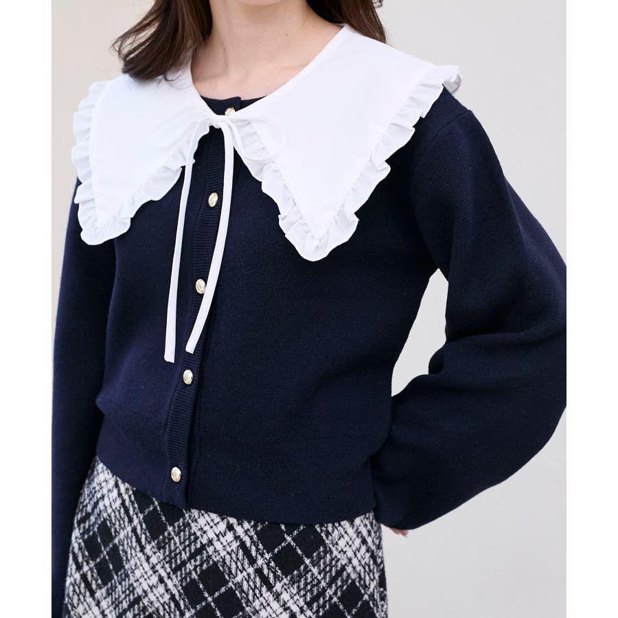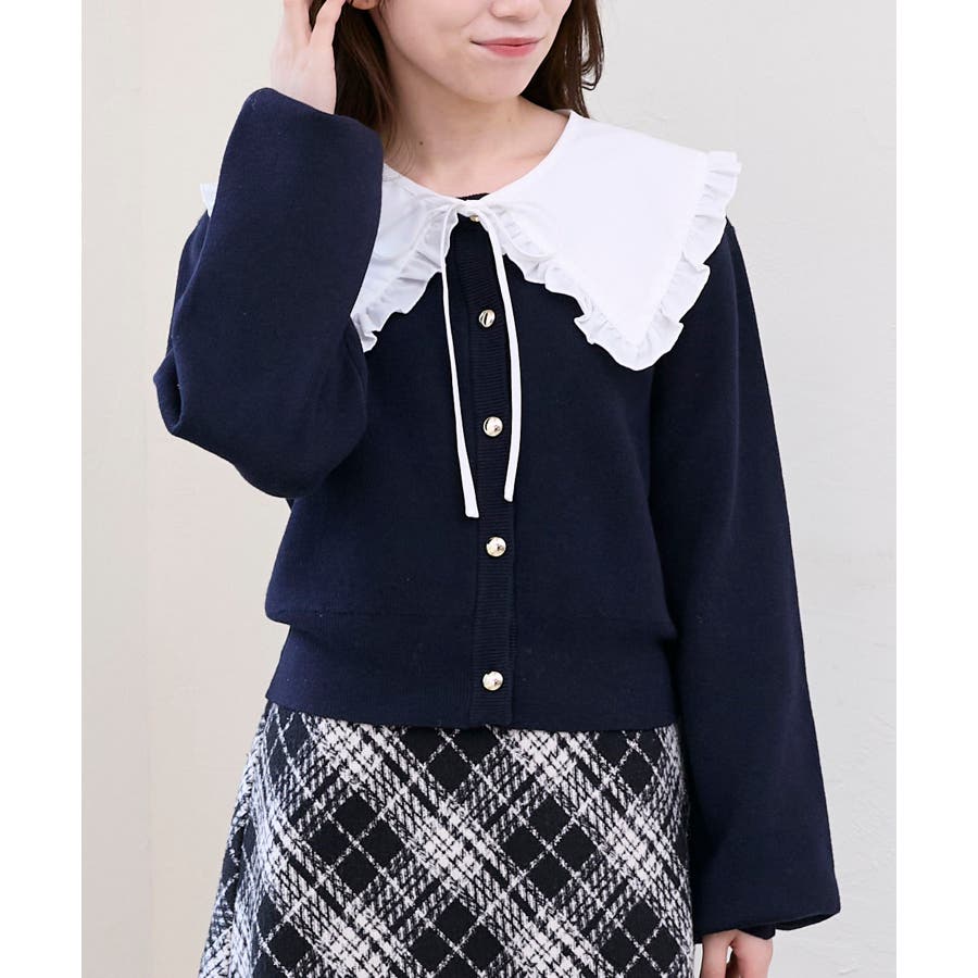 フリルカラーセットニットカーディガン