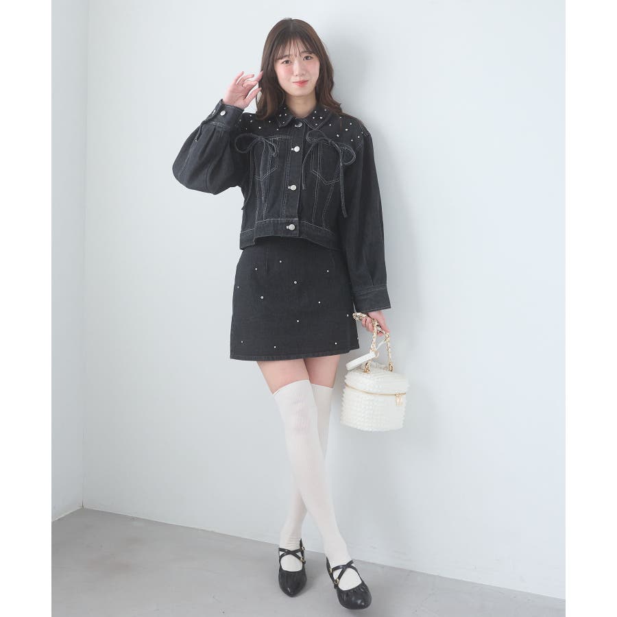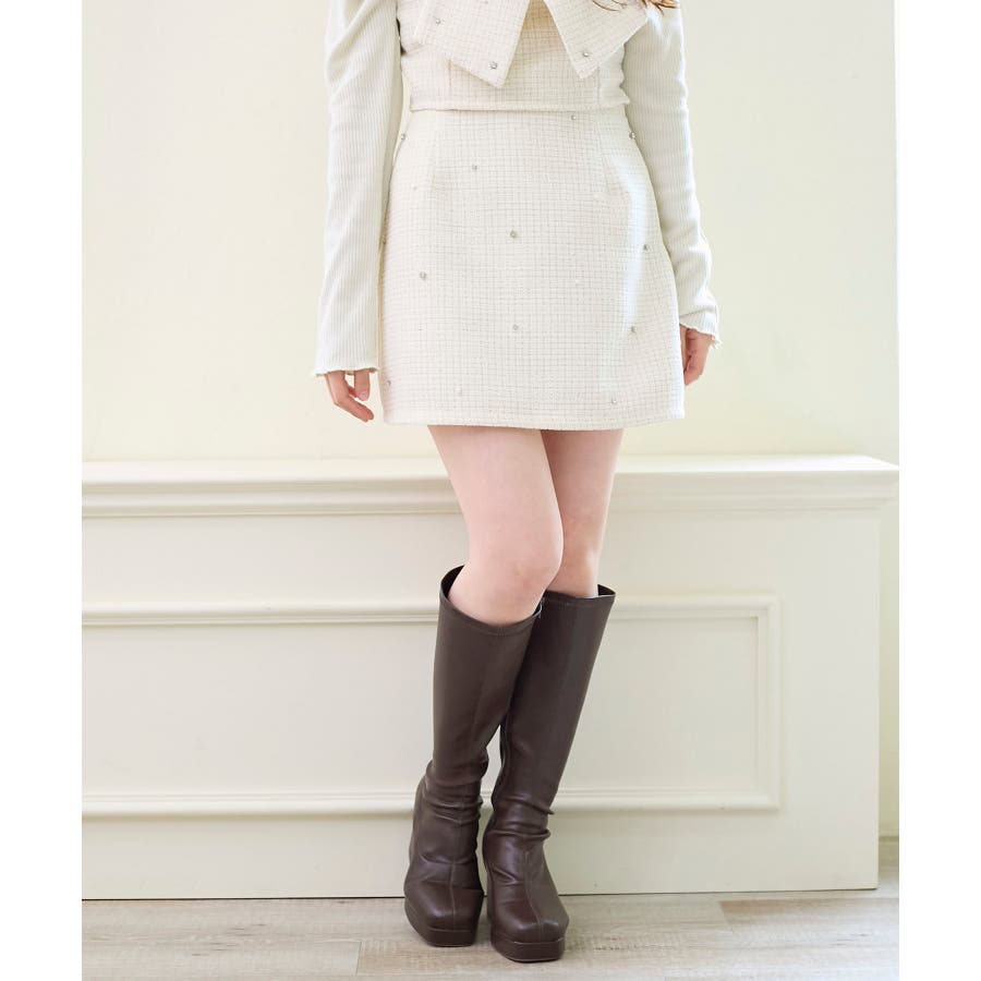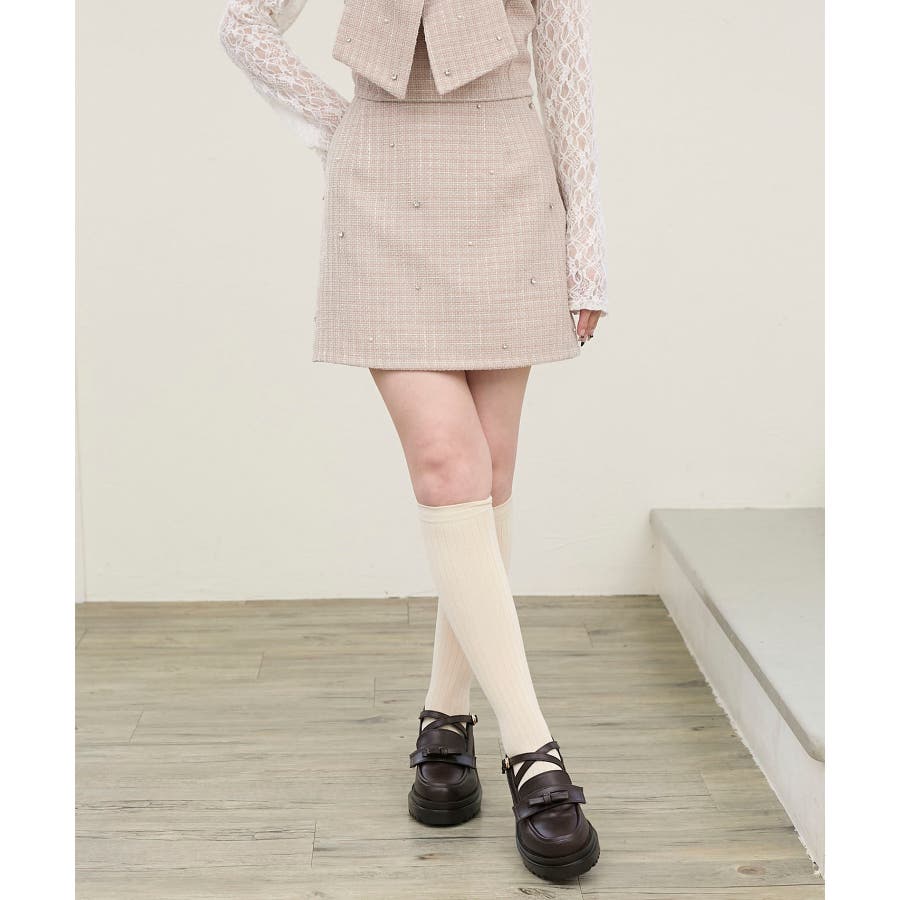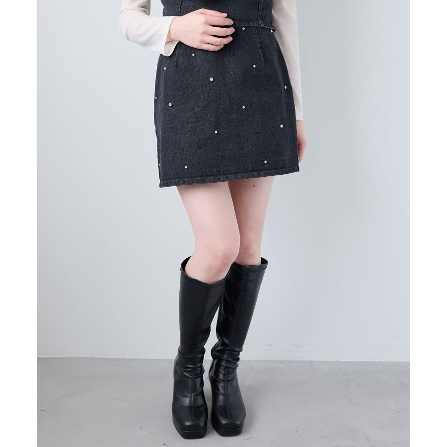ビジュー付き台形ミニスカパン