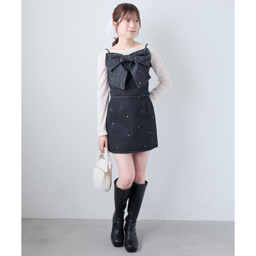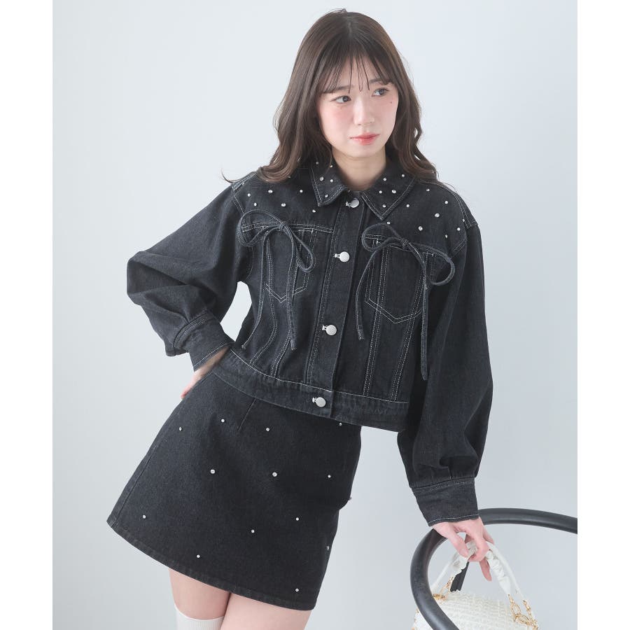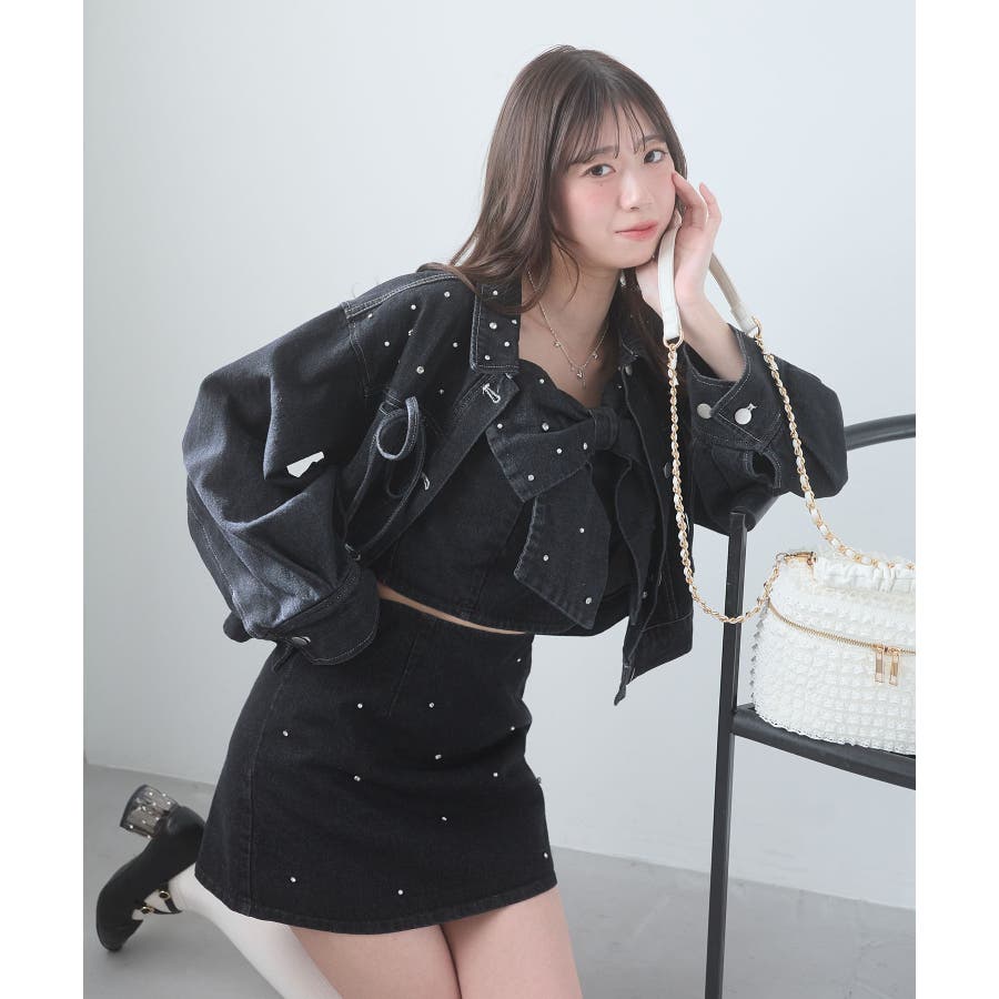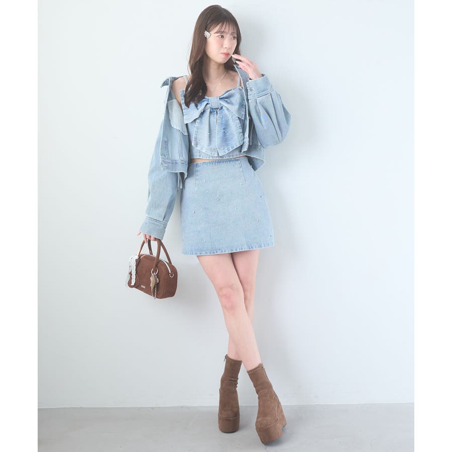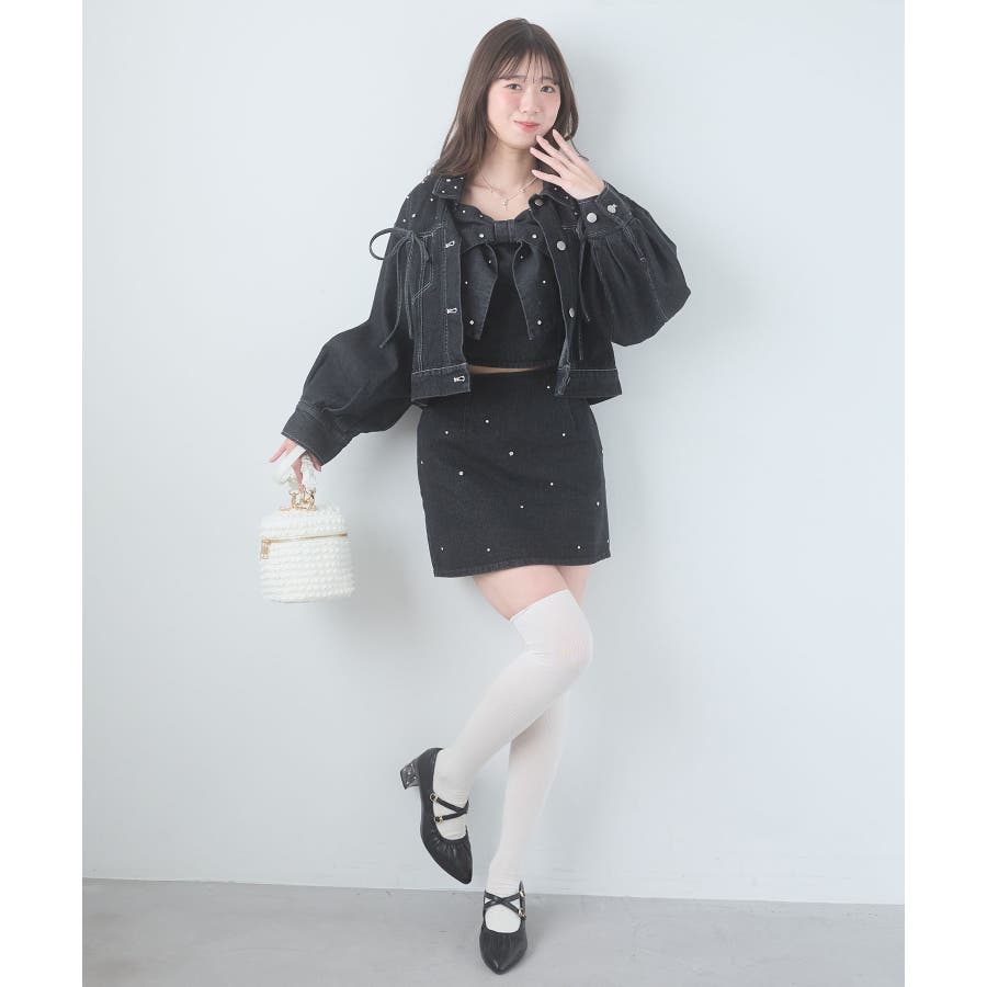 ビジュー付き台形ミニスカパン