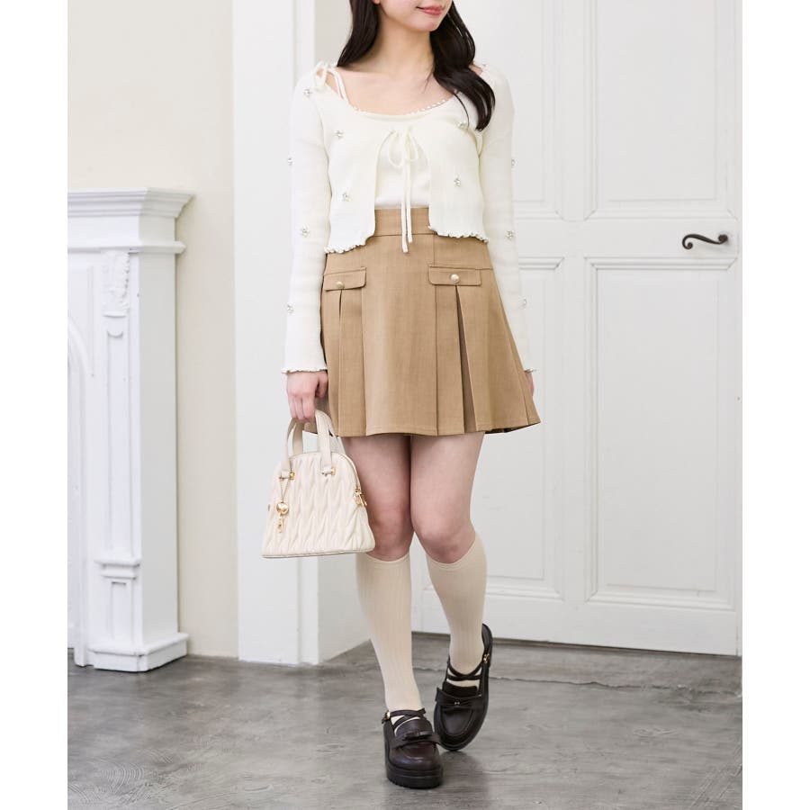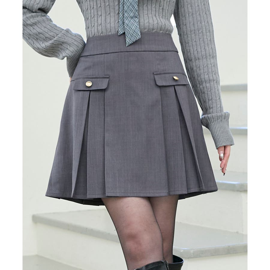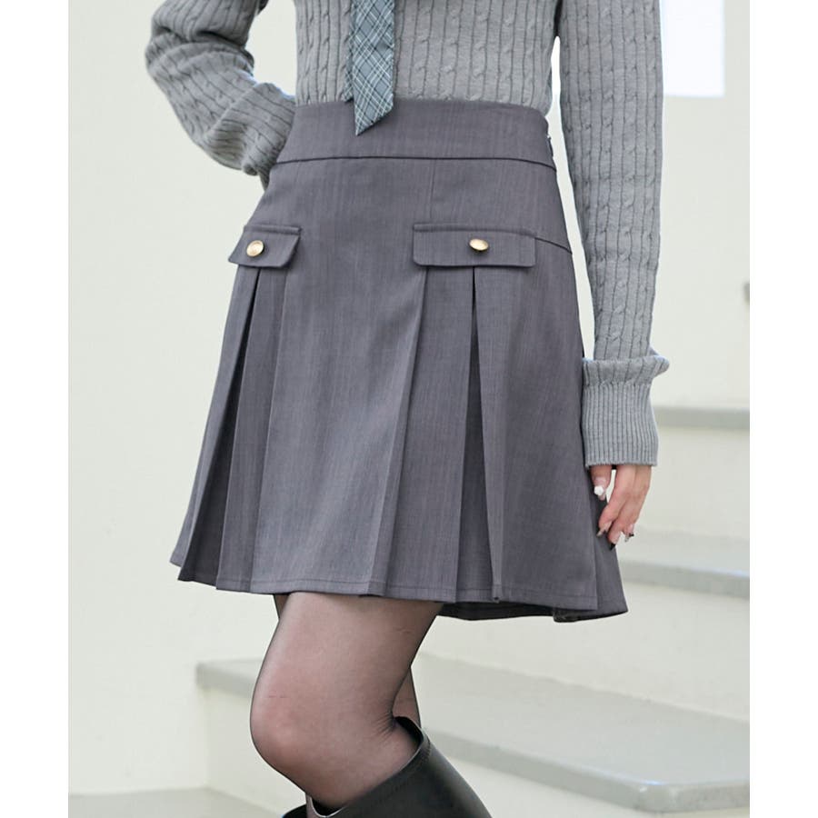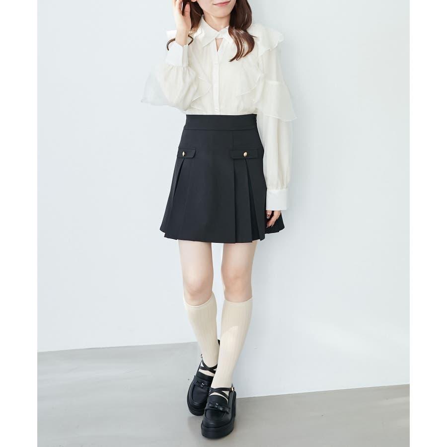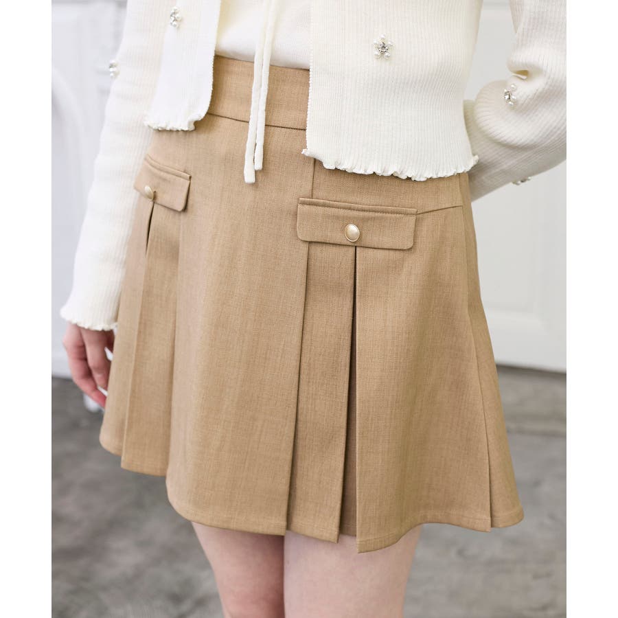 ゴールドボタンプリーツミニスカパン