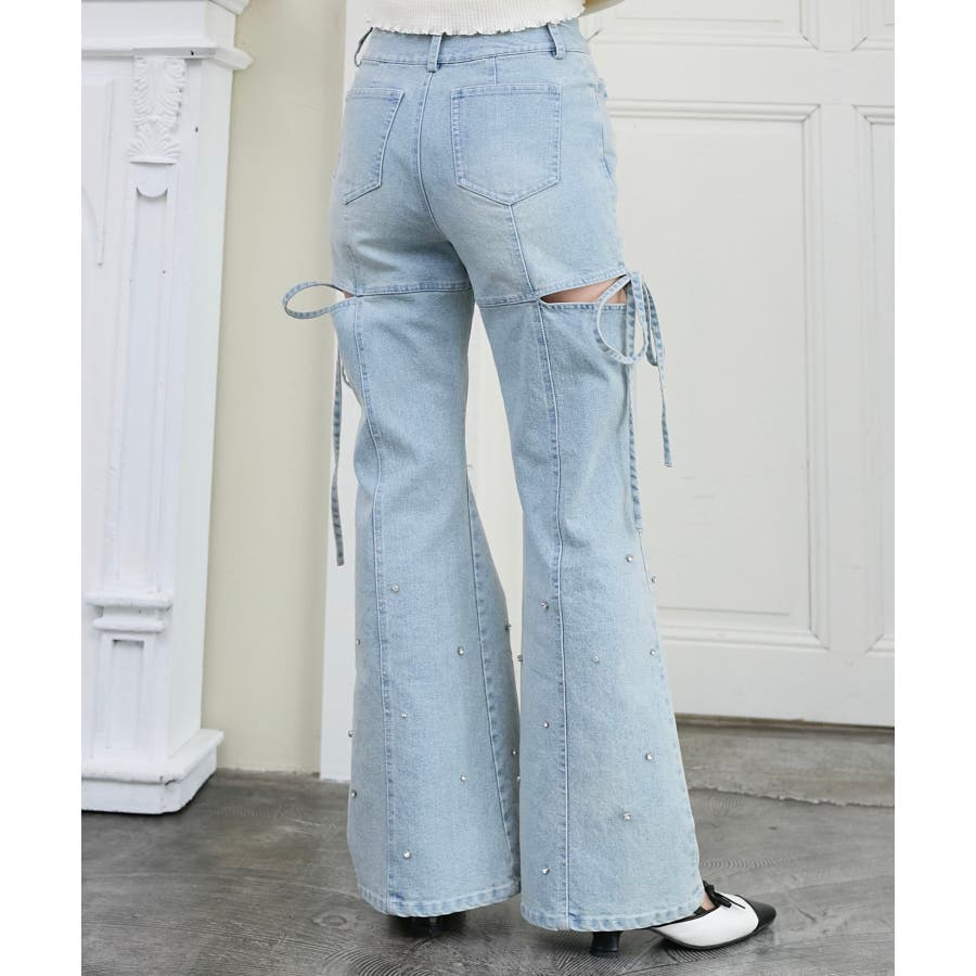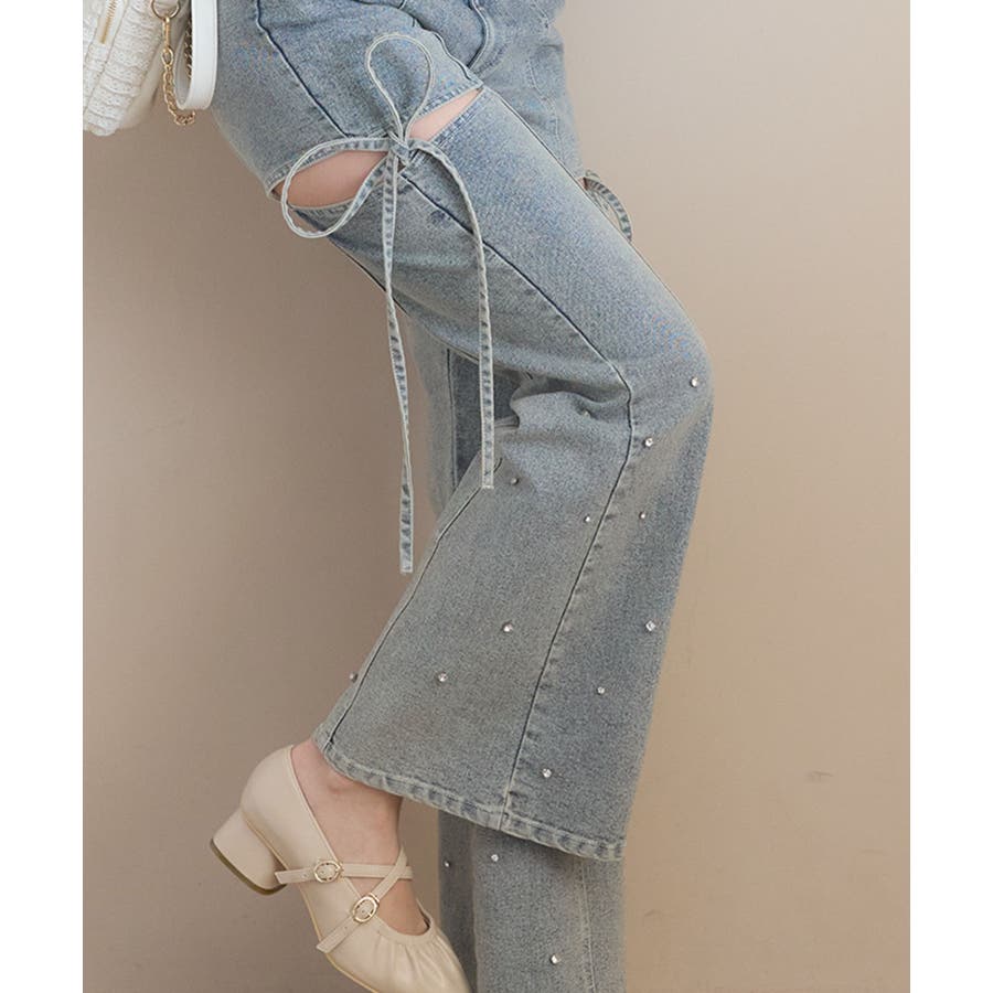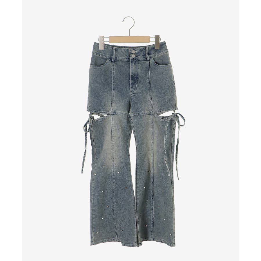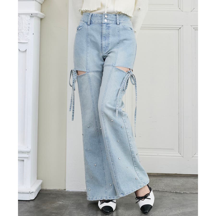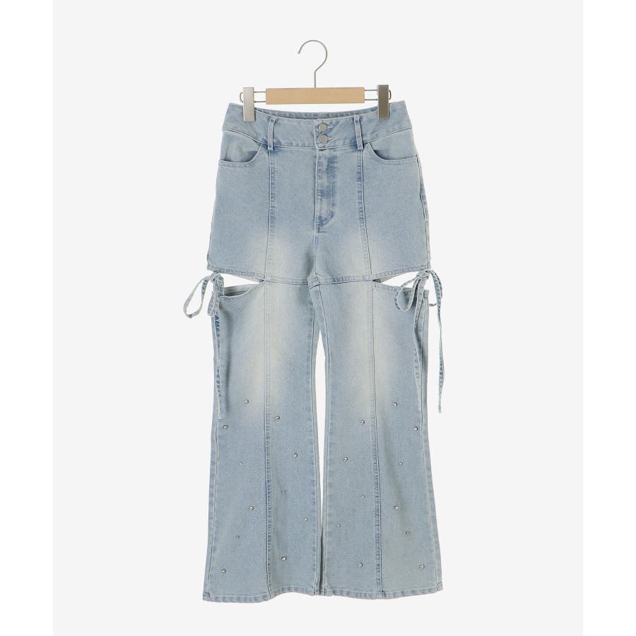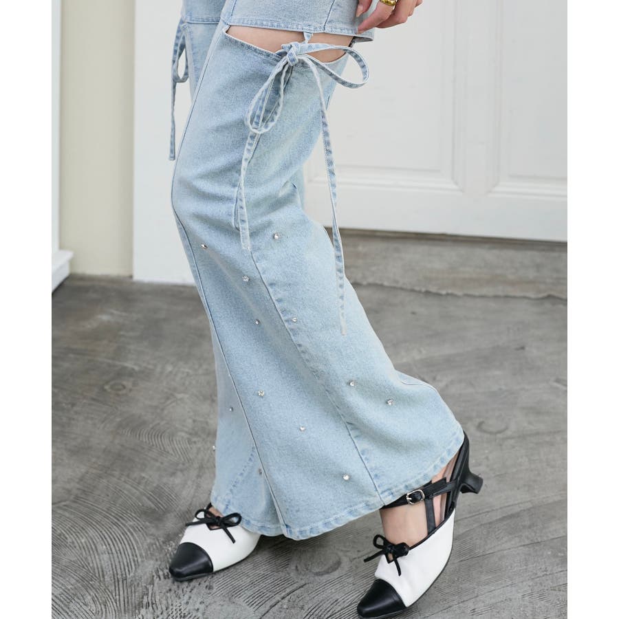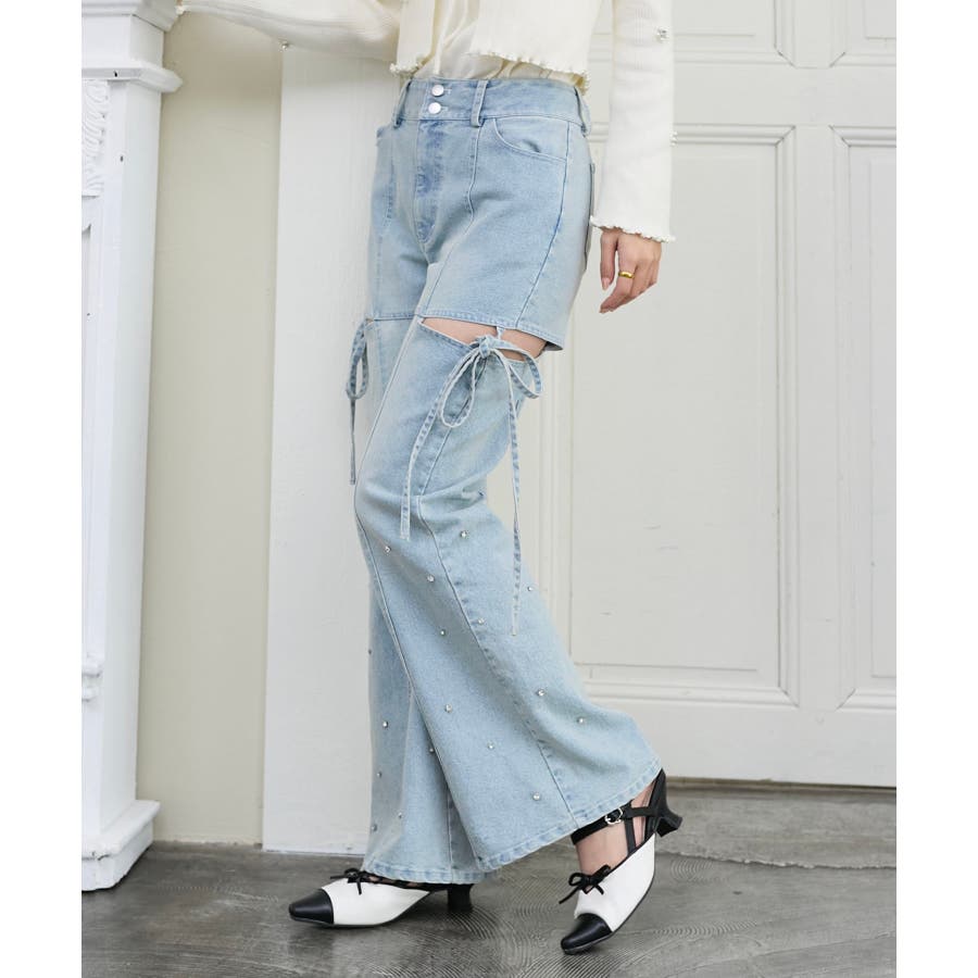 スリットビジューフレアデニムパンツ