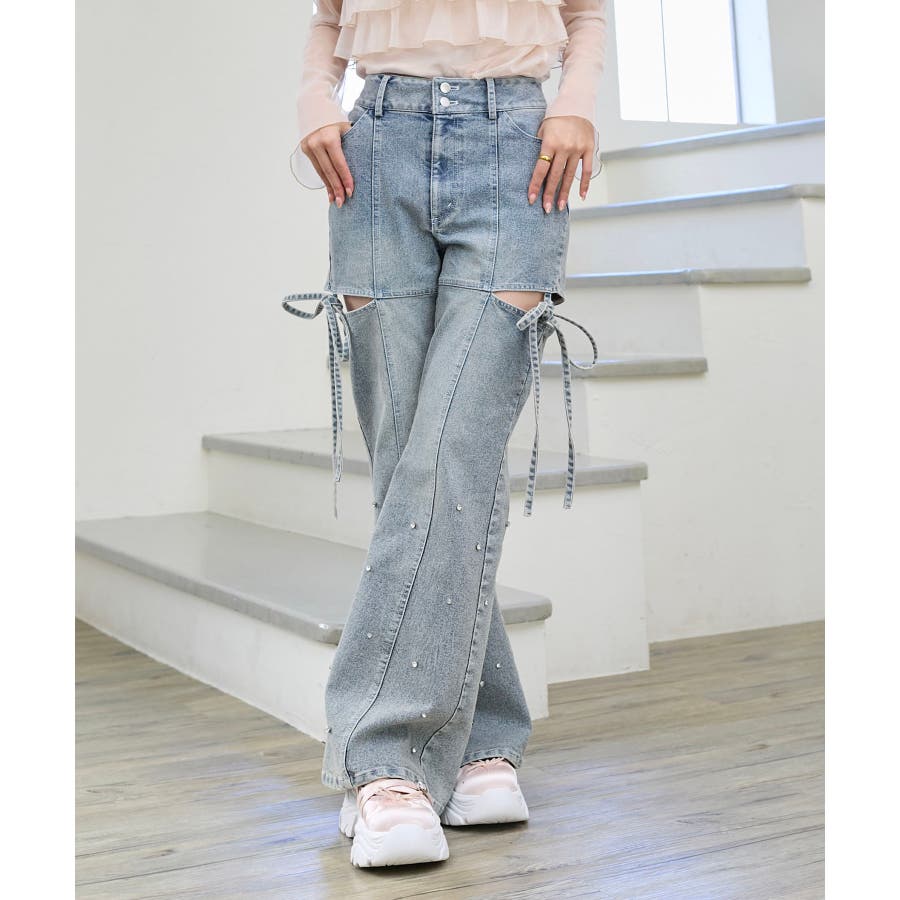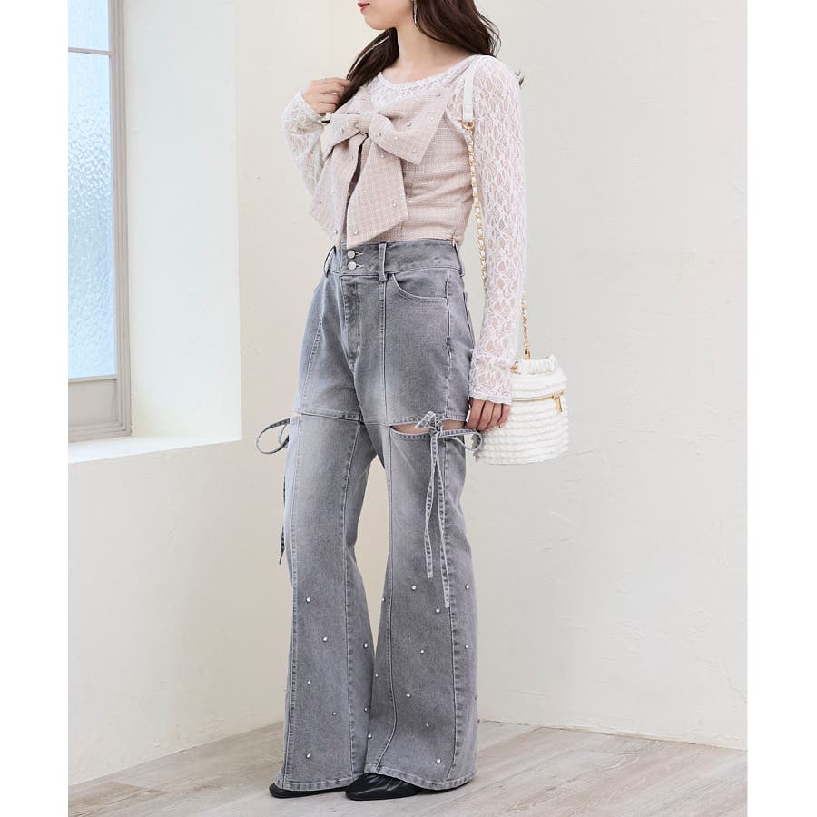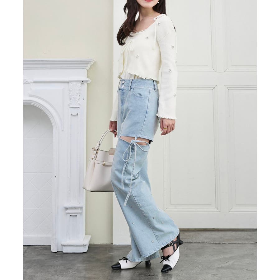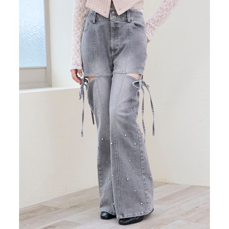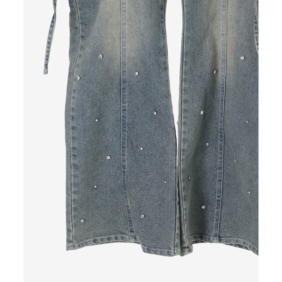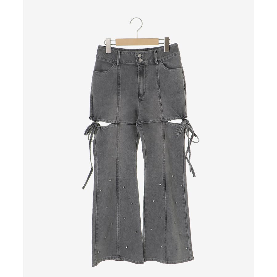 スリットビジューフレアデニムパンツ
